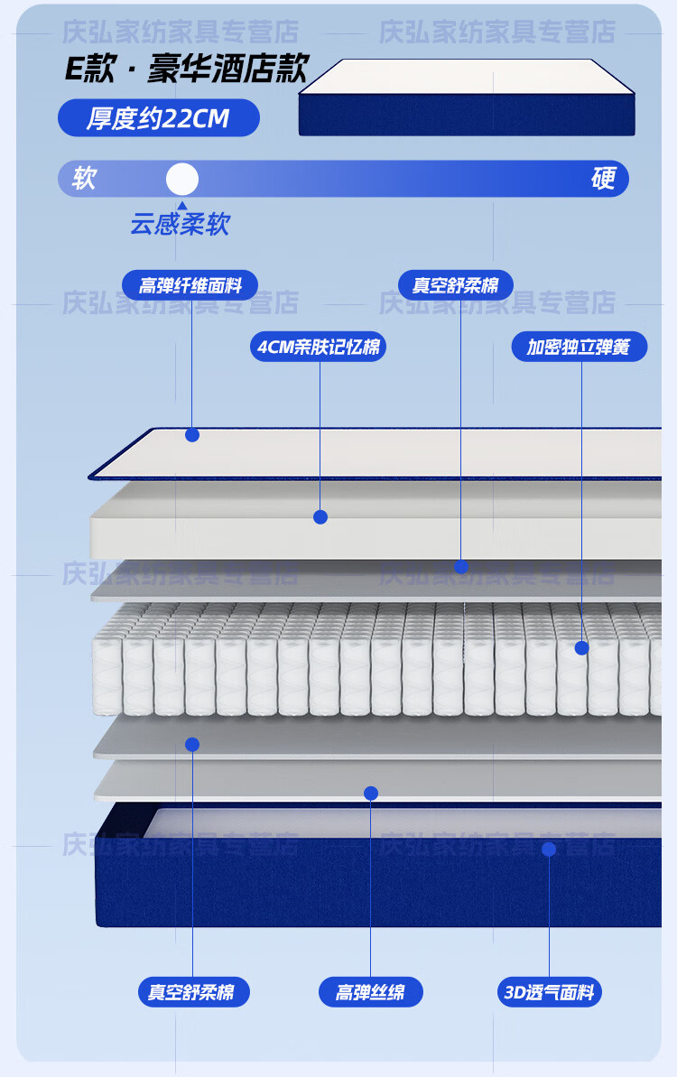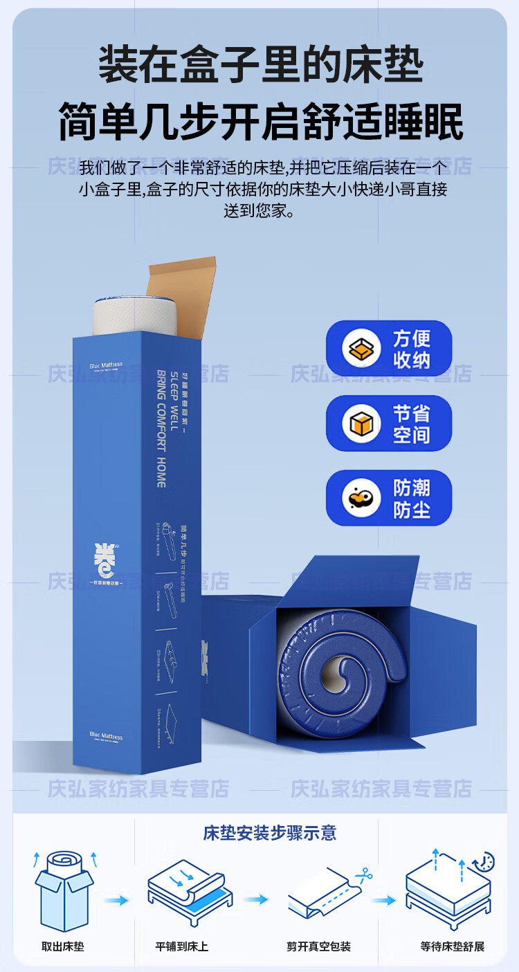 Yanzhao Matelas à rouleau bleu en mousse à mémoire de forme Matelas Simmons Protecteur de taille à ressorts indépendant Matelas épais en latex doux et dur Sensation de sommeil doux-Type A épaisseur environ 20 cm 1350 mm * 2000 mm