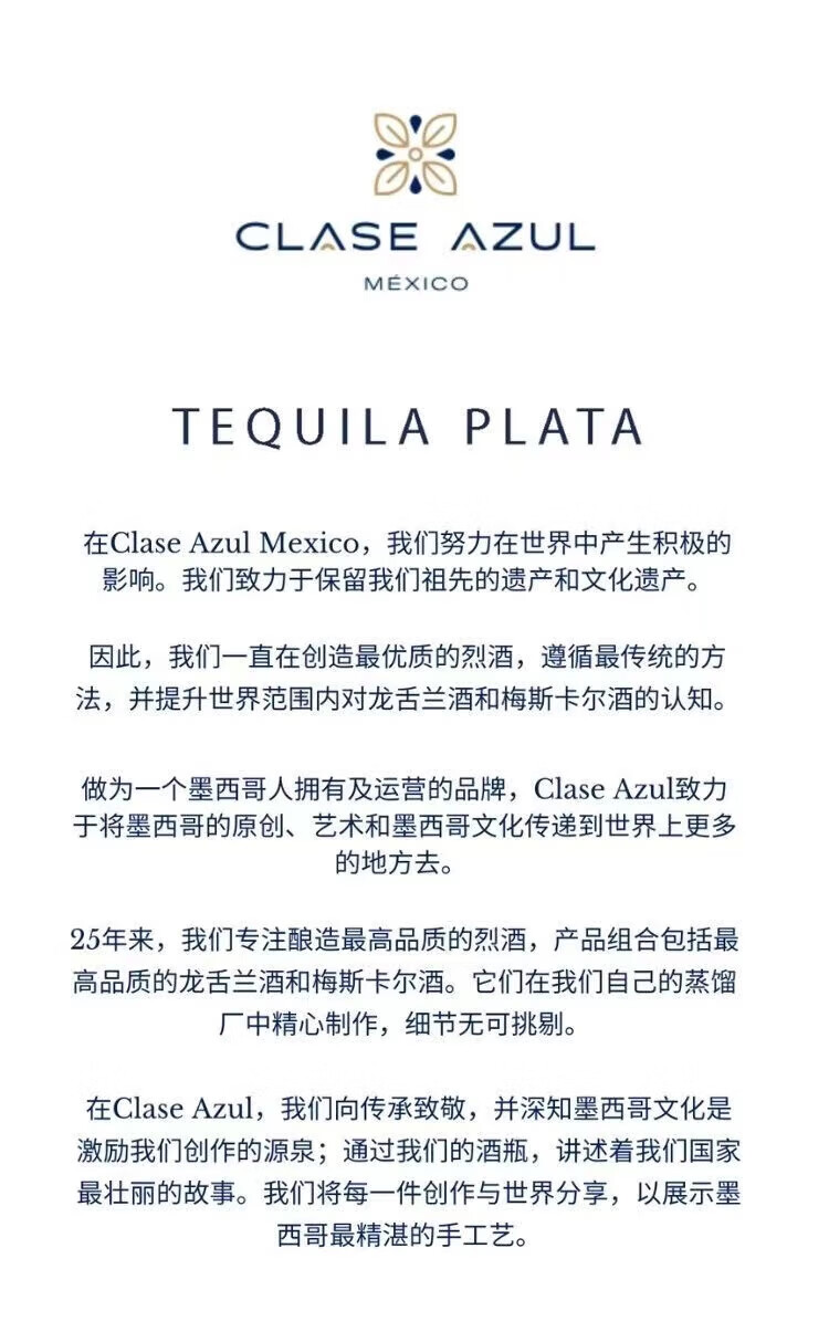 克斯阿苏尔官方行货Clase Azul银金陈年龙舌兰特其拉 墨西哥进口 陈酿Anejo750mL1瓶