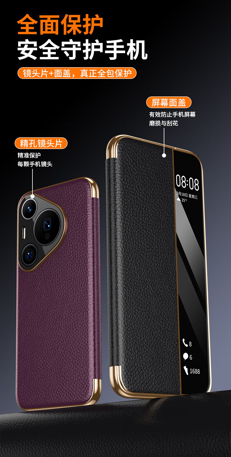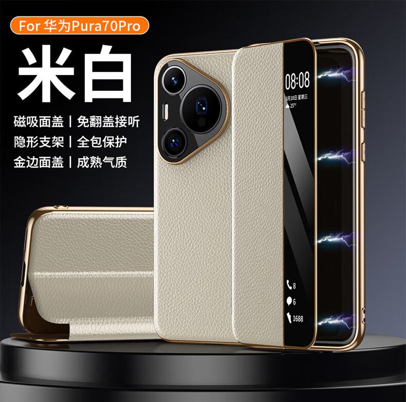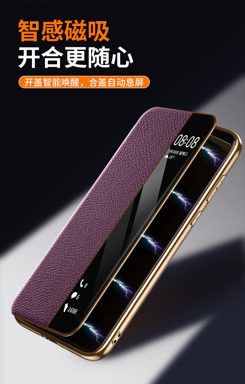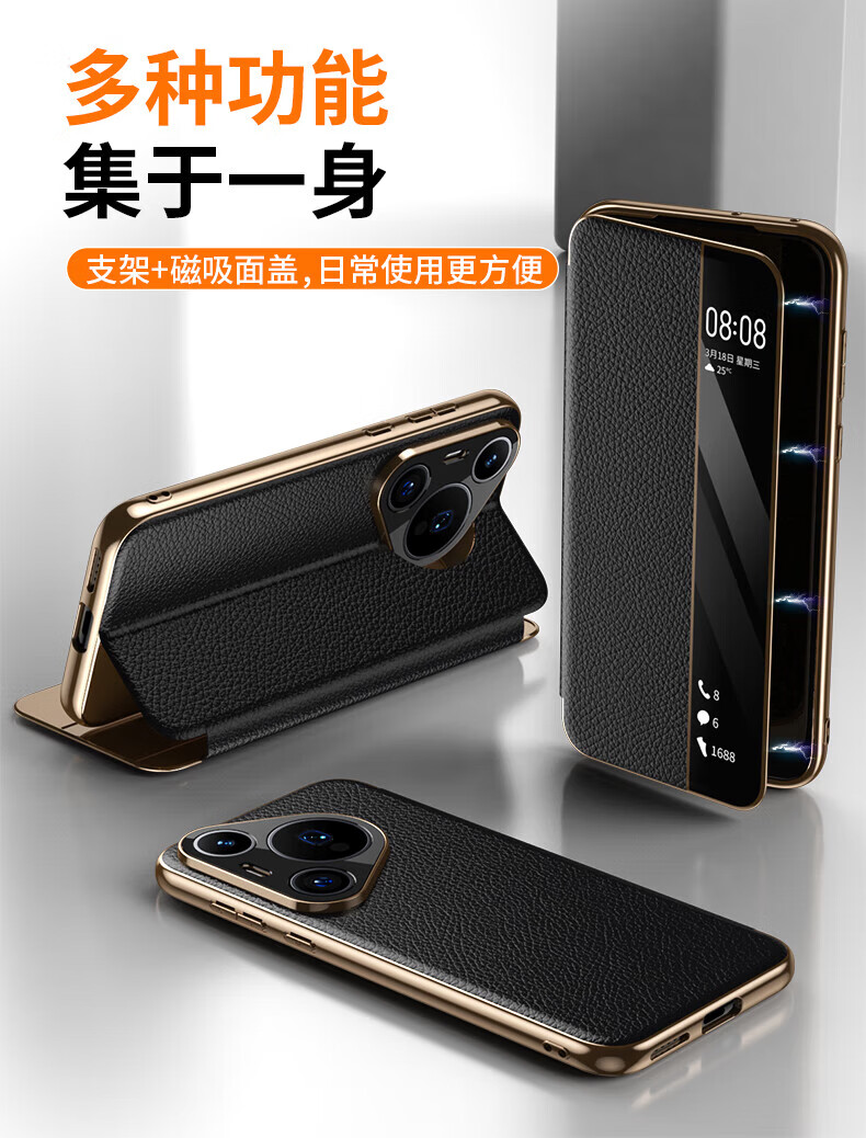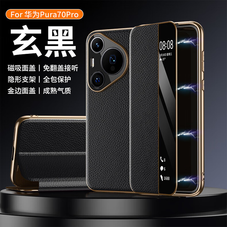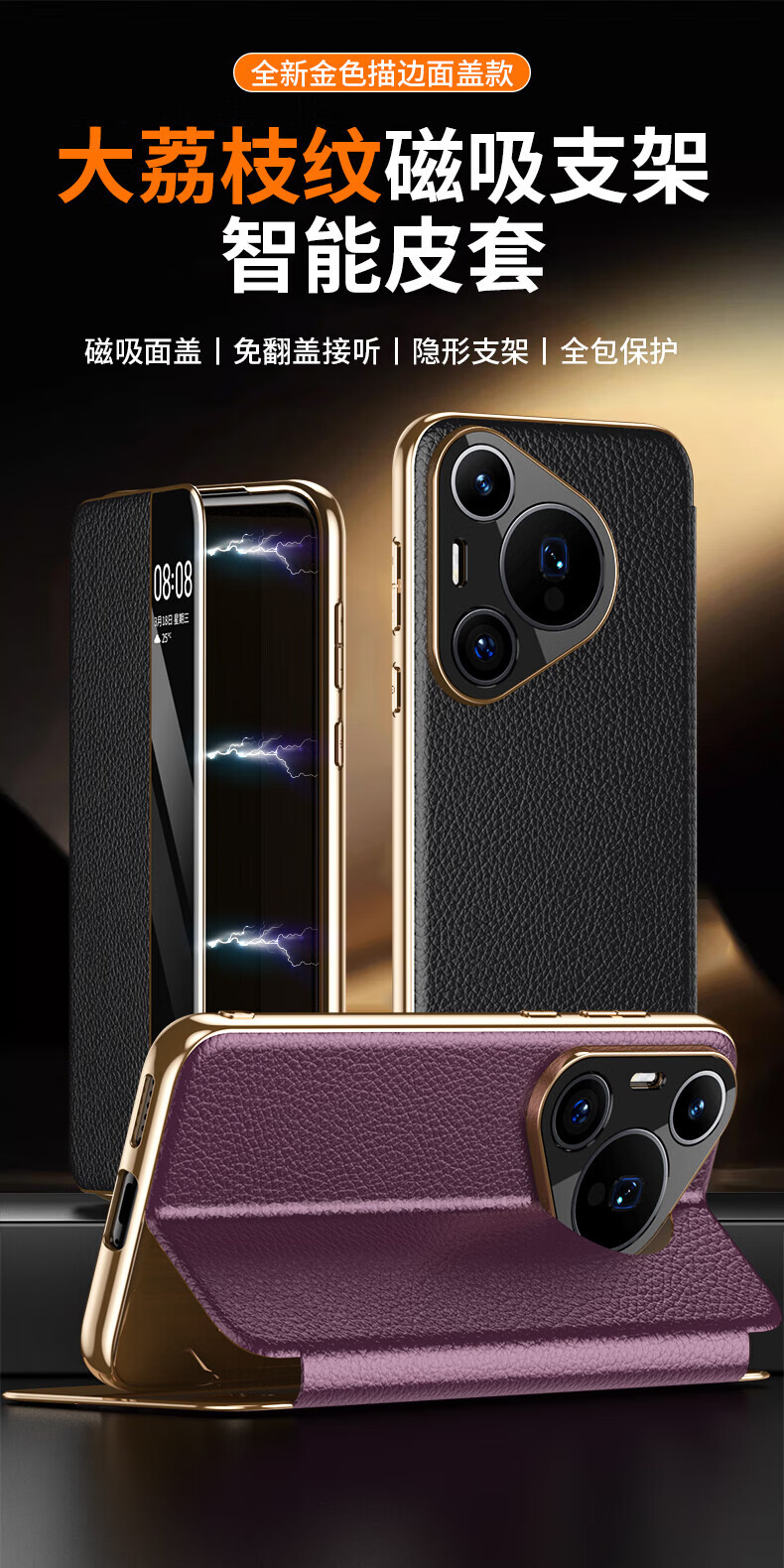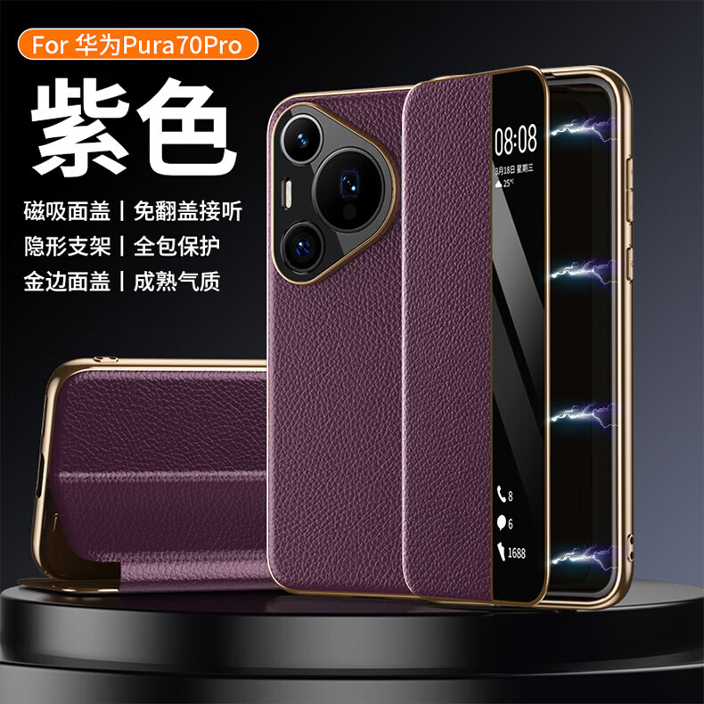 Leko Invisible Stand丨Magnetic Cover Huawei Pura70pro Mobile Phone Case Golden Stroke Lychee Pattern Flip-Free Answer 70Ultra All-inclusive Anti-fall High-end Business Luolan Purple Huawei Pura70