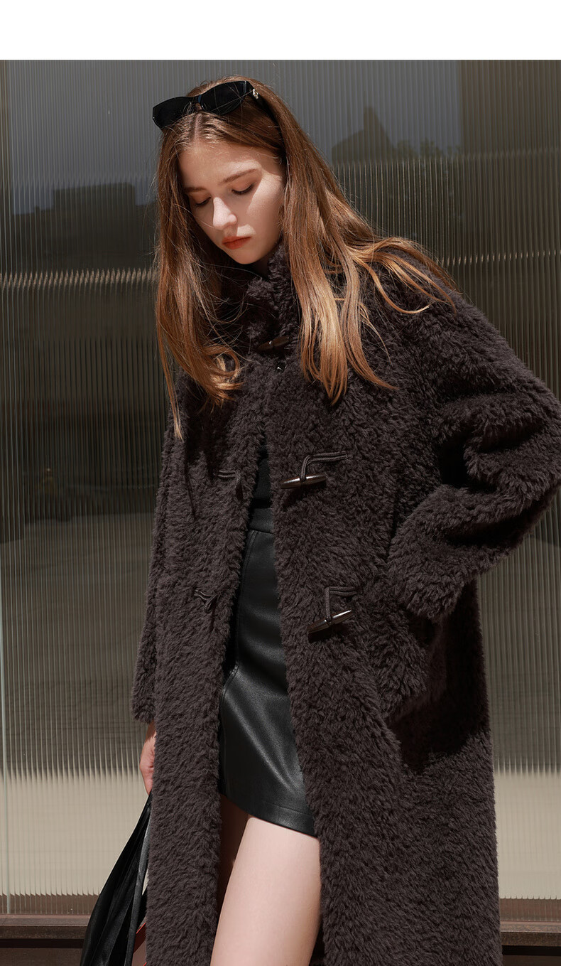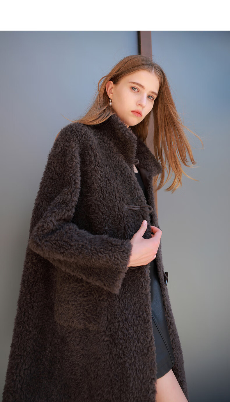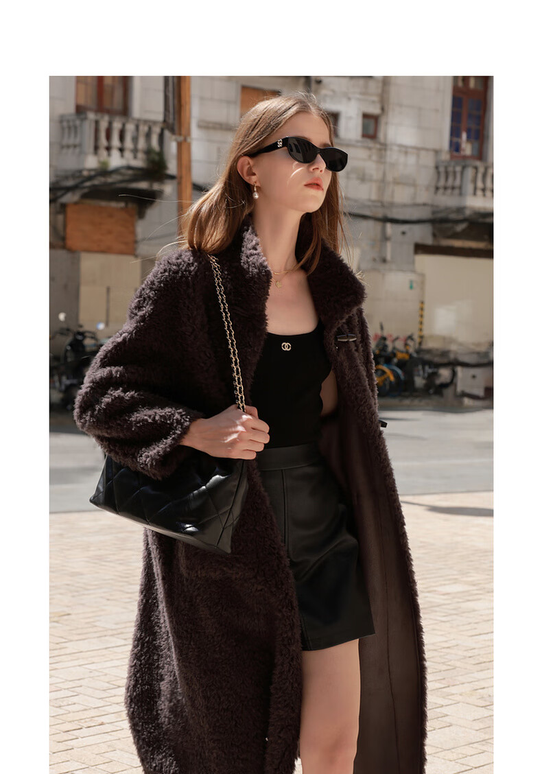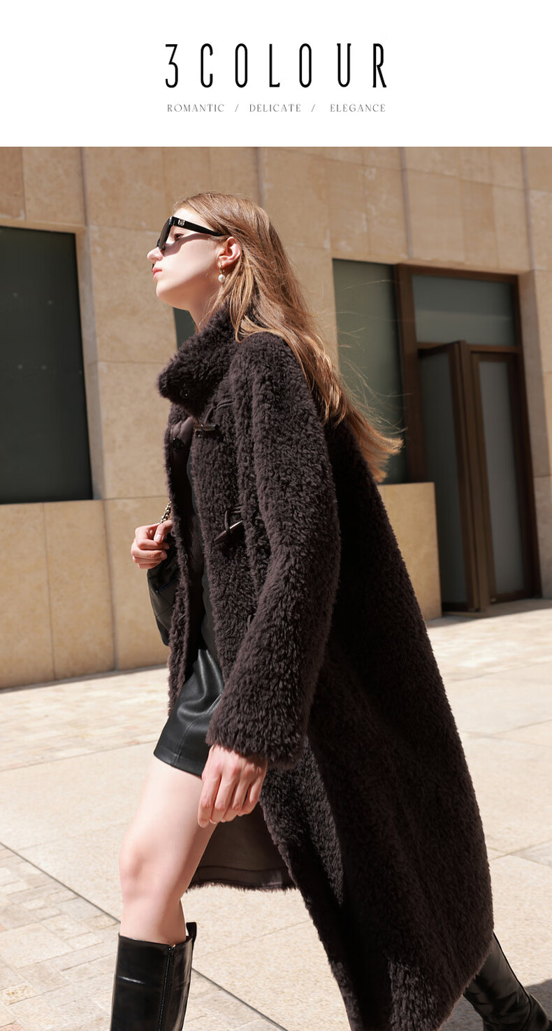 Three-color winter sheep fur grain velvet long plush jacket Teddy coat, dark gray M 160/84A