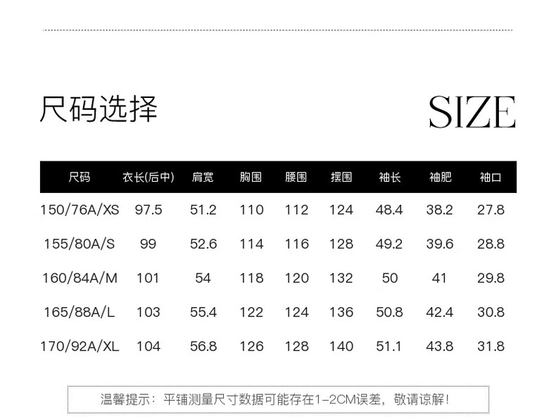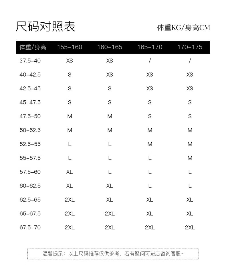 China (cm) 160-165/84-86 165-170 / 88-90 167-172 / 92-96 168-173 / 98-102 170-176 / 106-110