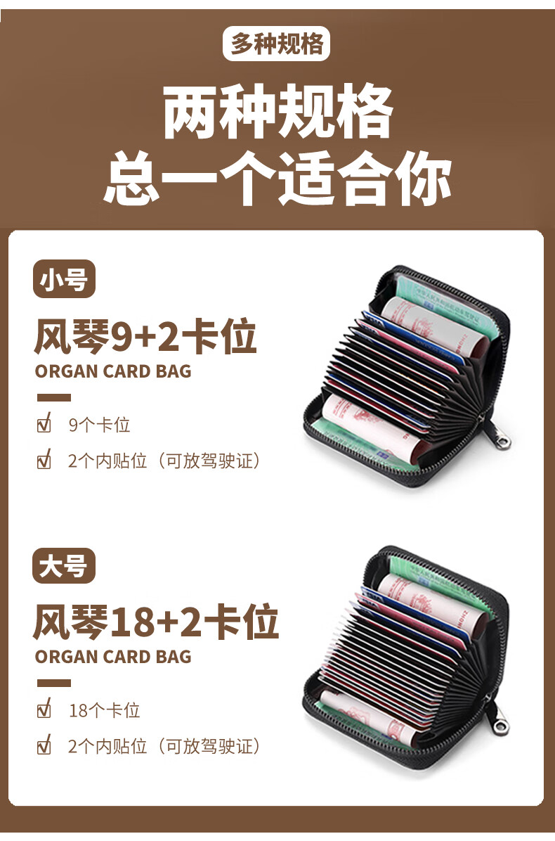 阿猫顿卡包男士防消磁证件包钱包防盗刷银行卡零钱收纳包身份证卡位 18卡位+2证件位【灰格子】