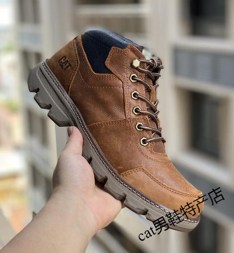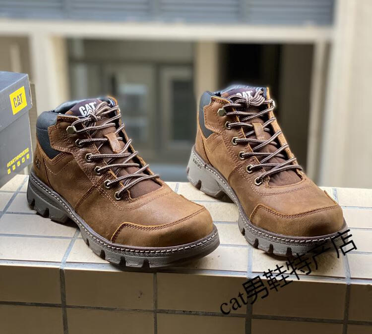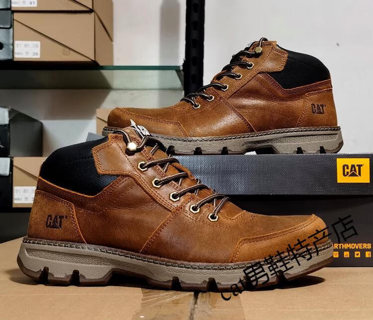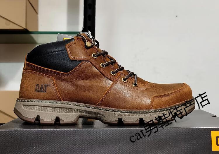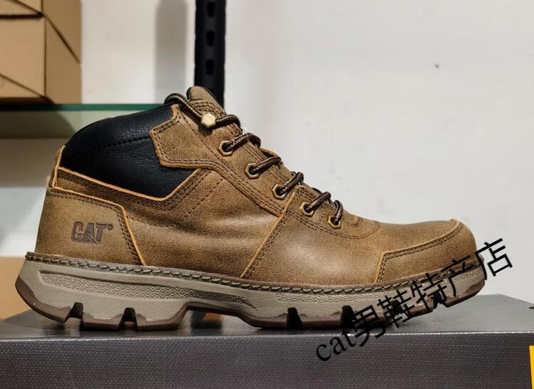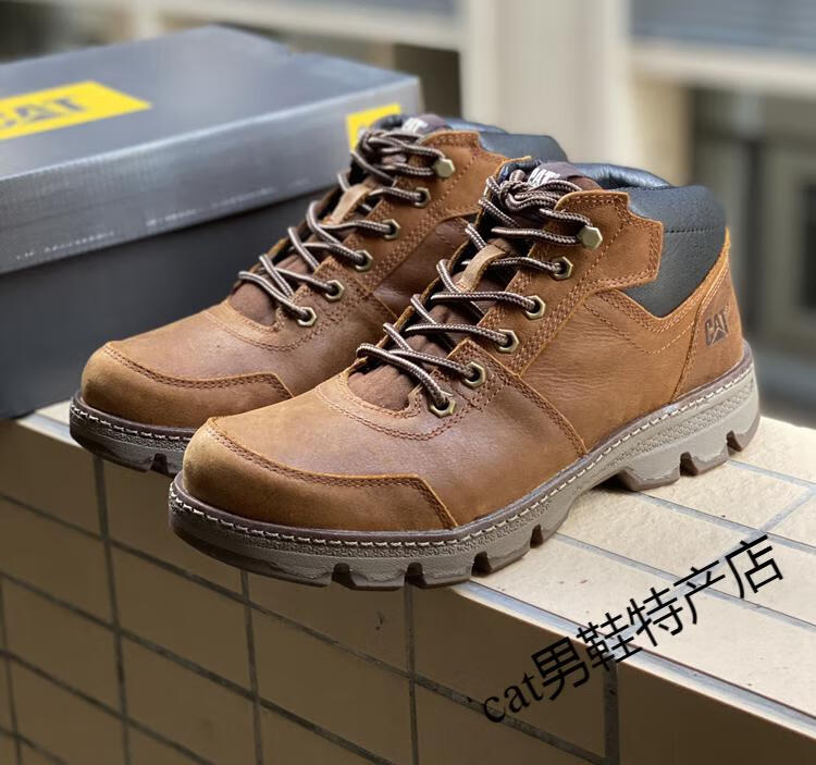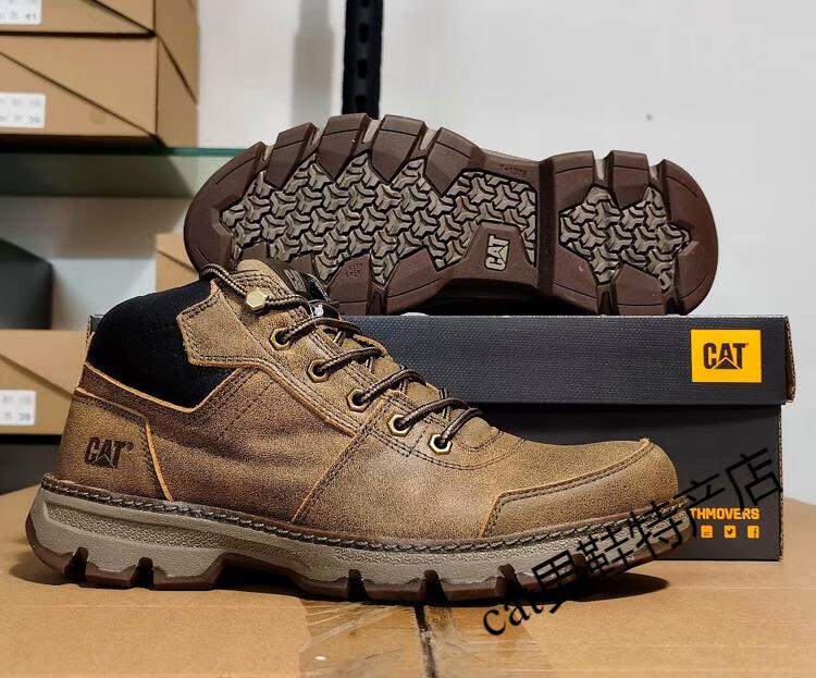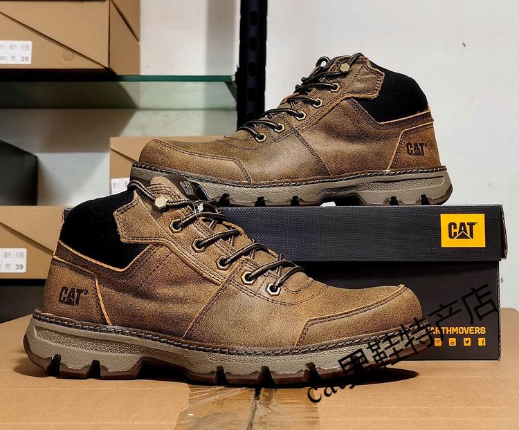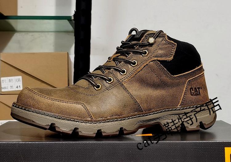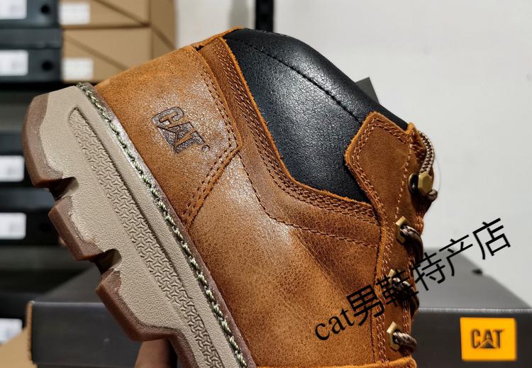 卡特cat男鞋高帮工装鞋厚软底轻便牛皮防水马丁靴秋冬户外休闲鞋短靴 卡其色 皮鞋码 41 比运动鞋偏大一码