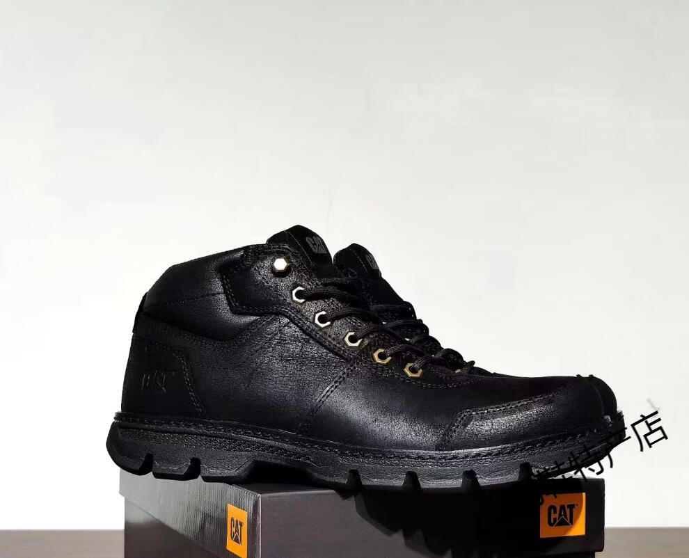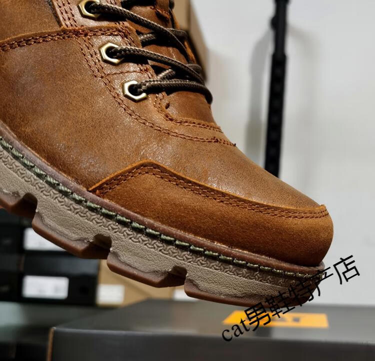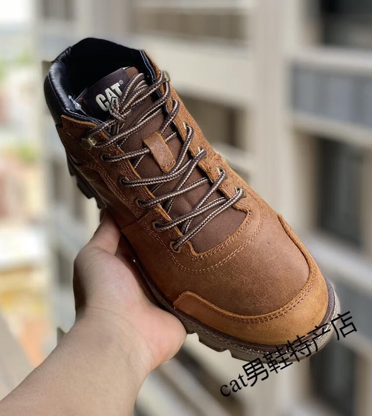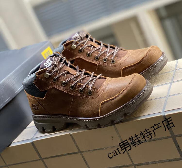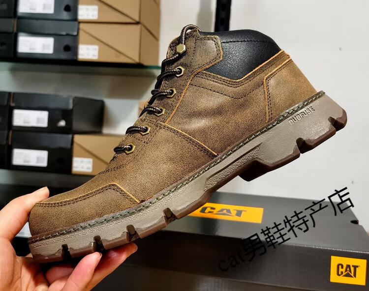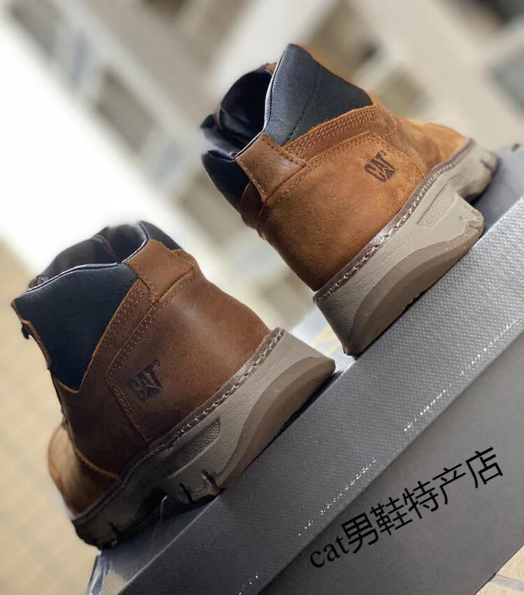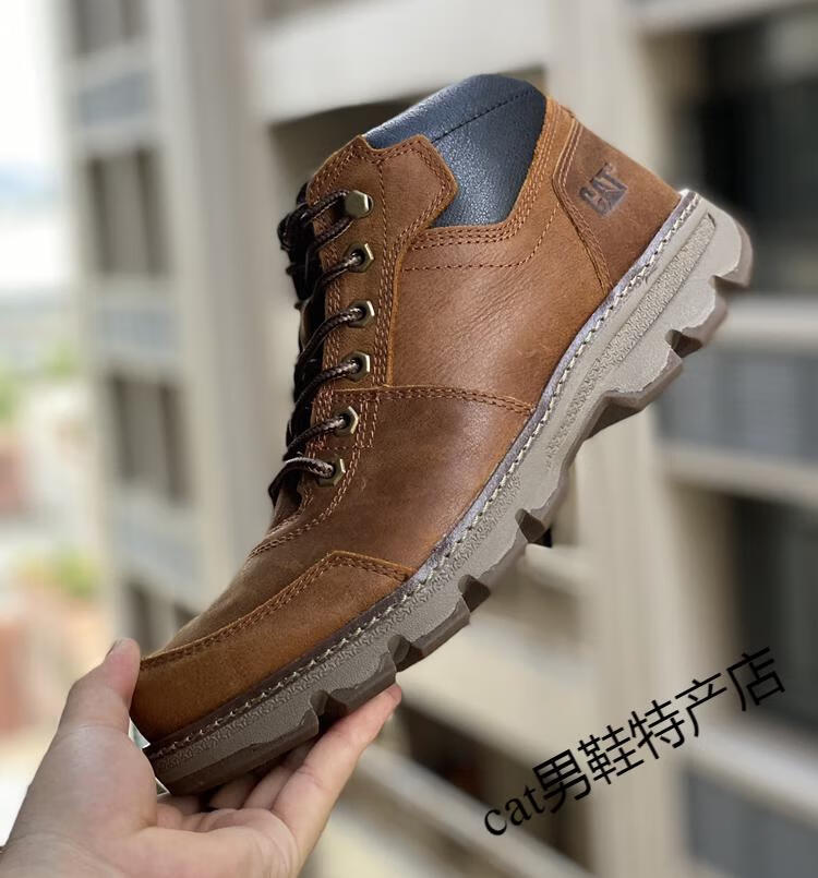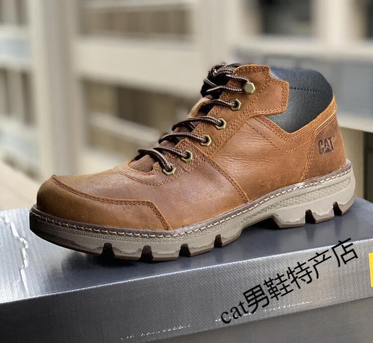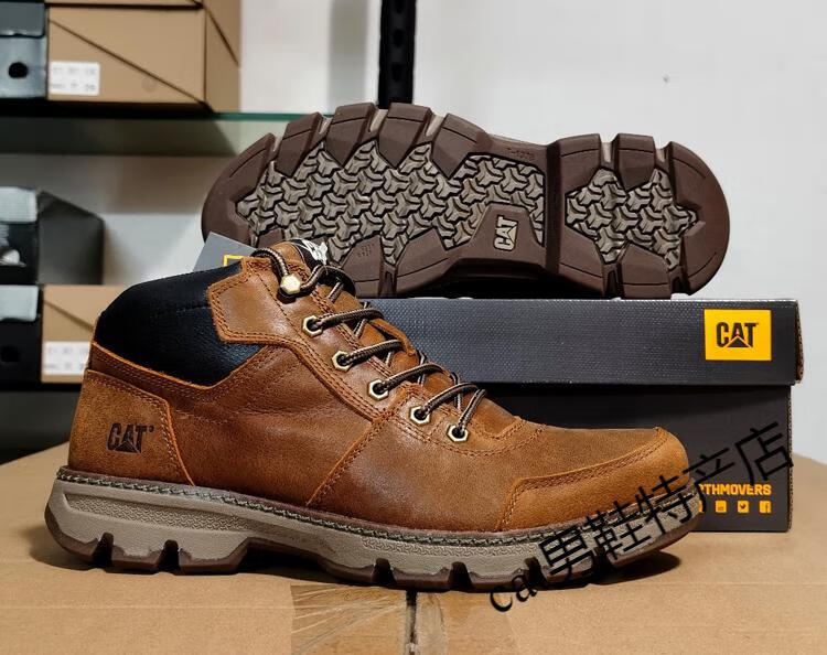 卡特cat男鞋高帮工装鞋厚软底轻便牛皮防水马丁靴秋冬户外休闲鞋短靴 卡其色 皮鞋码 41 比运动鞋偏大一码