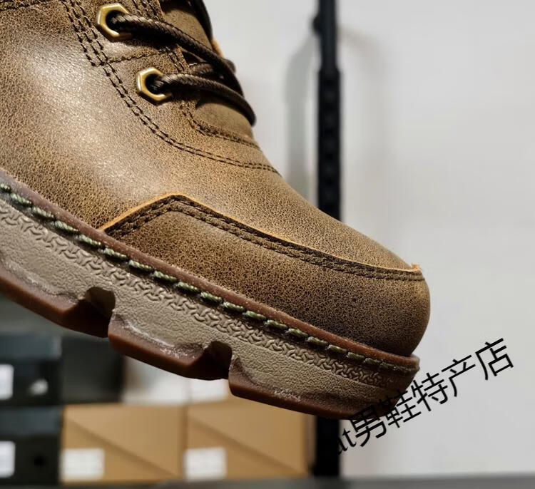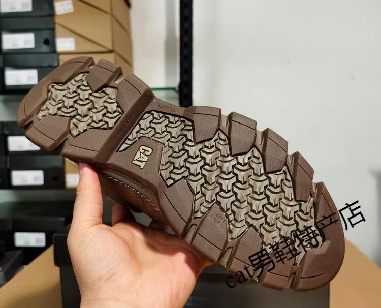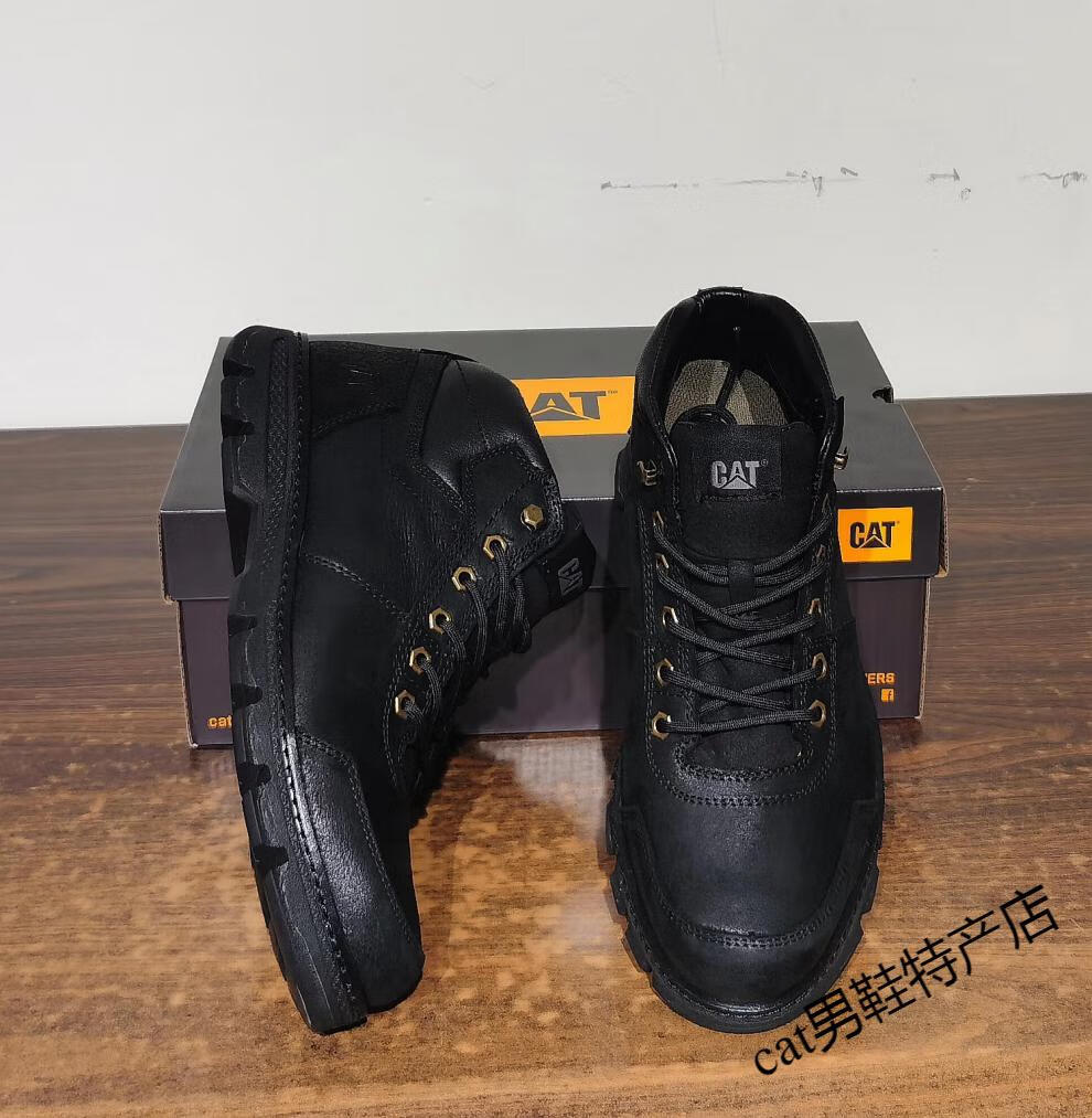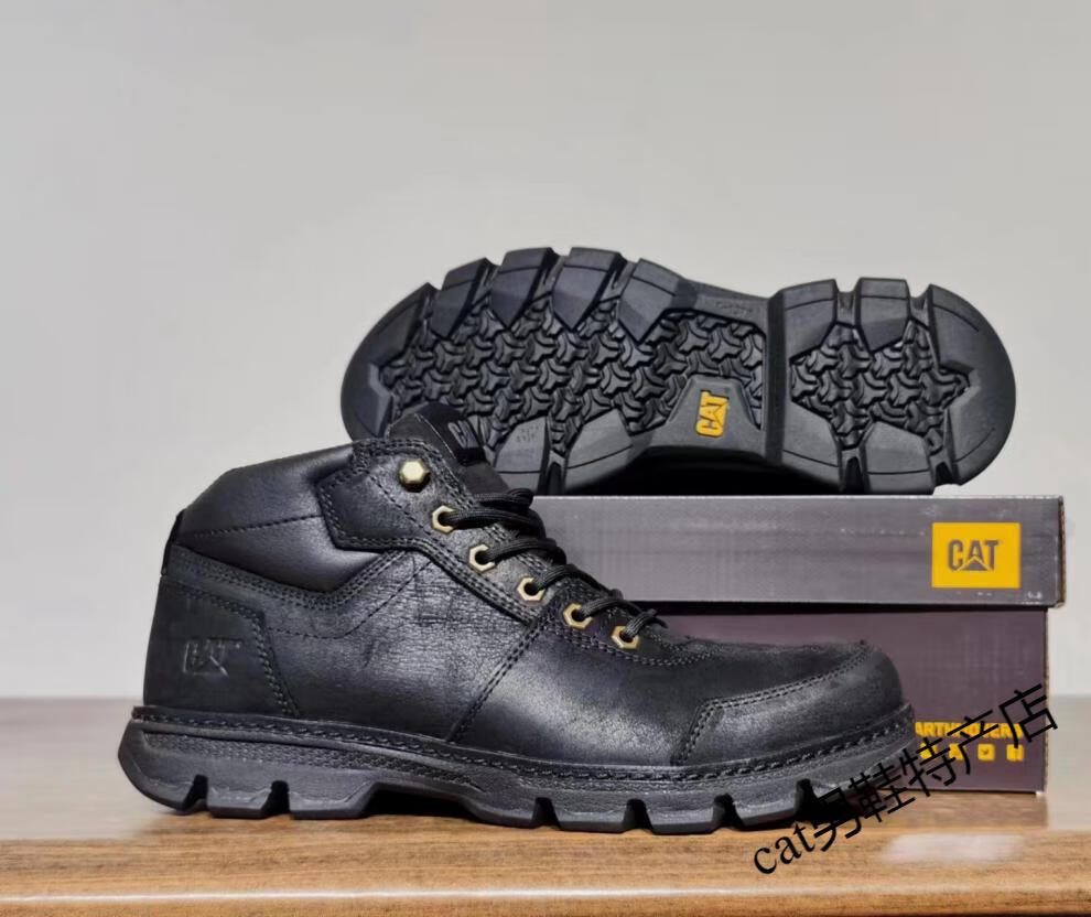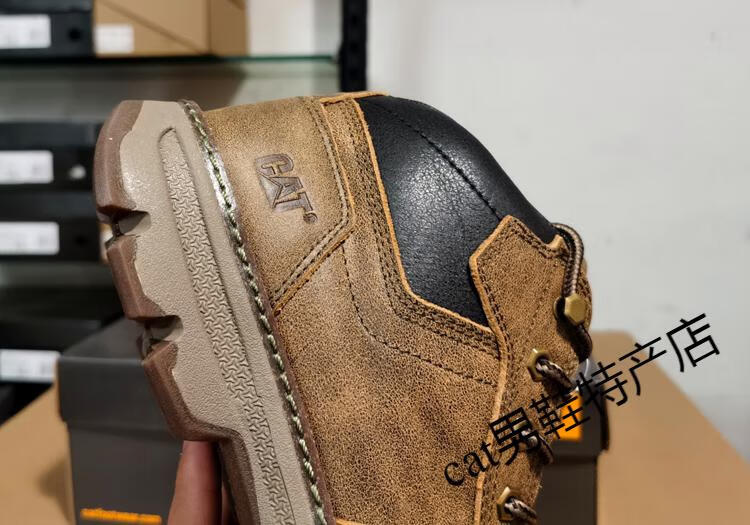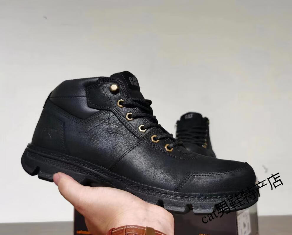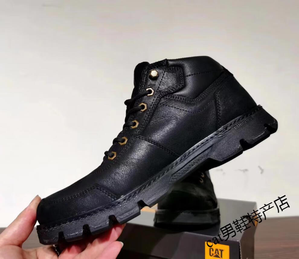 卡特cat男鞋高帮工装鞋厚软底轻便牛皮防水马丁靴秋冬户外休闲鞋短靴 卡其色 皮鞋码 41 比运动鞋偏大一码
