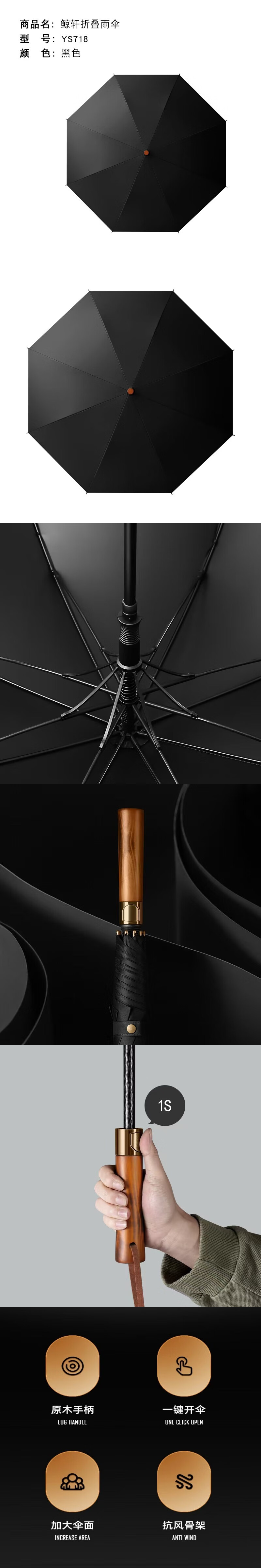 Jingxuan YS718 Regenschirm mit geradem Griff (Preiseinheit) schwarz 1