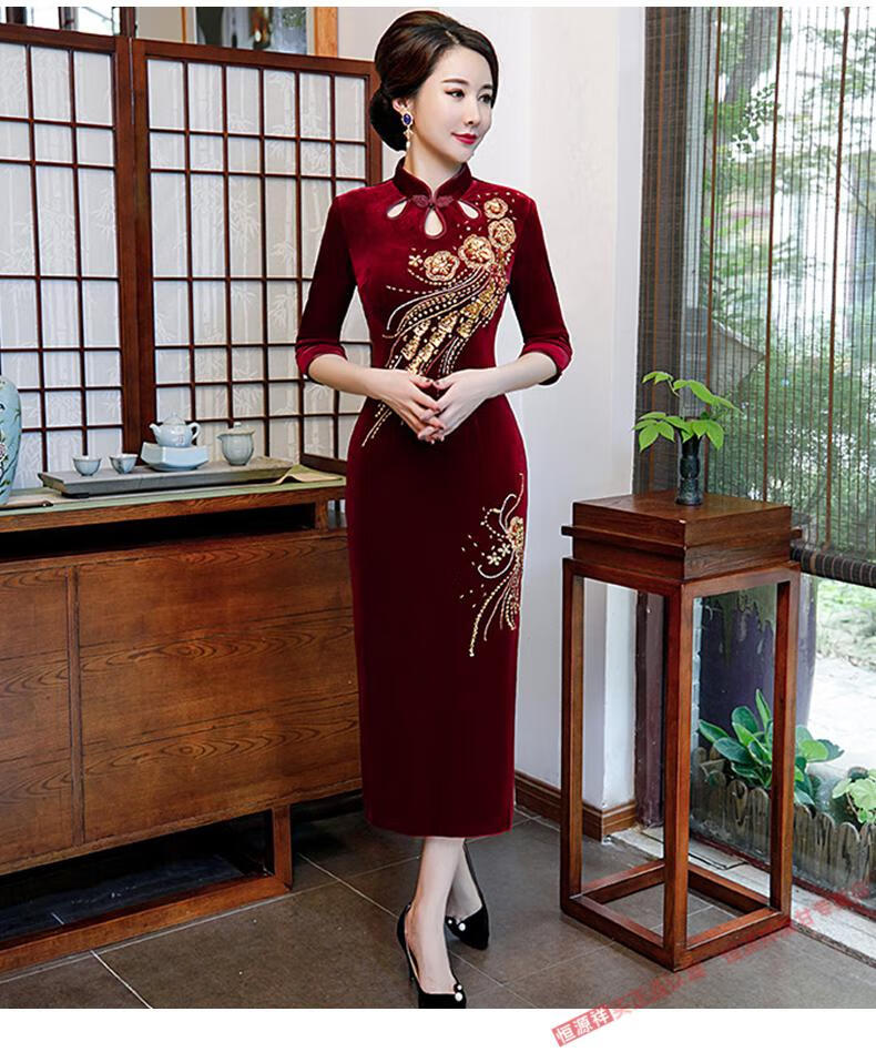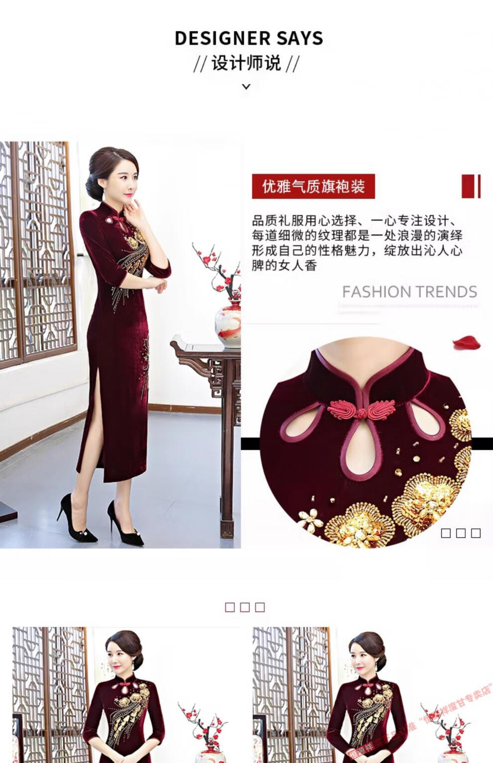 恒源祥结婚旗袍婚礼服礼服春秋款洋气婚宴金丝绒喜婆妈婆晚礼服高贵女 酒红七分-袖9276 M 建议90-100斤