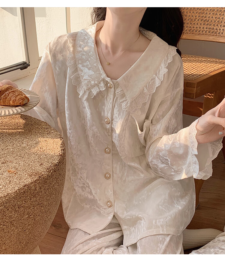 猫人(MiiOW)金丝绒睡衣女秋季女款2025新款长袖长裤甜美公主风花边春秋款冬季 SMSD 9926 白色 L (建议100 120斤)