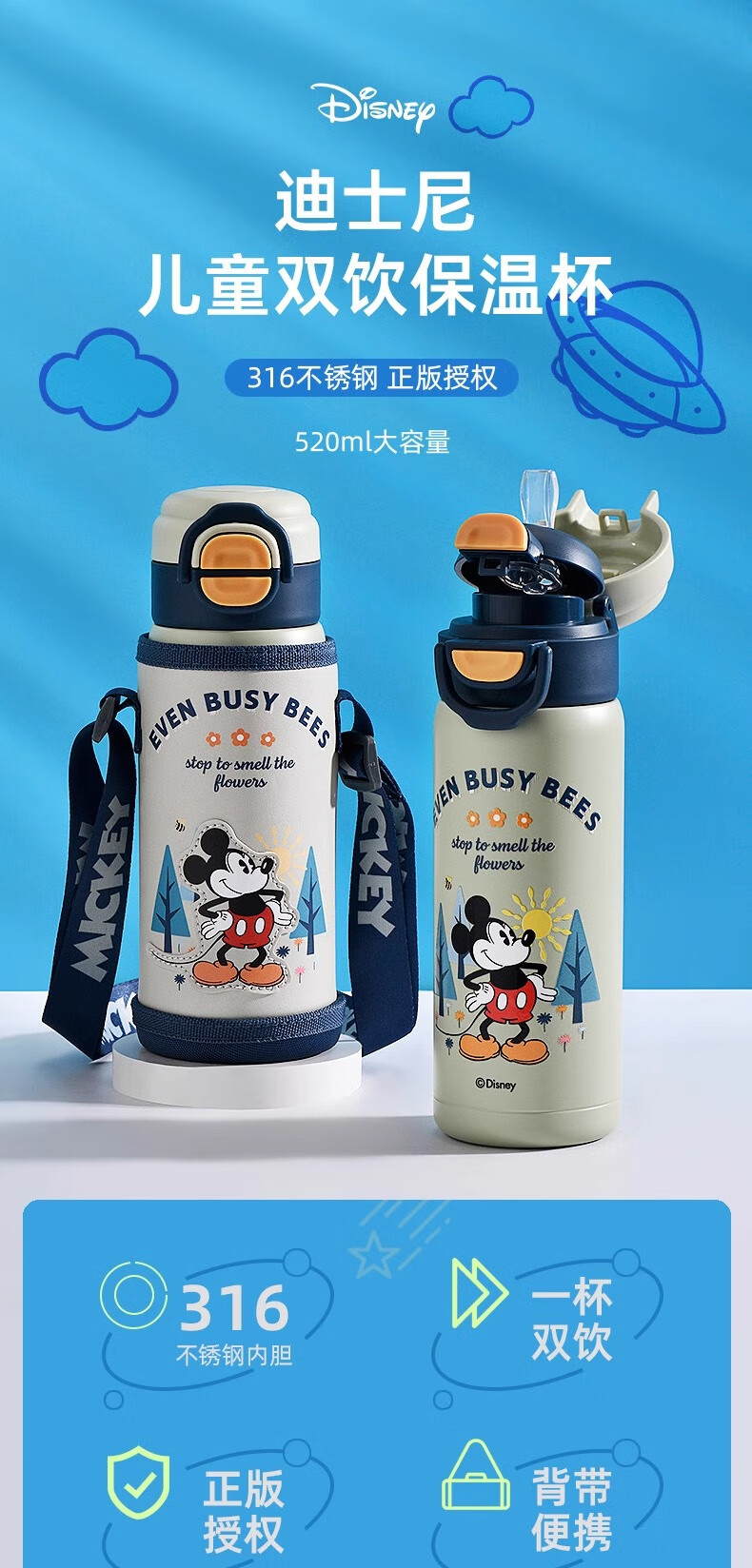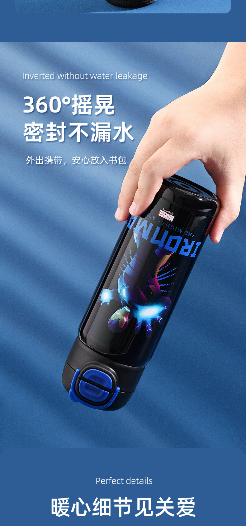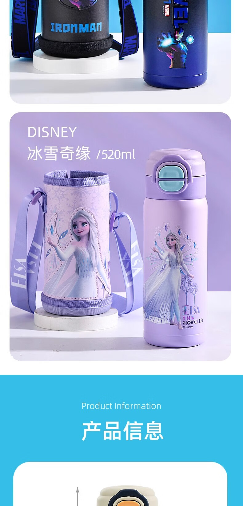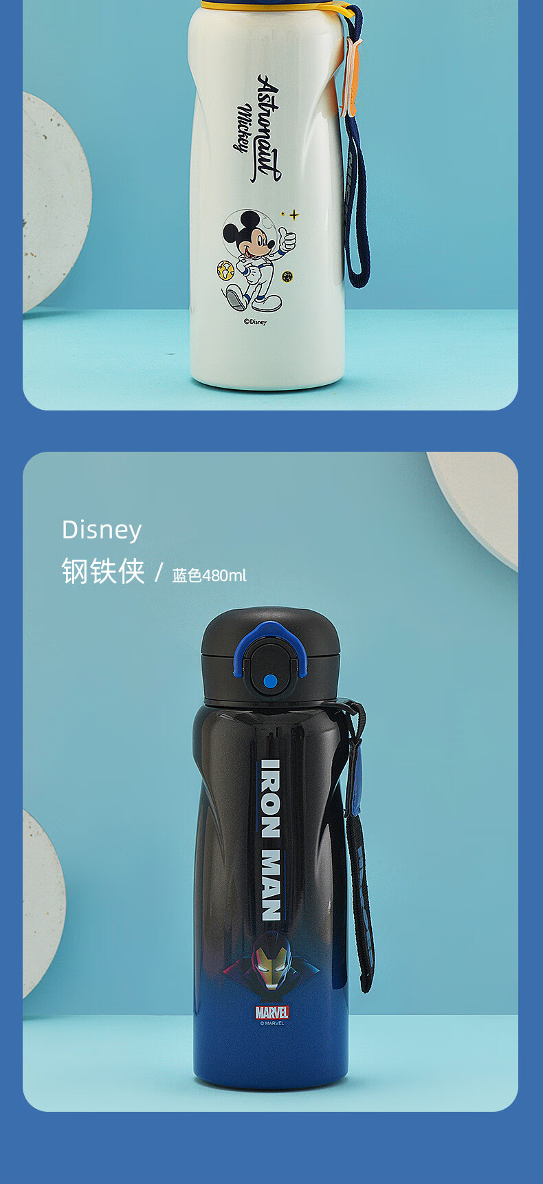 Детский термос Disney (Disney) для детей 3-6-12 лет для школы, 316 детей мужского и женского пола, термос с двойной соломинкой, улучшенный тип двойного напитка + рукав для чашки, 520 мл, Iron Man 6296, нержавеющая сталь 316