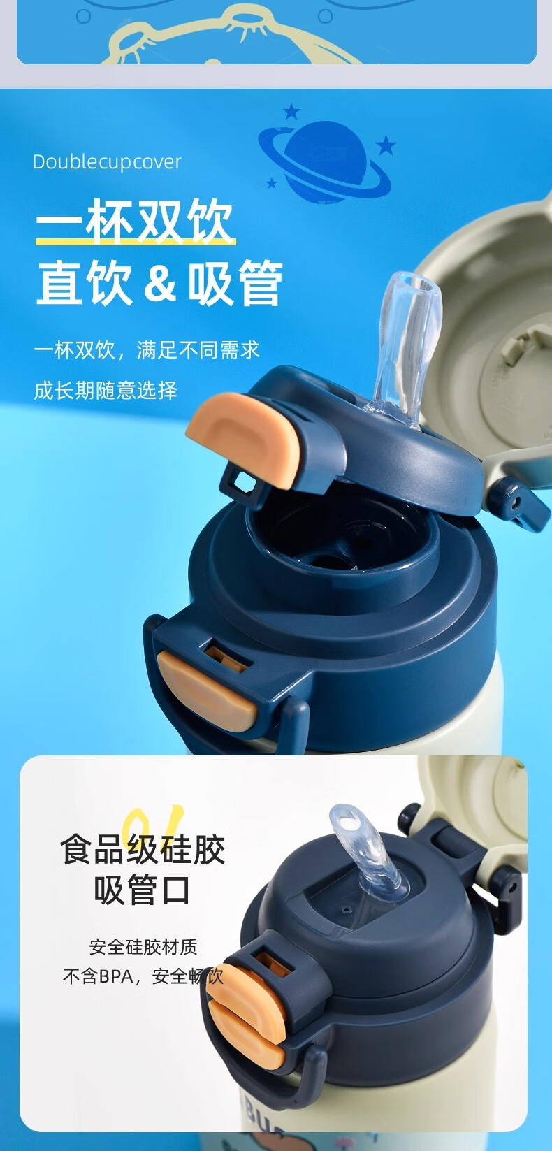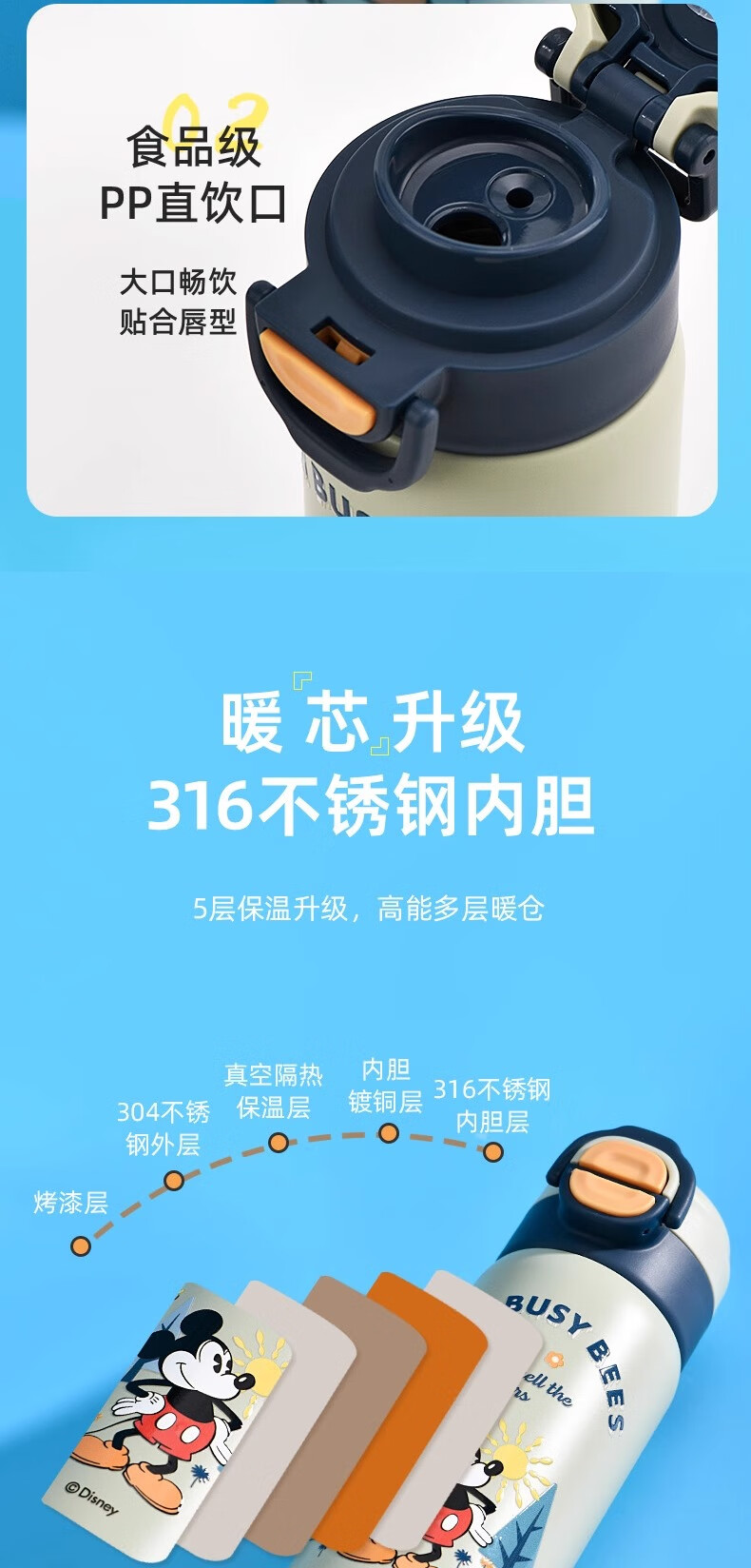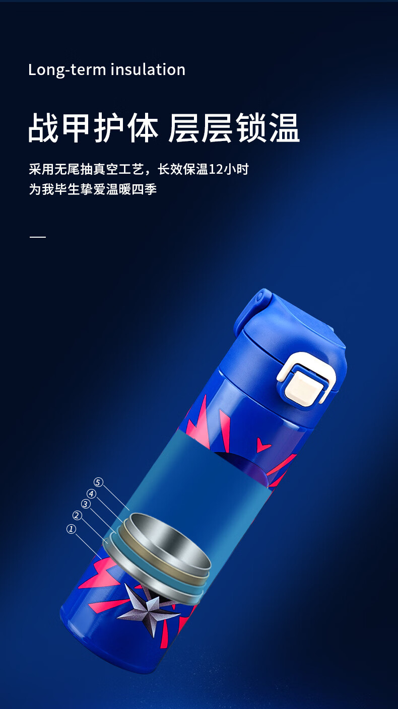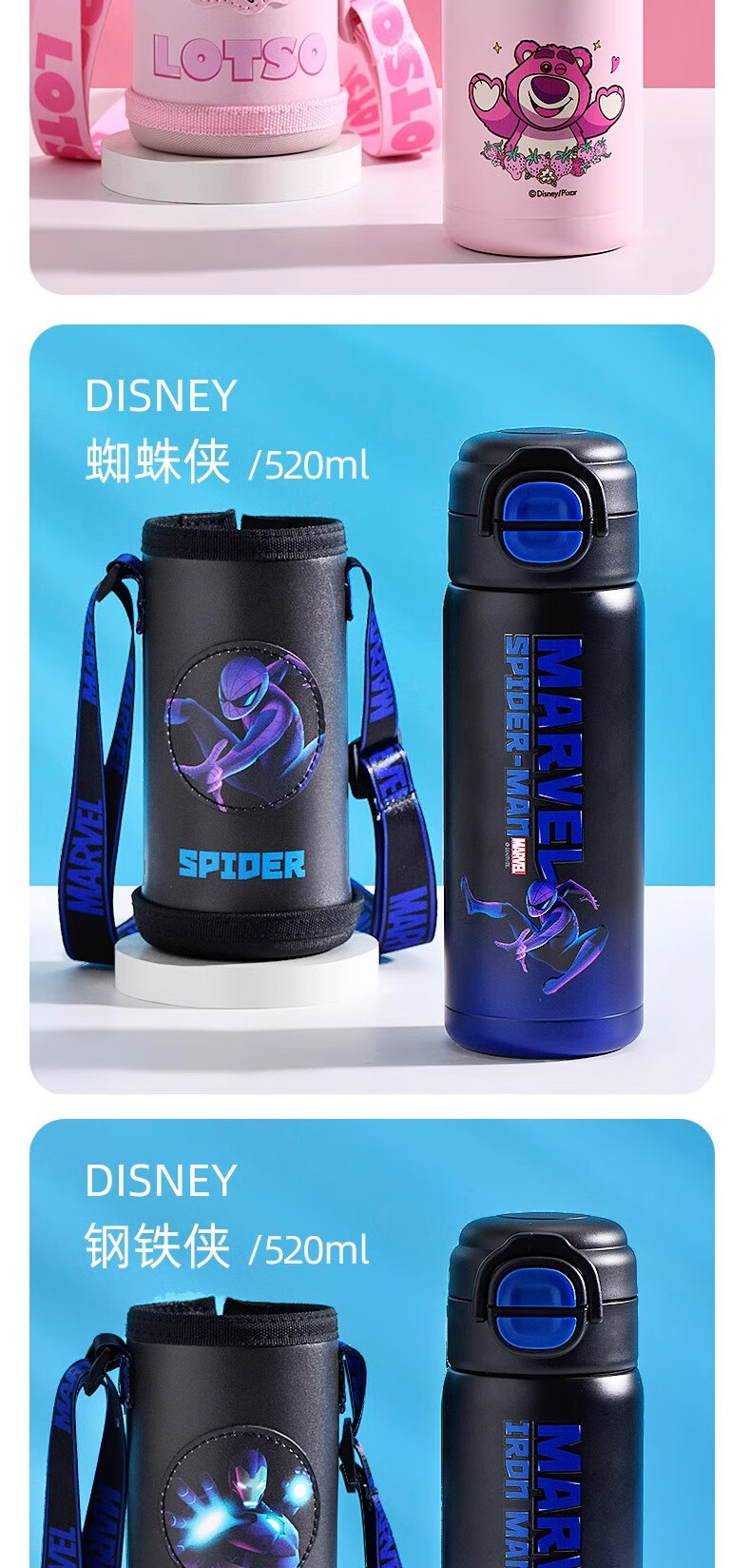 Детский термос Disney (Disney) для детей 3-6-12 лет для школы, 316 детей мужского и женского пола, термос с двойной соломинкой, улучшенный тип двойного напитка + рукав для чашки, 520 мл, Iron Man 6296, нержавеющая сталь 316