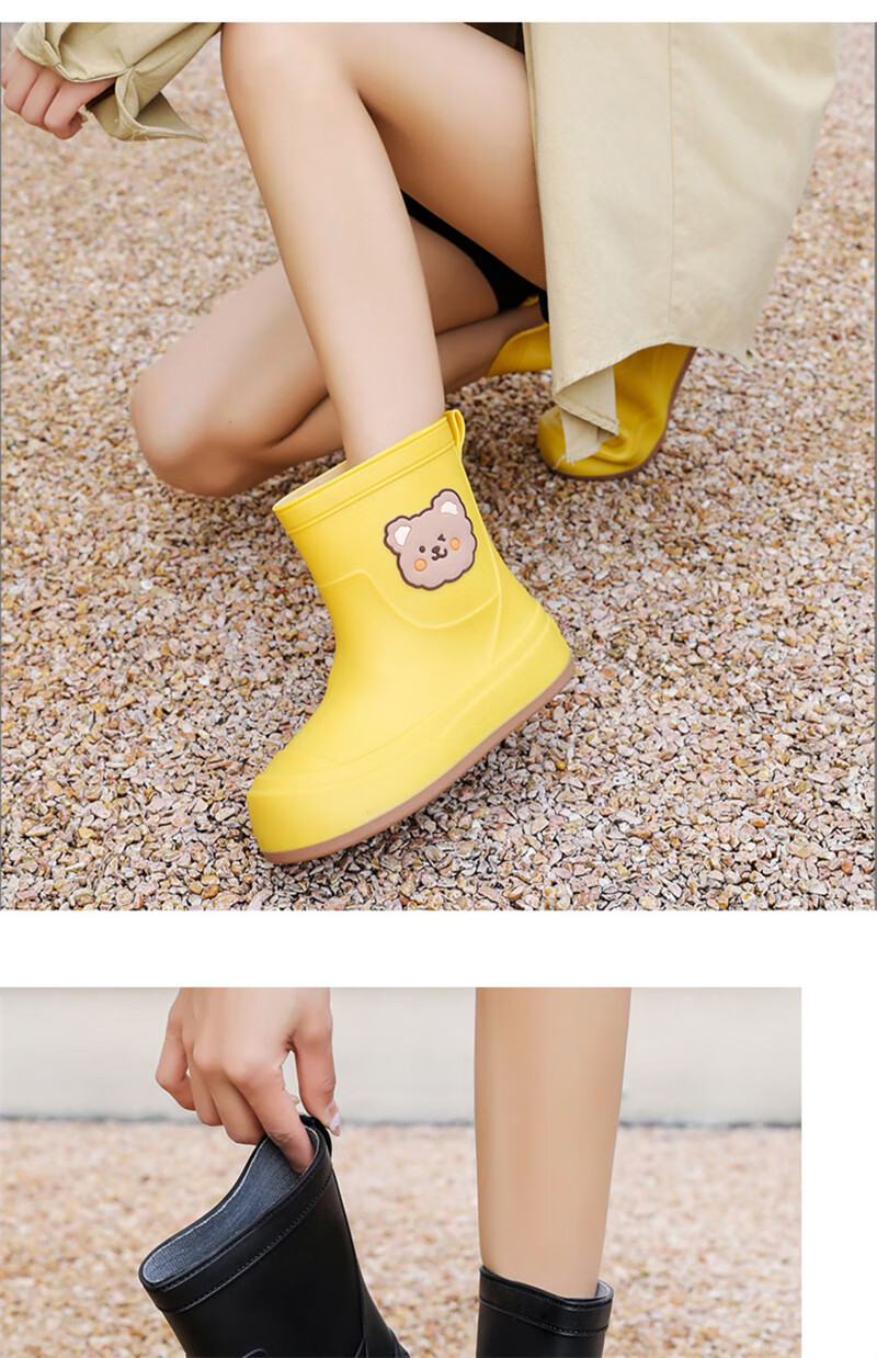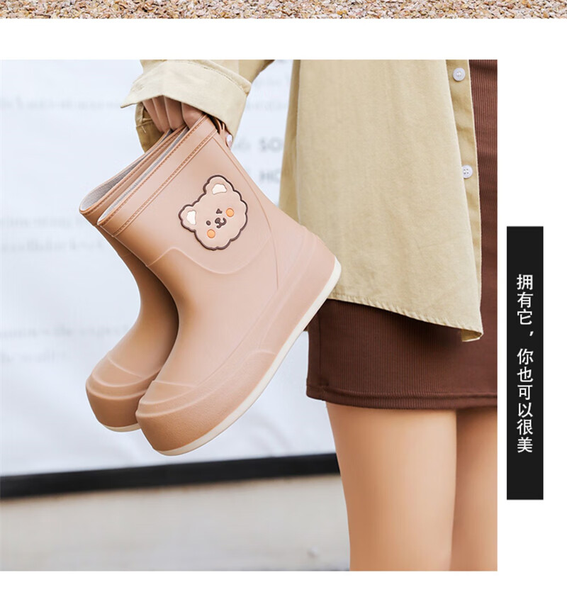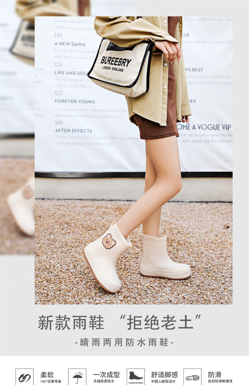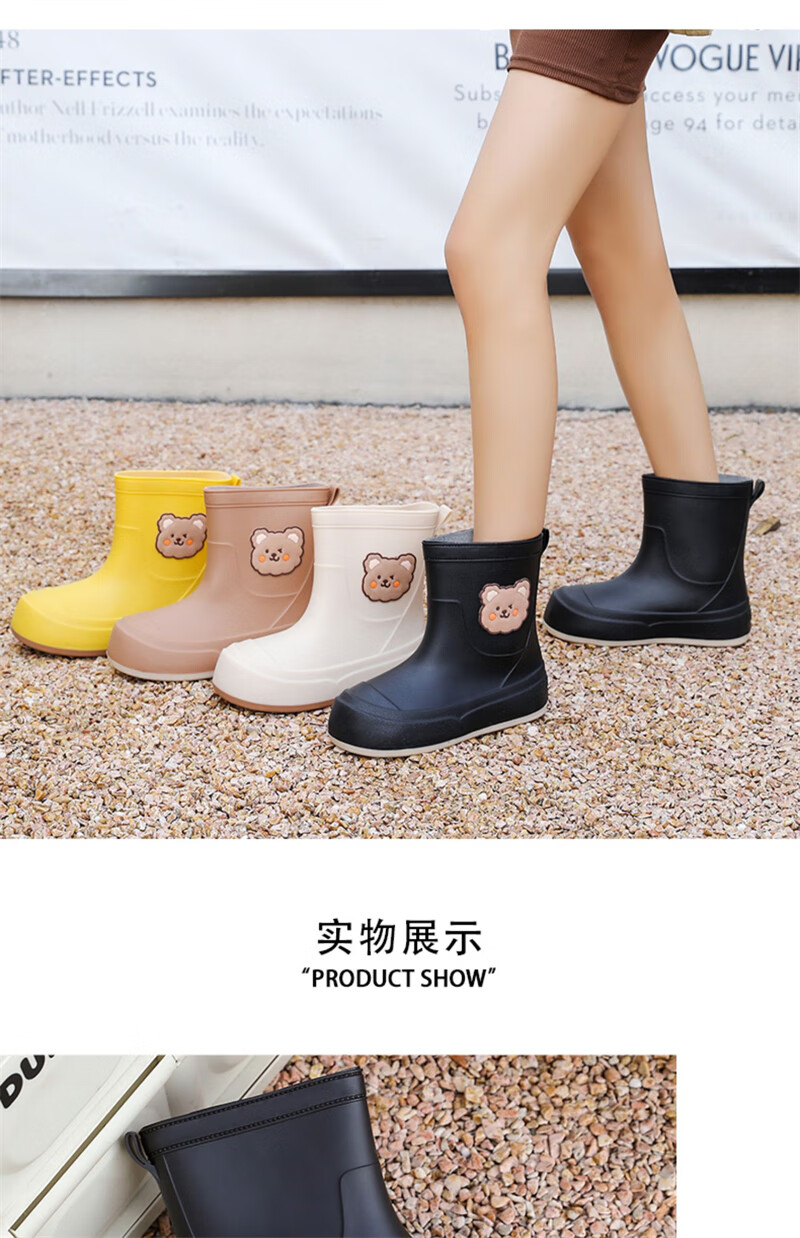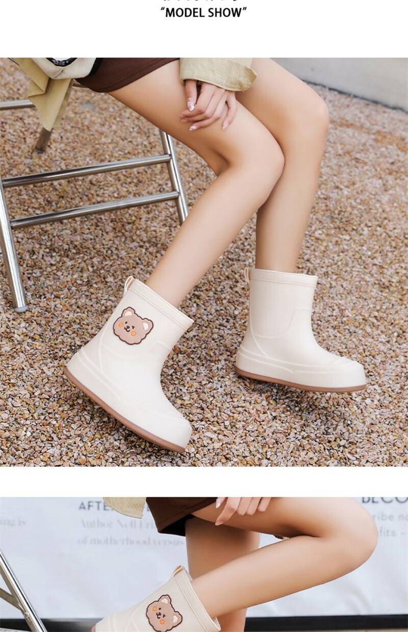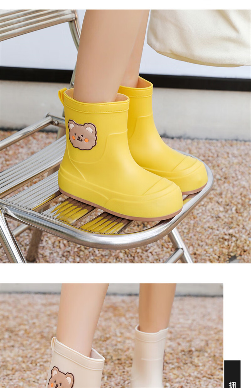 津炳胜时尚日系雨鞋女新款甜美可爱百搭外穿短筒雨靴户外防水防滑水鞋 可爱小熊米白色36码【配鞋垫】 L 尺码偏小一码丨往大拍一码