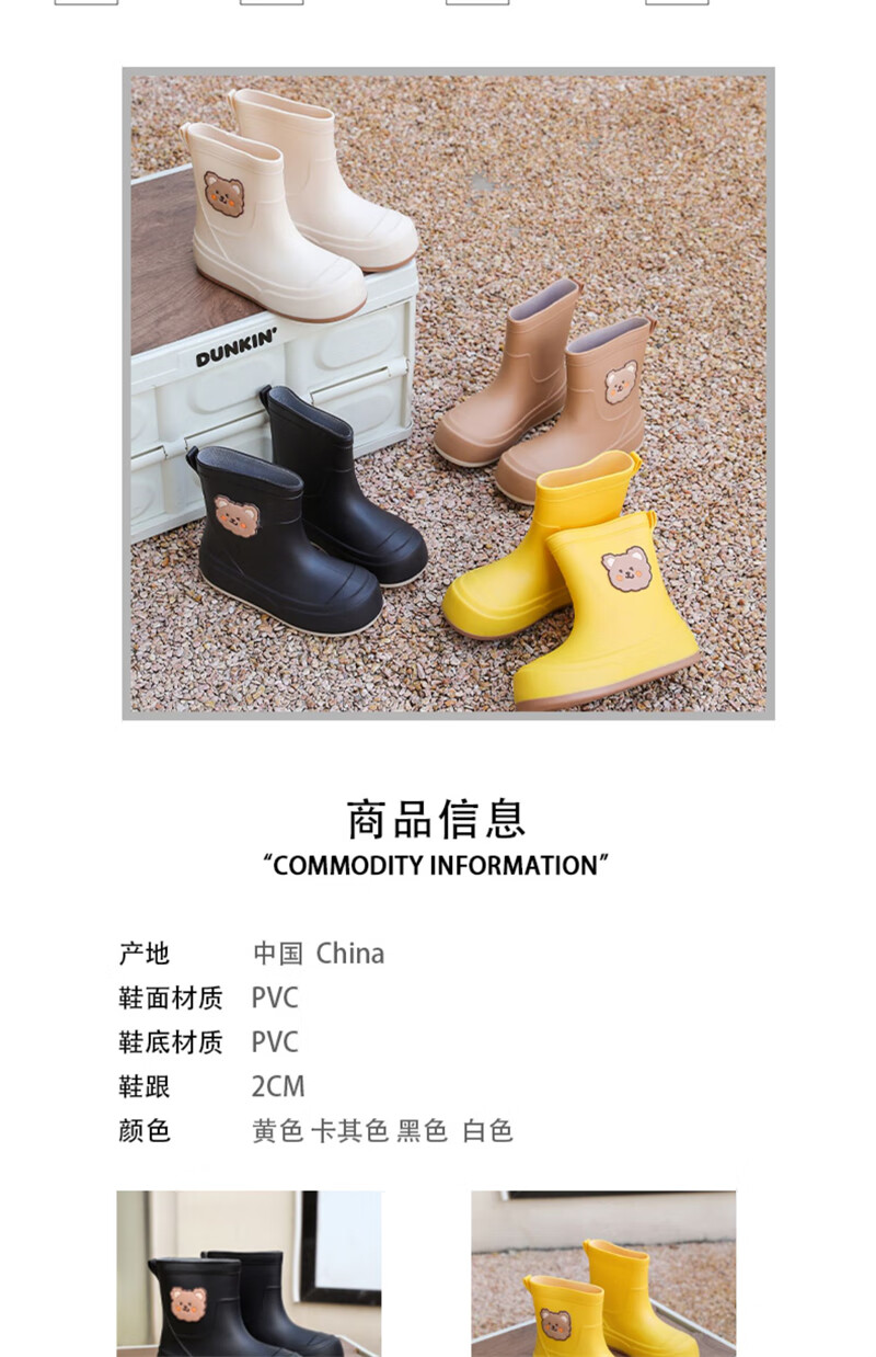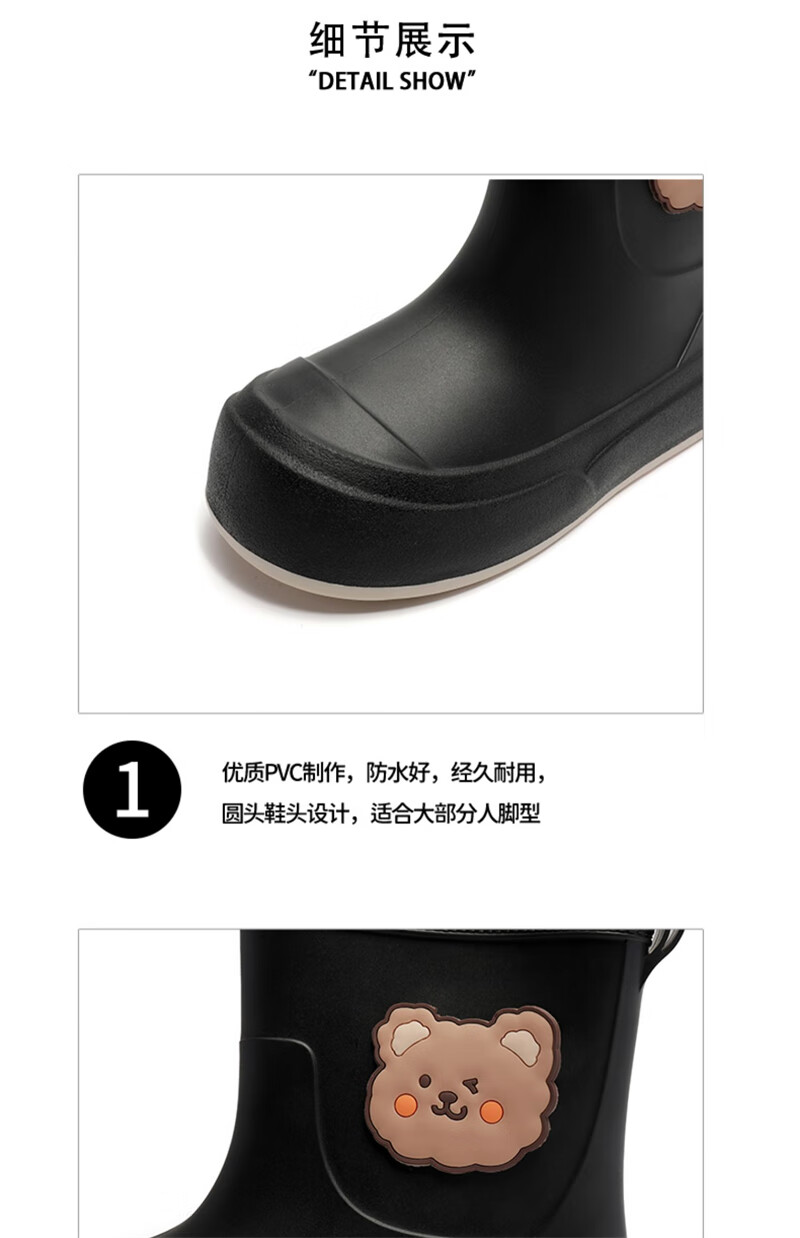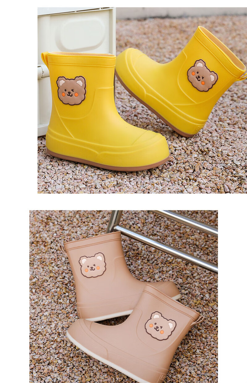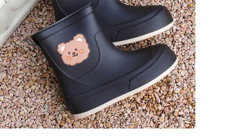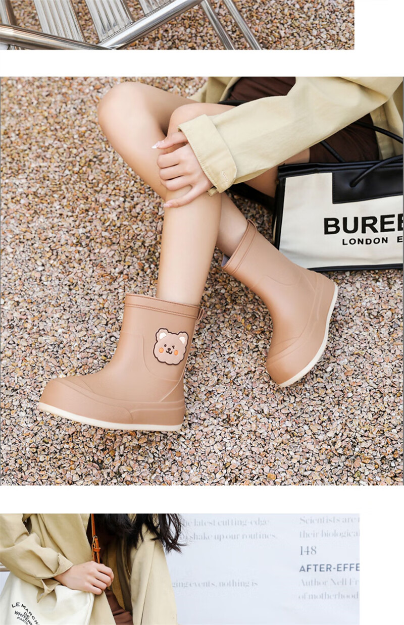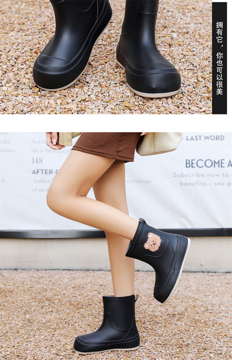 津炳胜时尚日系雨鞋女新款甜美可爱百搭外穿短筒雨靴户外防水防滑水鞋 可爱小熊米白色36码【配鞋垫】 L 尺码偏小一码丨往大拍一码