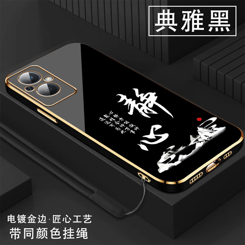 尚迹适用oppoa96手机壳男女新款直边电镀硅胶软镜头全包防摔保护套文字中国风高级感轻奢时尚个性 ou1289天道酬勤-典雅黑 OPPOA96【送同颜色挂绳】