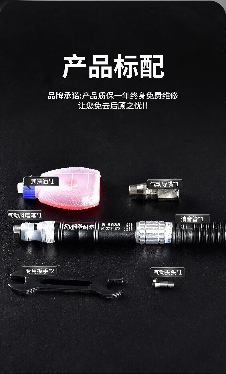 Han Chang Sheng Nair amoladora neumática pluma de molienda de aire molienda de aire grado industrial pequeña herramienta de grabado de pulido neumático versión insignia S-6636 alto par estándar 60 piezas gratis