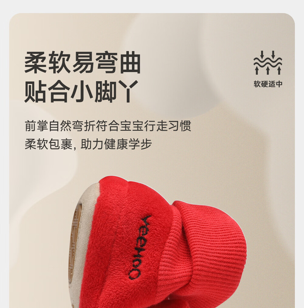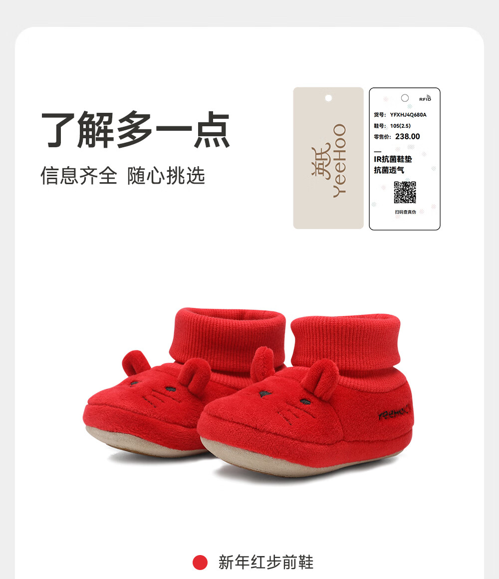英氏(YEEHOO)【商场同款】儿童鞋喜庆可爱布鞋婴儿袜鞋秋冬鞋子 新年红步前鞋 适合约6-18个月 20 码 建议脚长11-12cm