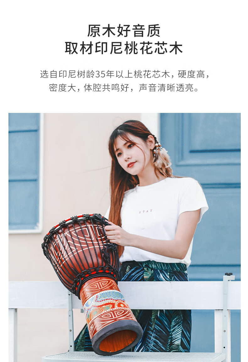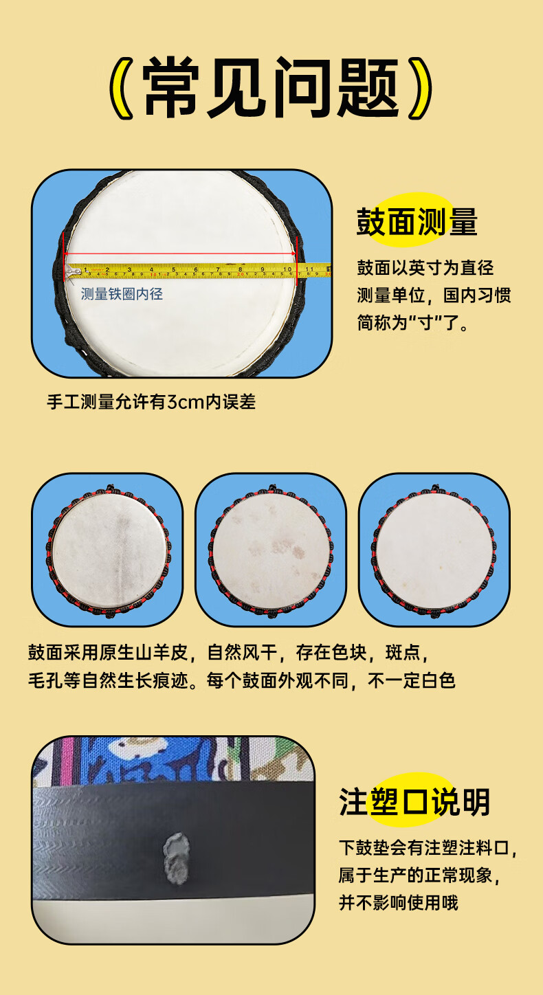 Mu Sheng Cega Tambour africain pour enfants Standard 8 Maternelle Adulte Débutant Lijiang Tambour à main Instrument de percussion 10/12 pouces 8 pouces Grand 8 Ciel étoilé + Gratuit