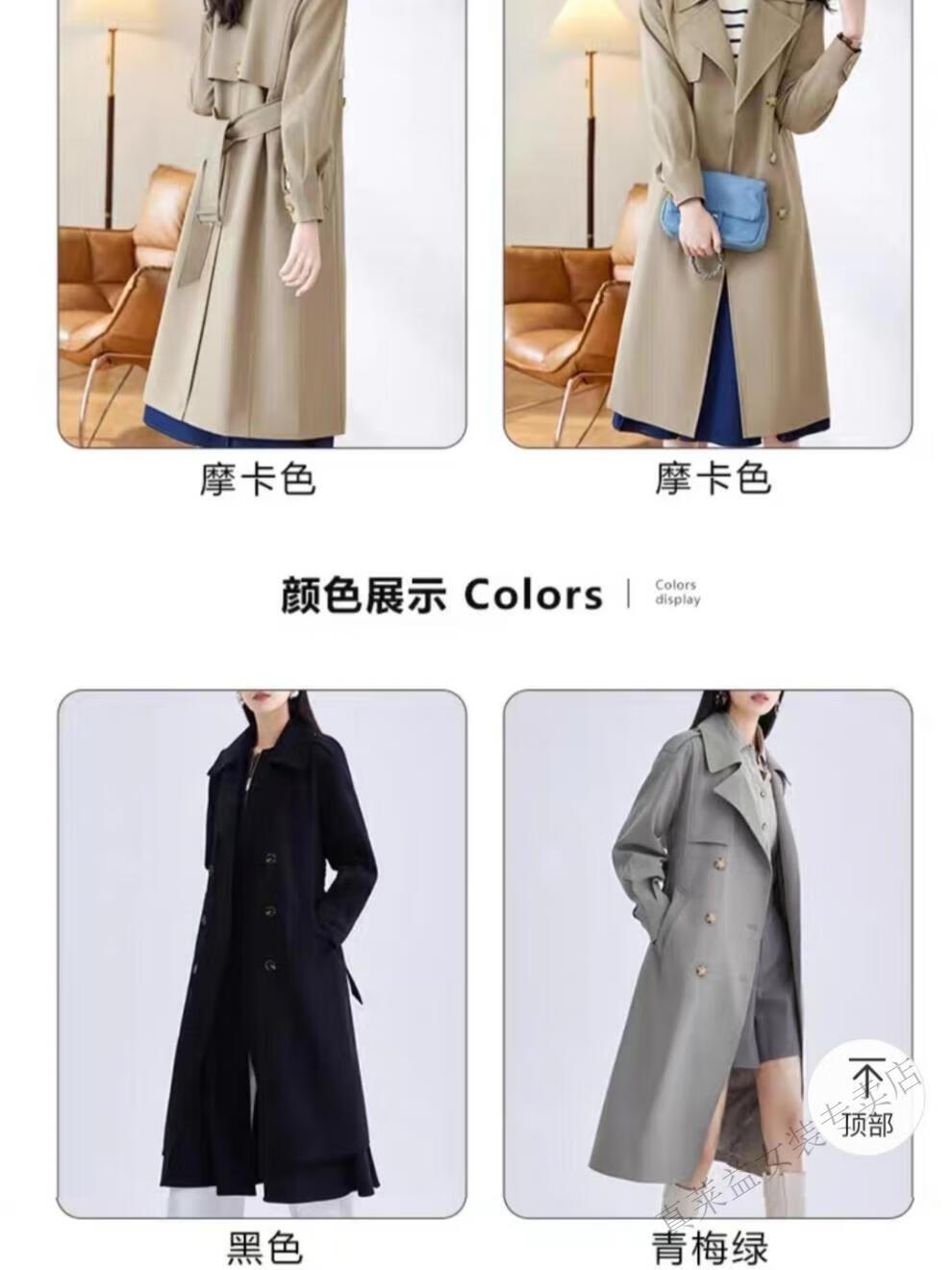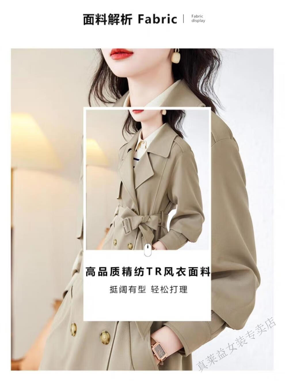 Pierre Cardin 2025 new autumn women's mid-length windbreaker feels super good and drapey casual loose coat Khaki L 105-130Jin Jin equals 0.5 kg