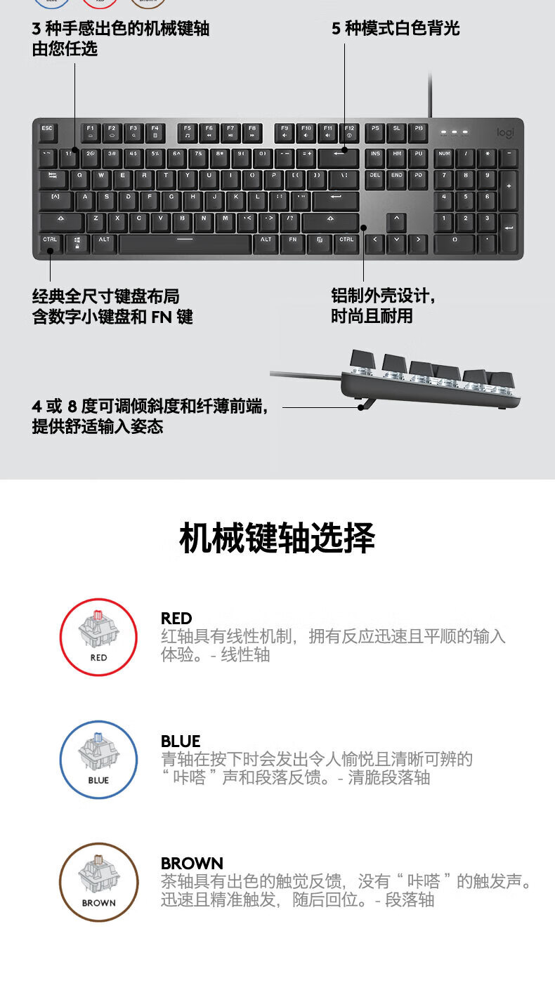 罗技(Logitech)K845机械游戏办公键盘 G102二代 游戏鼠标 有线电竞鼠标 键盘鼠标套装 K845红轴+G102黑