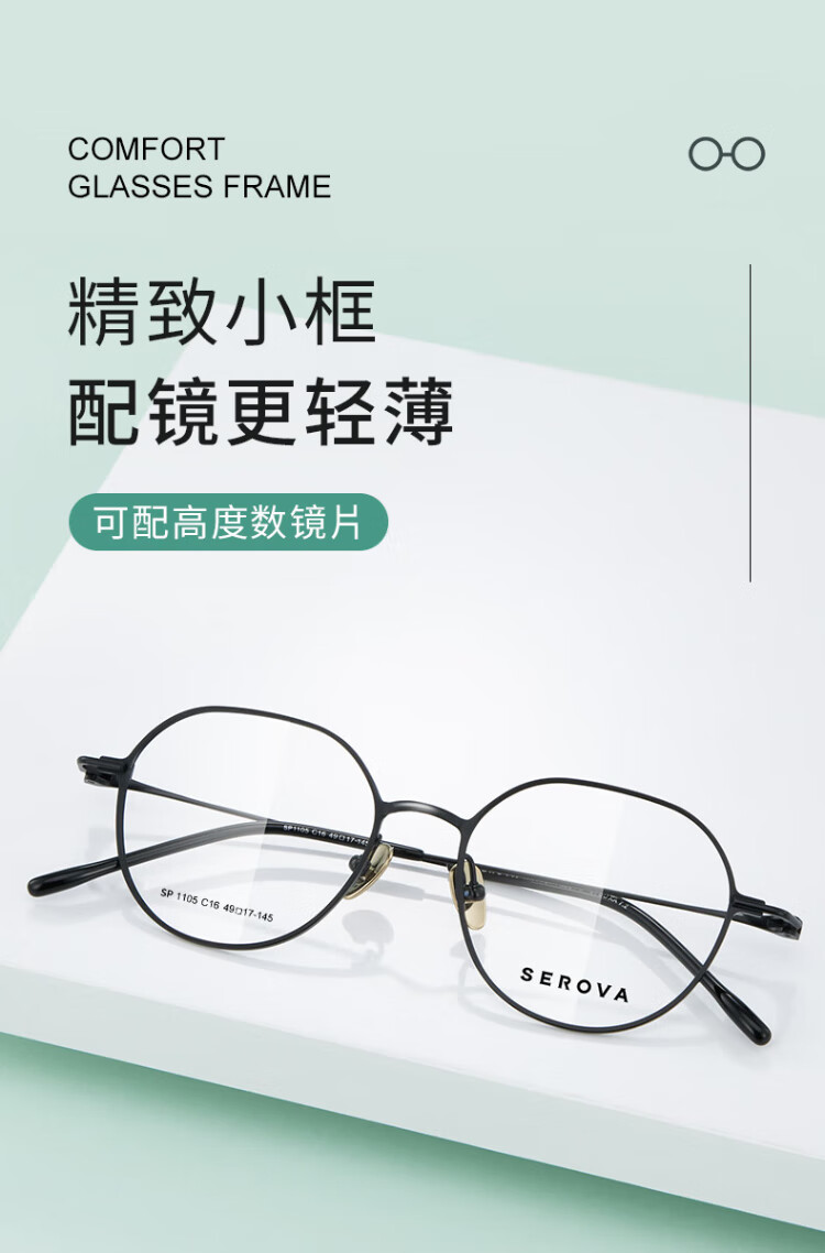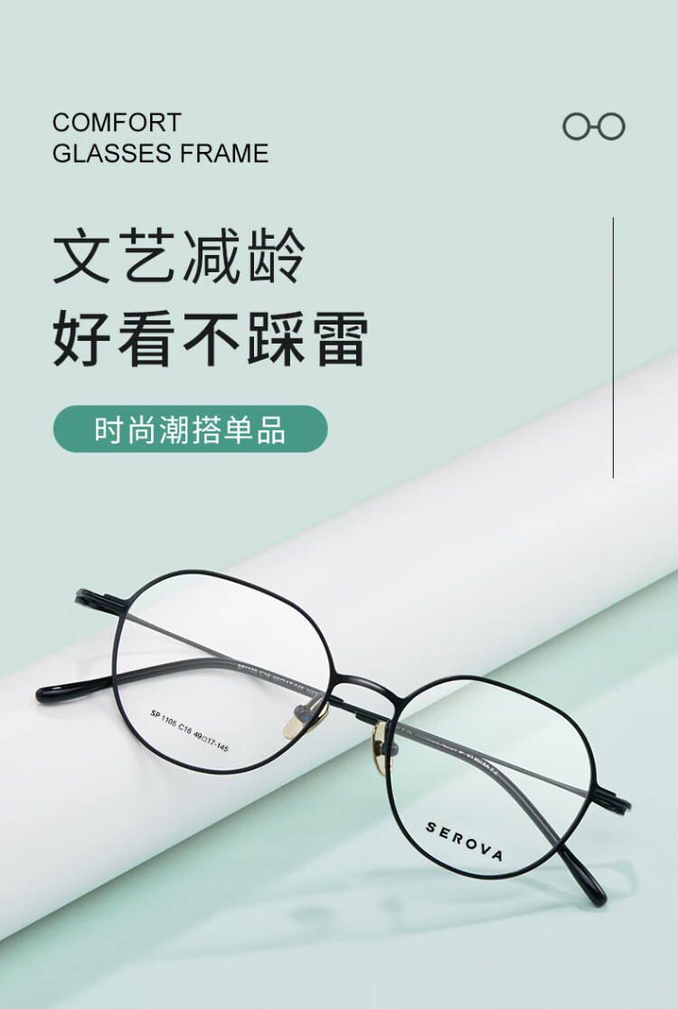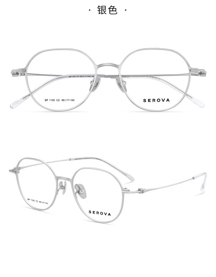 Swarovski glasses frame, retro literary and artistic myopia glasses, men's anti-blue light with prescription, women's plain glasses, titanium frame SP1105, Swarovski SP1105 silver C2 single frame (with mirror box and lens cloth)