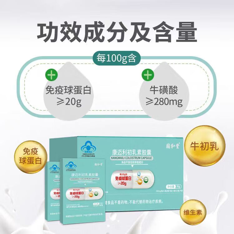 Guohe Tang Kangmaili Cápsulas de inmunoglobulina Calostro bovino Mejora oral de la inmunidad 24 cápsulas * 5 cajas