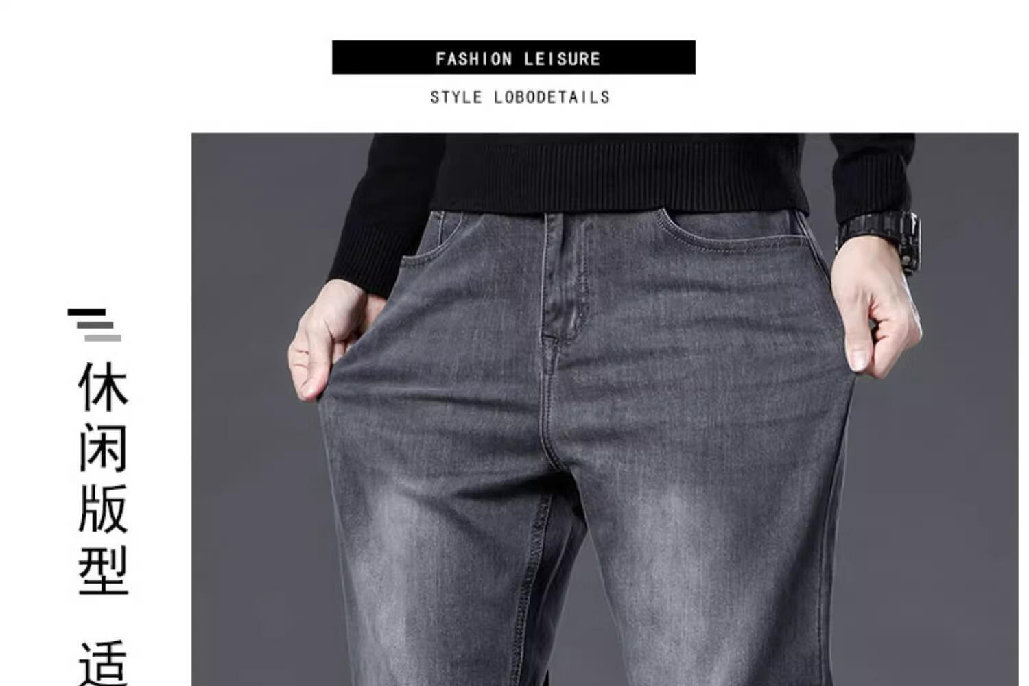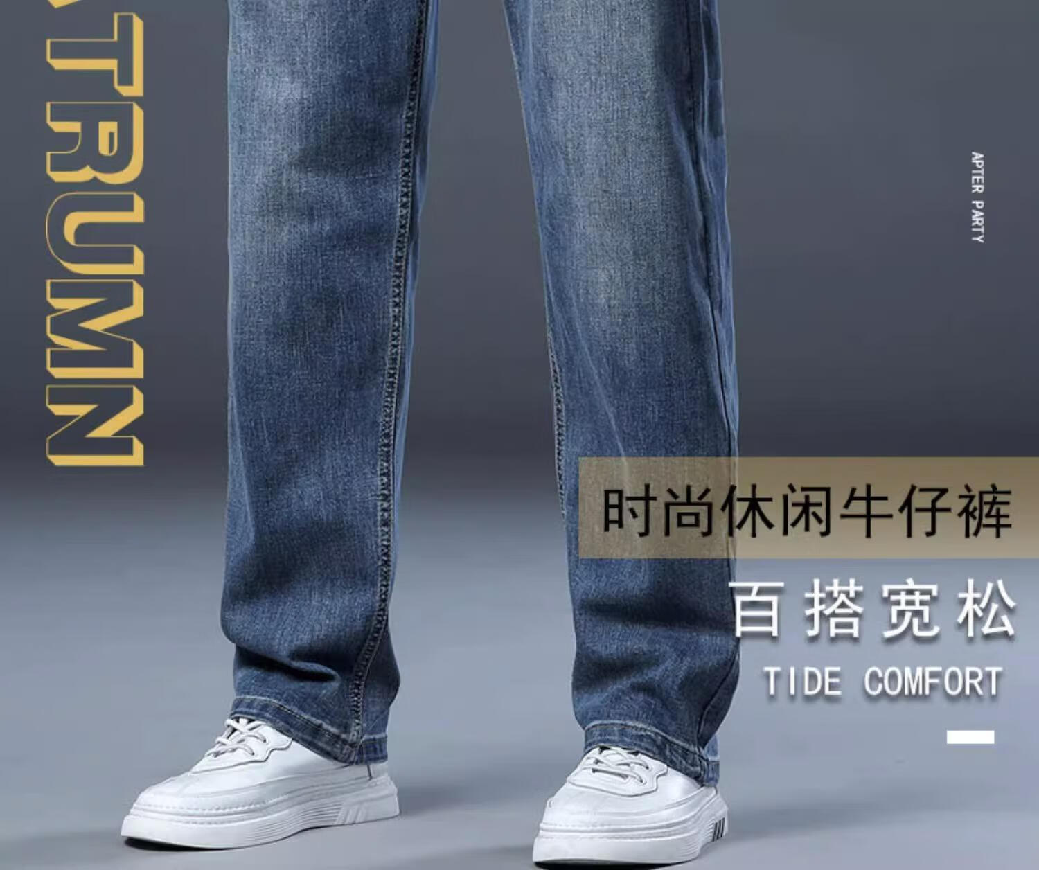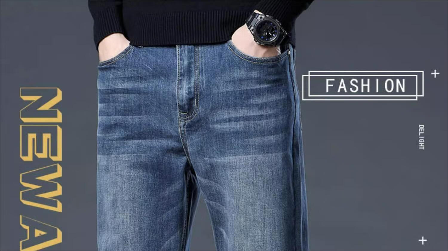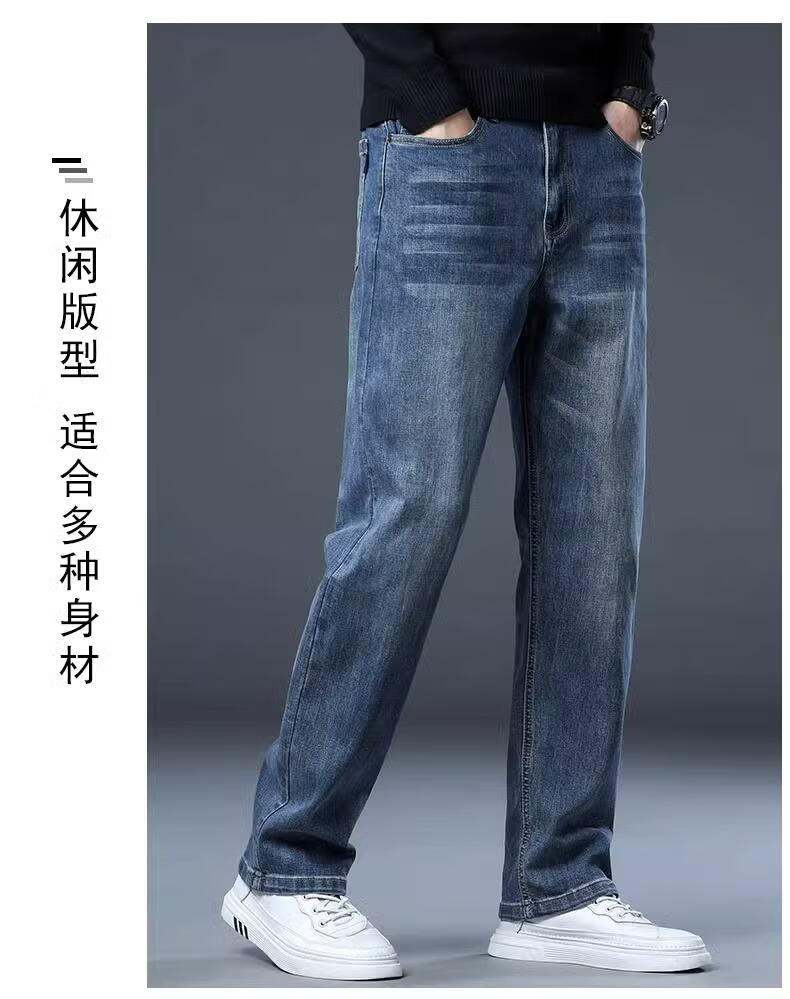JEEP SPIRIT牛仔裤2025男士春秋直筒宽松长裤新款弹力男裤爸爸装冬季休闲裤子 蓝色 33