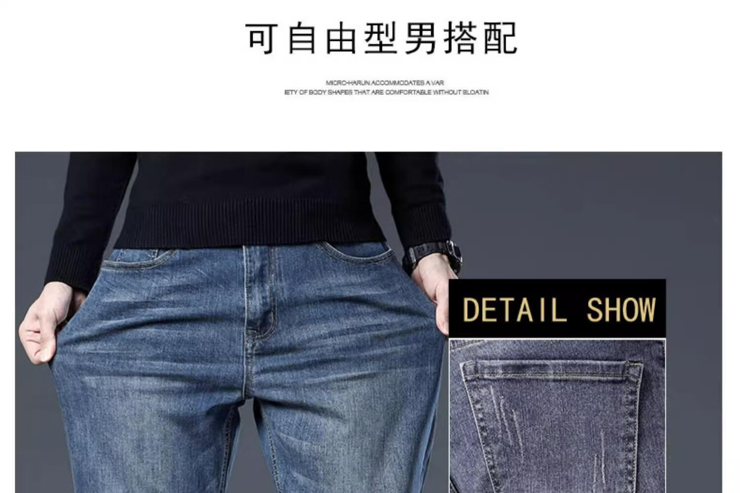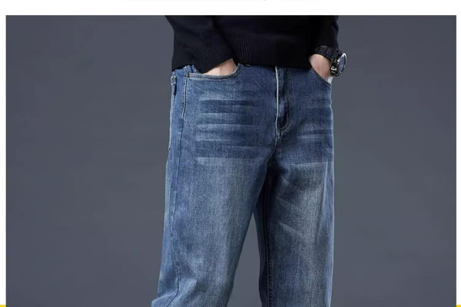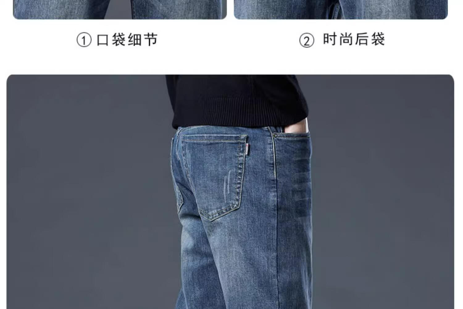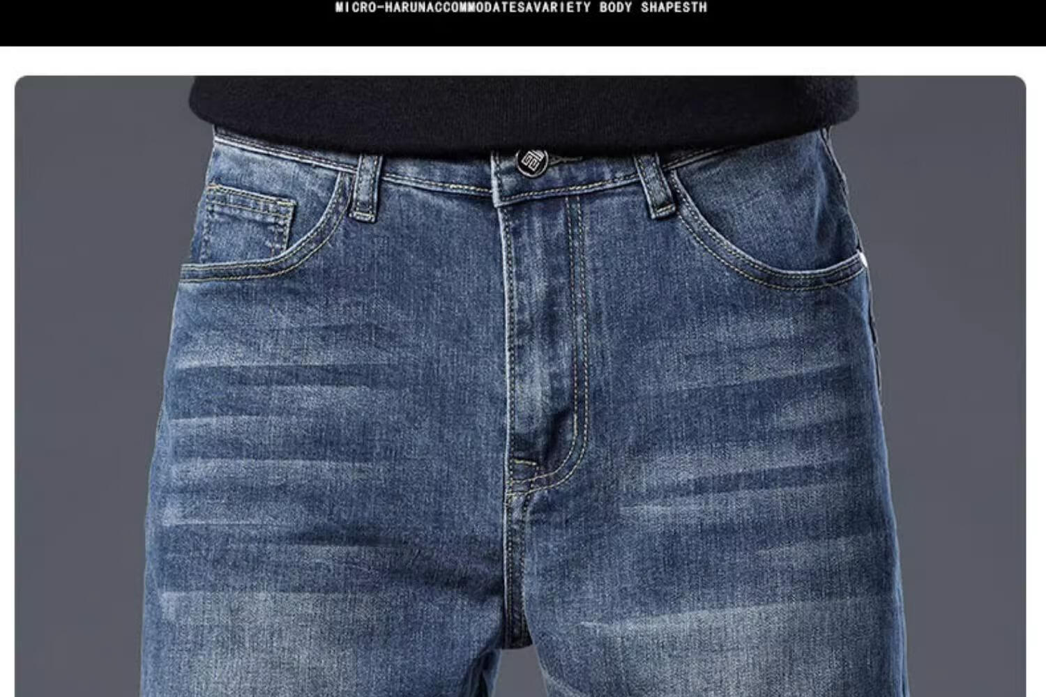 JEEP SPIRIT牛仔裤2025男士春秋直筒宽松长裤新款弹力男裤爸爸装冬季休闲裤子 蓝色 33