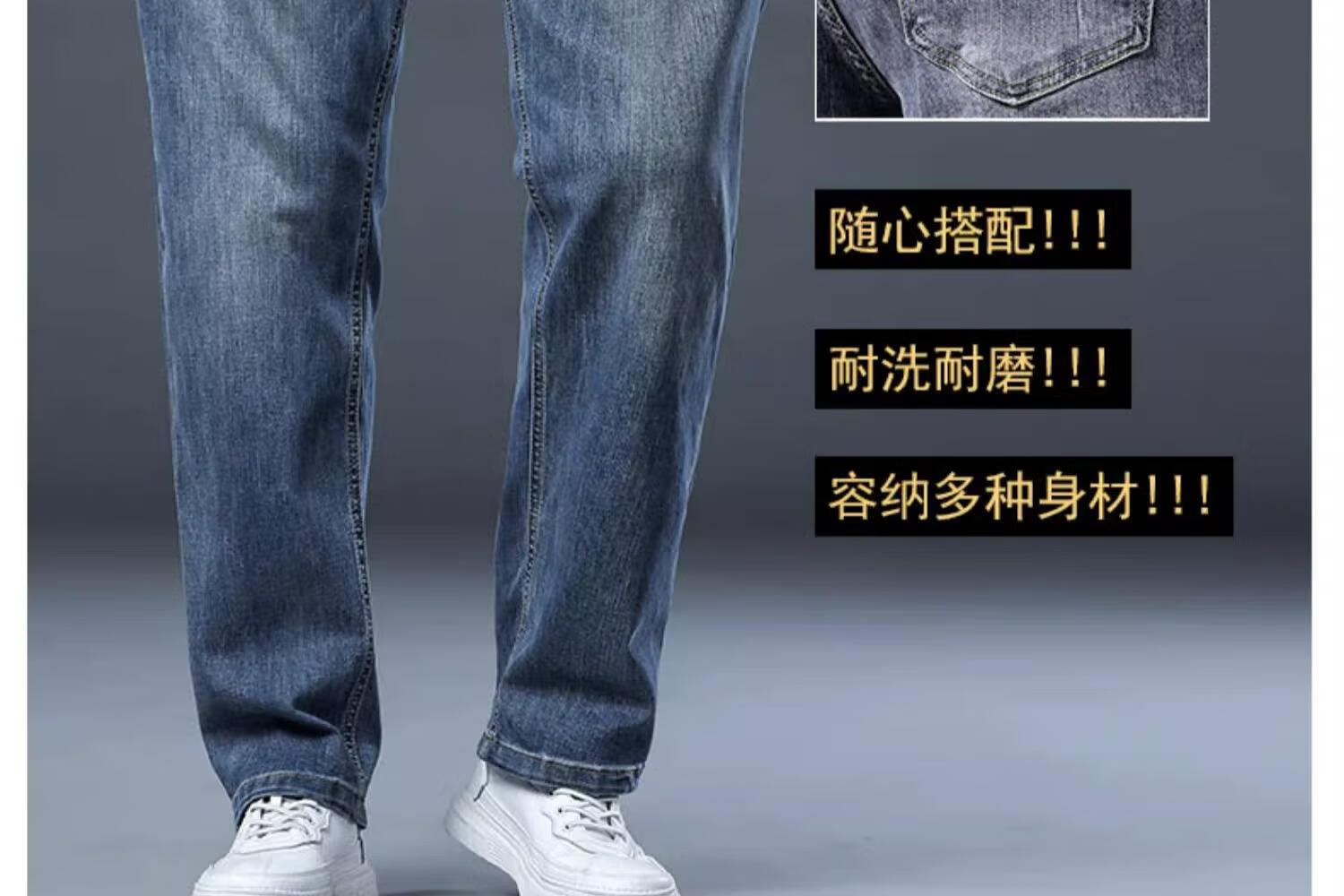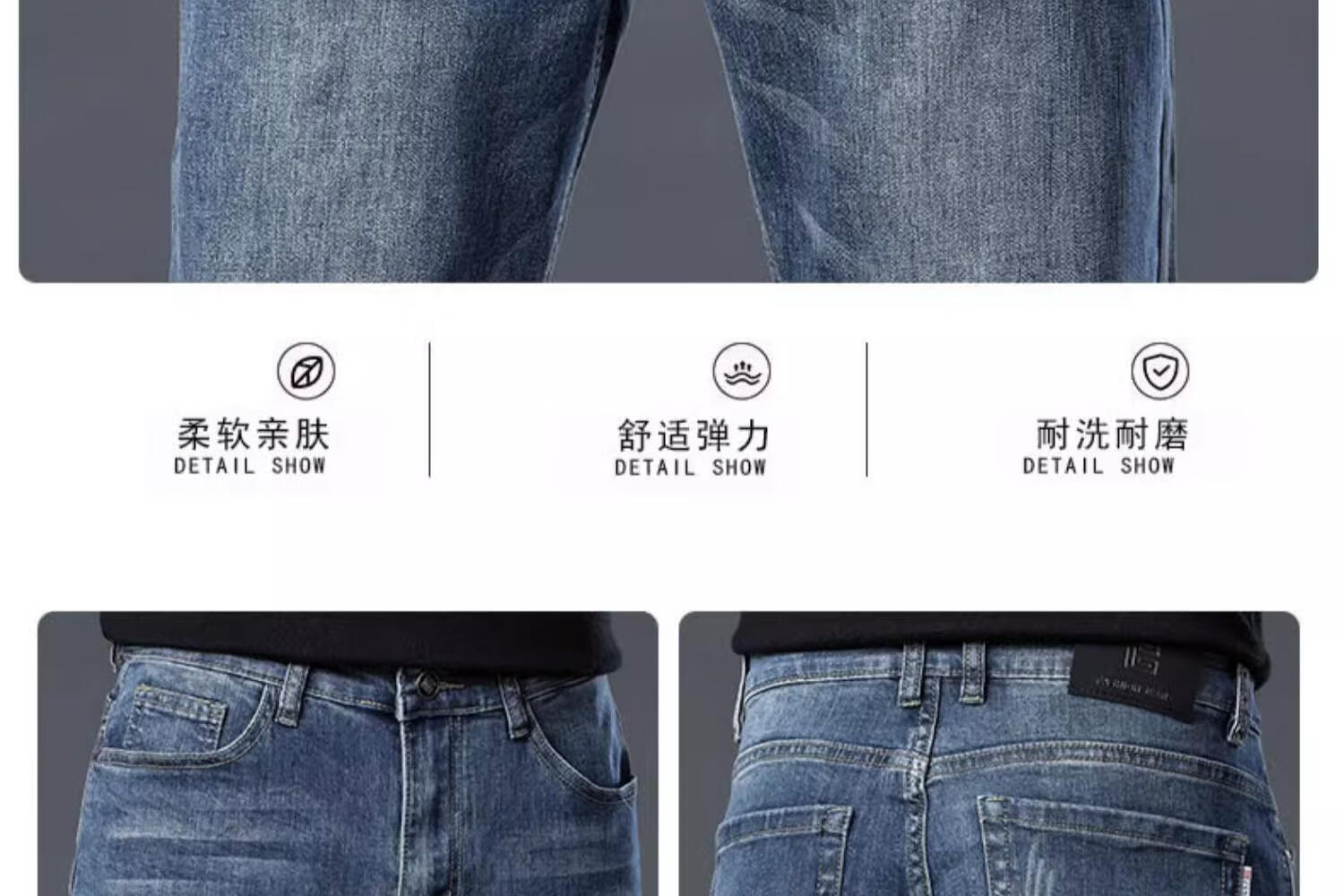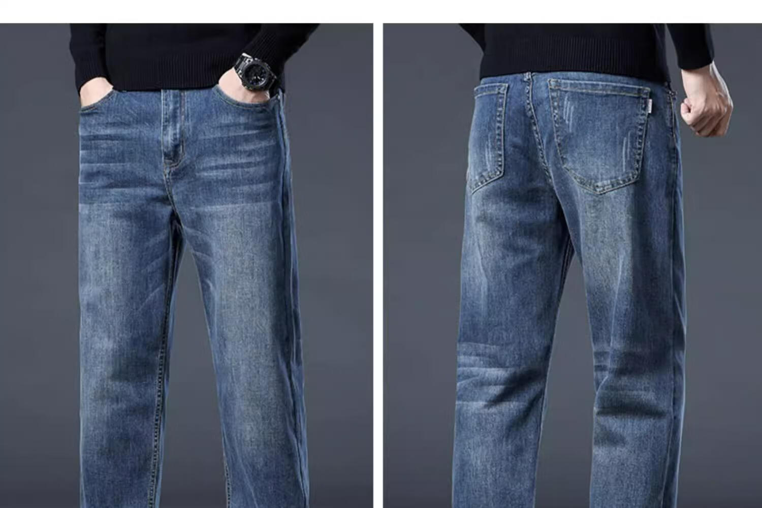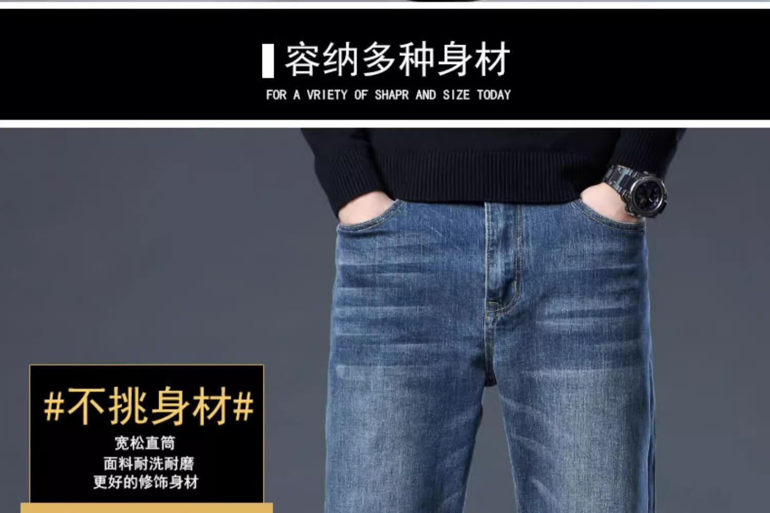 JEEP SPIRIT牛仔裤2025男士春秋直筒宽松长裤新款弹力男裤爸爸装冬季休闲裤子 蓝色 33