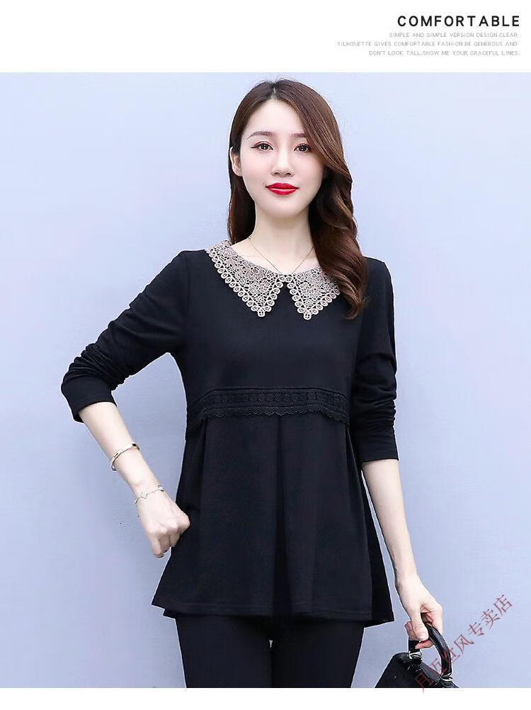 Langärmliges T-Shirt mit frühem Durchmesser für Frühling und Herbst, koreanische Version, lockere, altersreduzierende, lässige, große Damenbekleidung, die den Bauch bedeckt und Hemdoberteil im westlichen Stil abnimmt, brauner Frühlings- und Herbststil 9767 5XL 160-175Jin Jin entspricht 0,5 kg