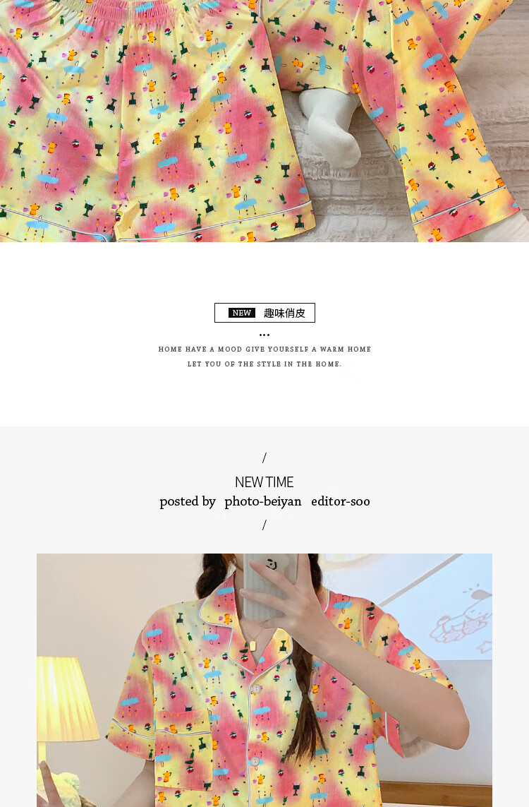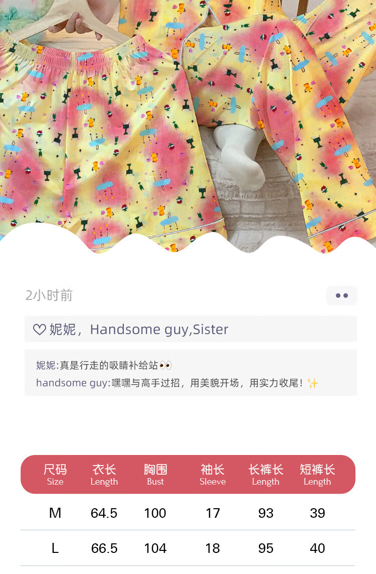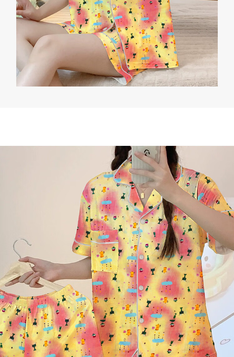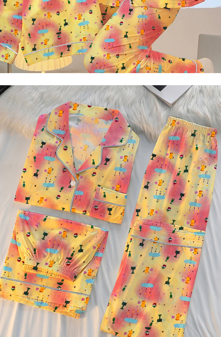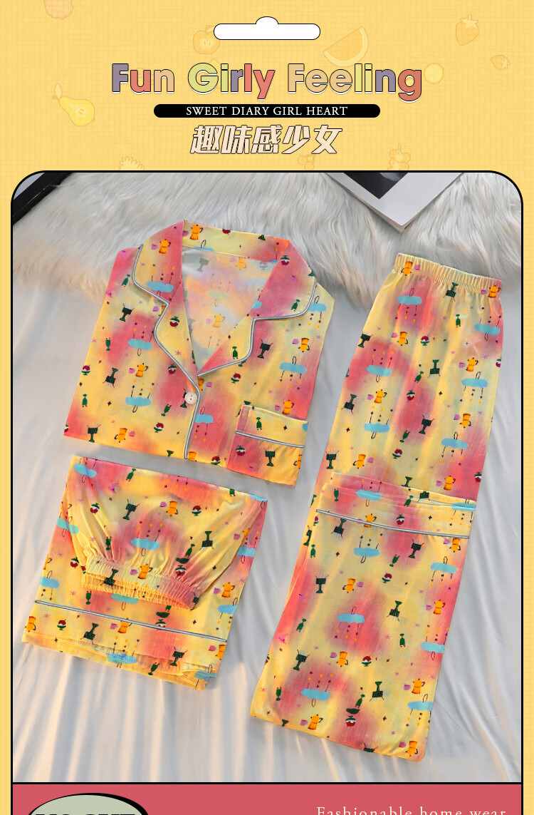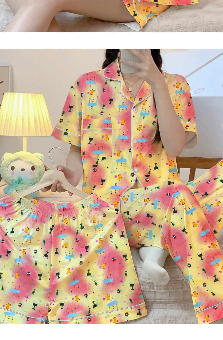 三件套睡衣女夏秋新款少女短袖彩色多巴胺印花宽松高颜值家居服 套KK14117红色 2XL【建议135-145斤】