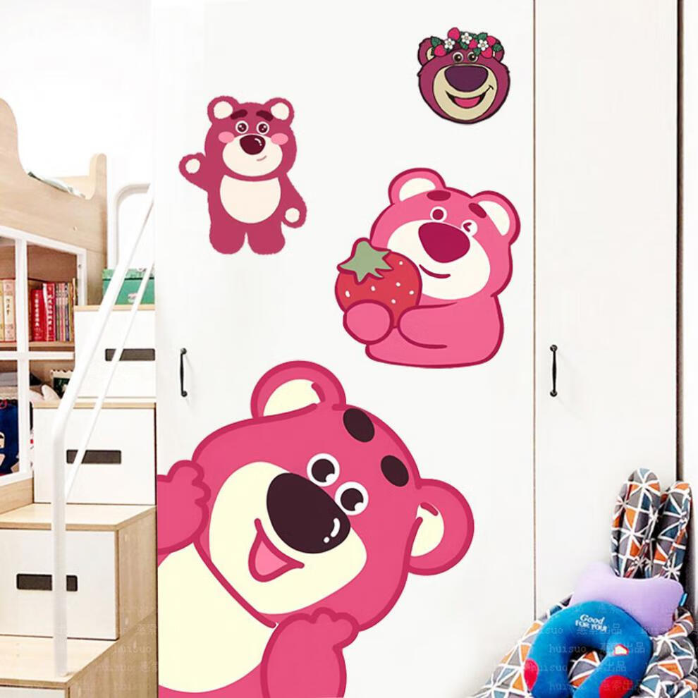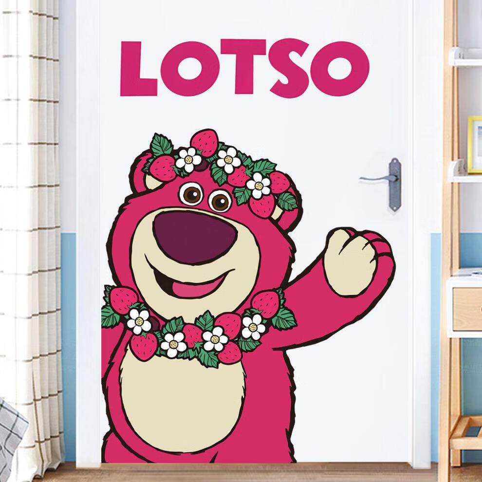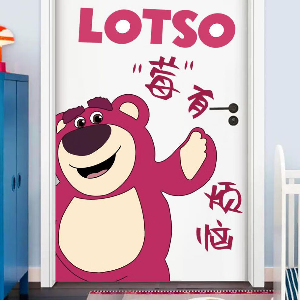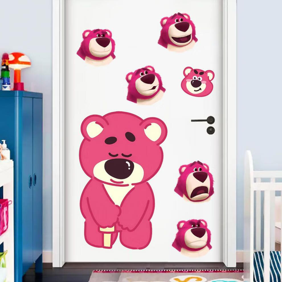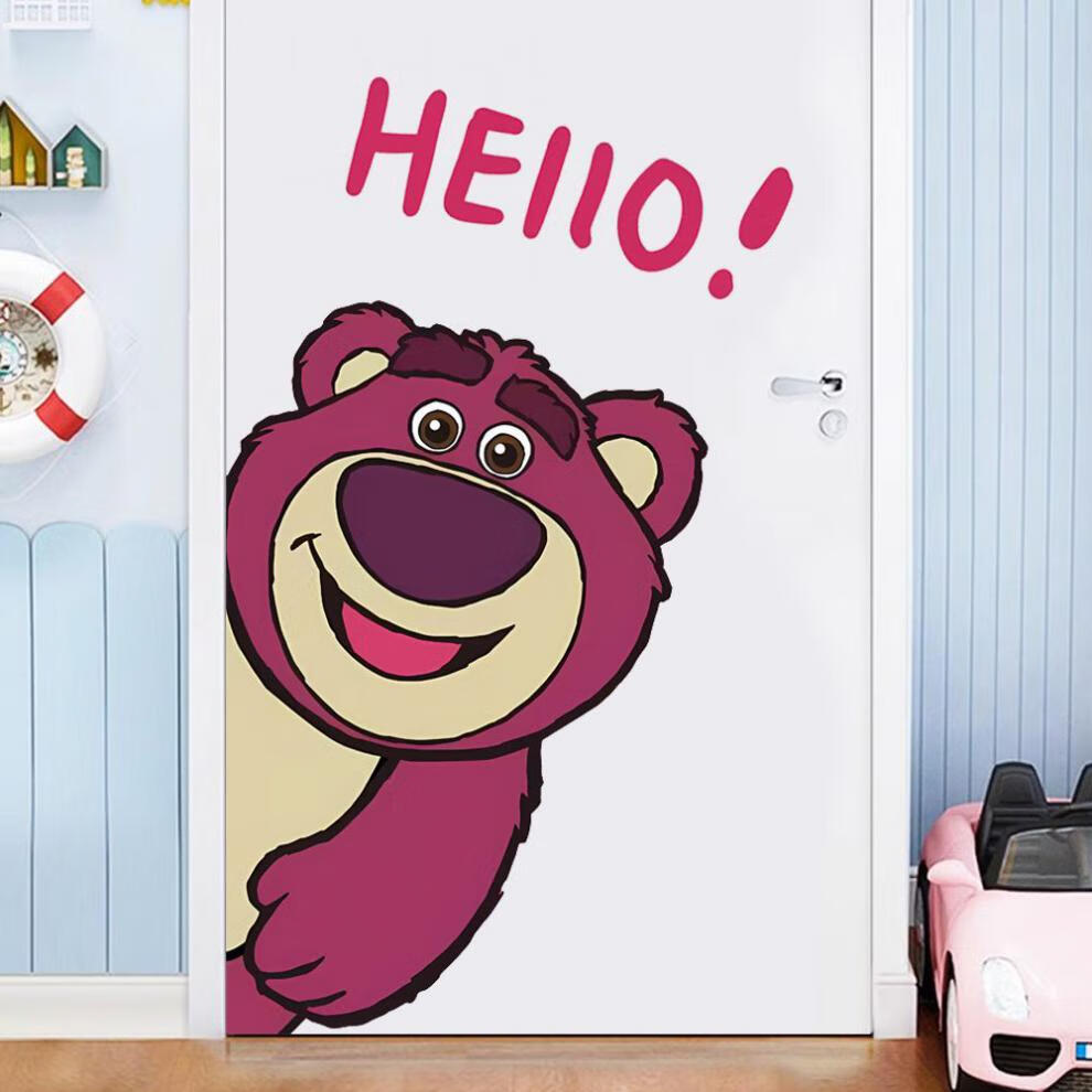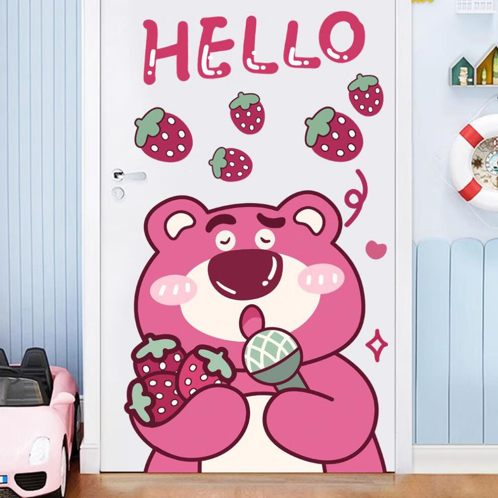 草莓熊卡通门贴儿童房间布置卧室装饰墙纸自粘墙贴画墙面衣柜贴纸 草莓熊门贴-左边 D795 中号-40x60
