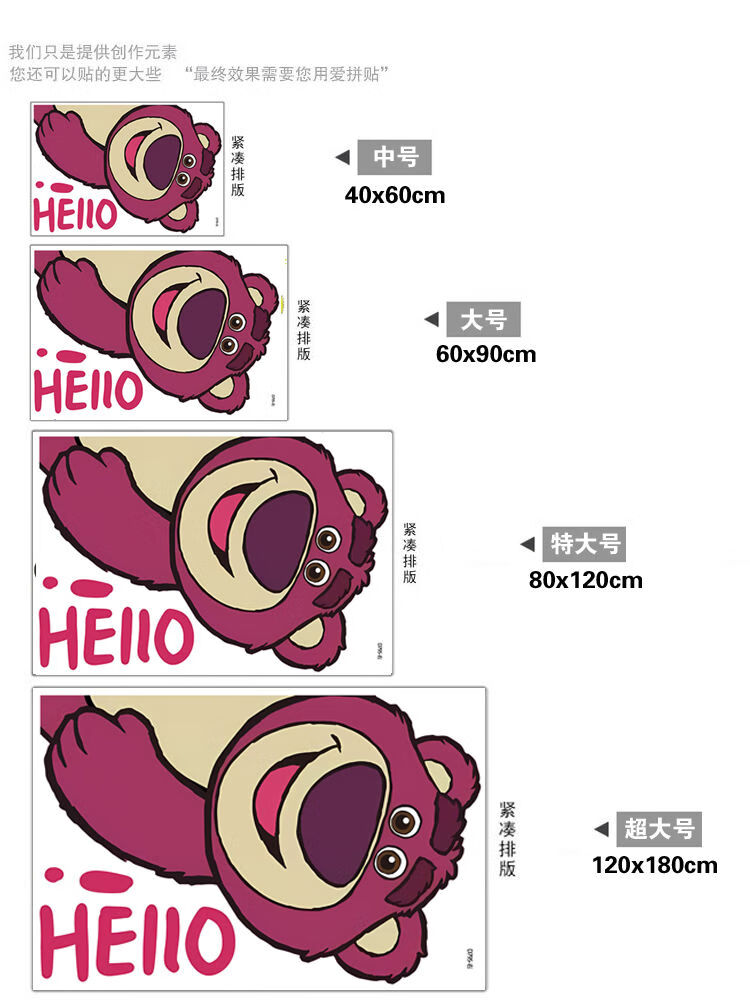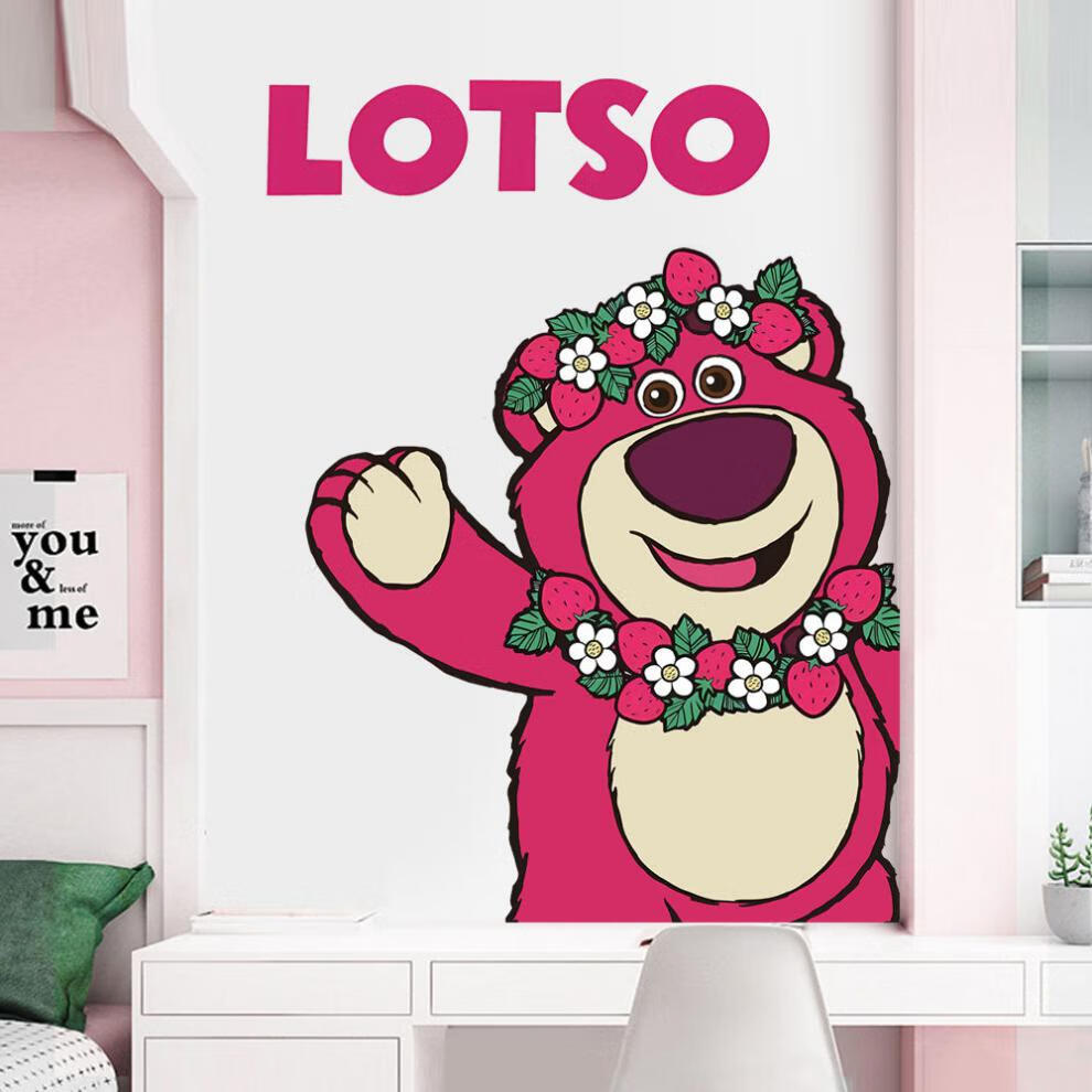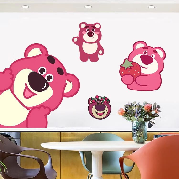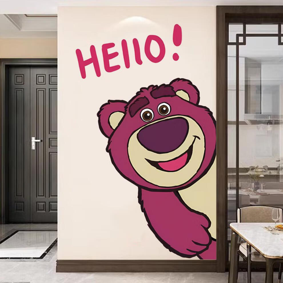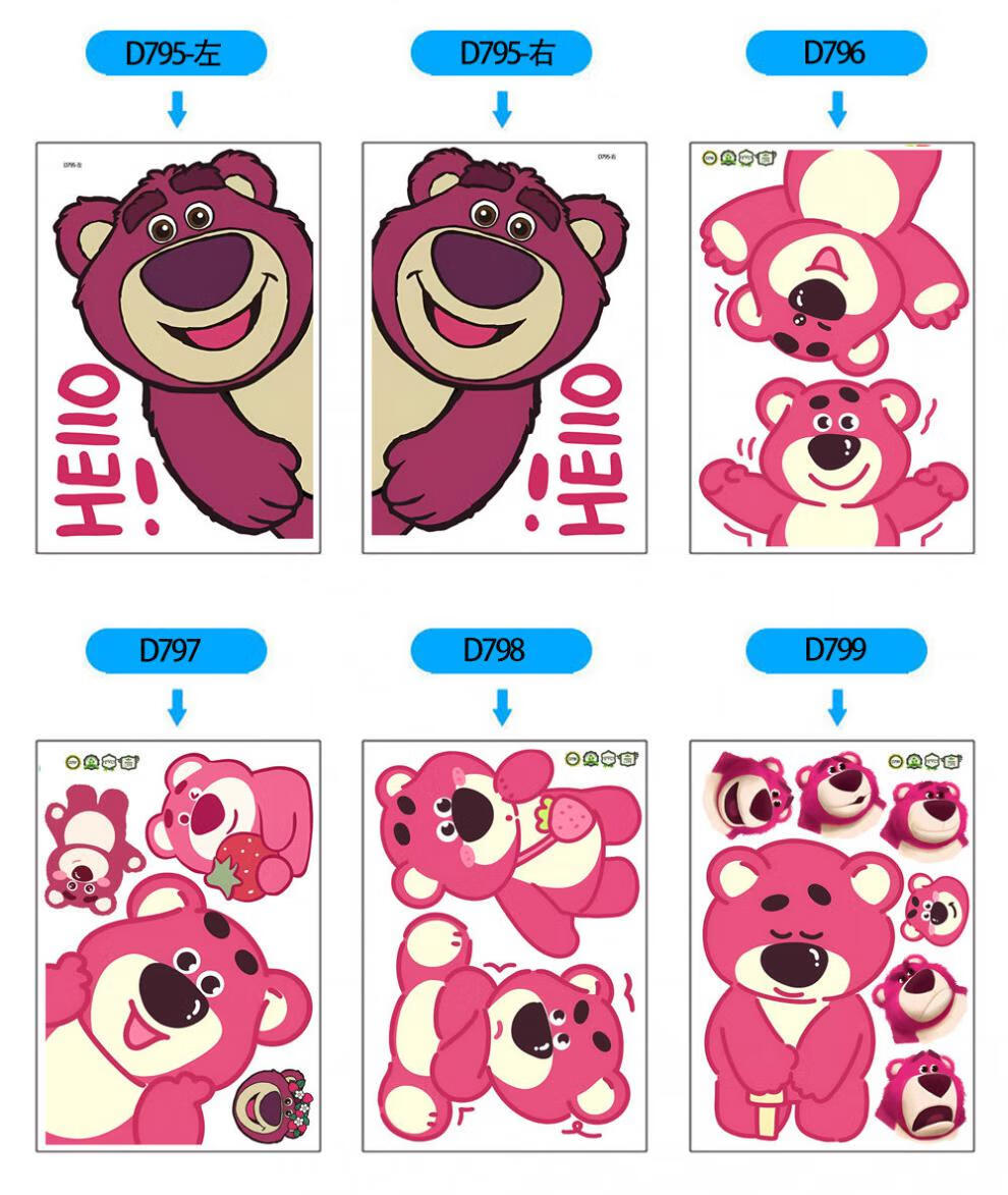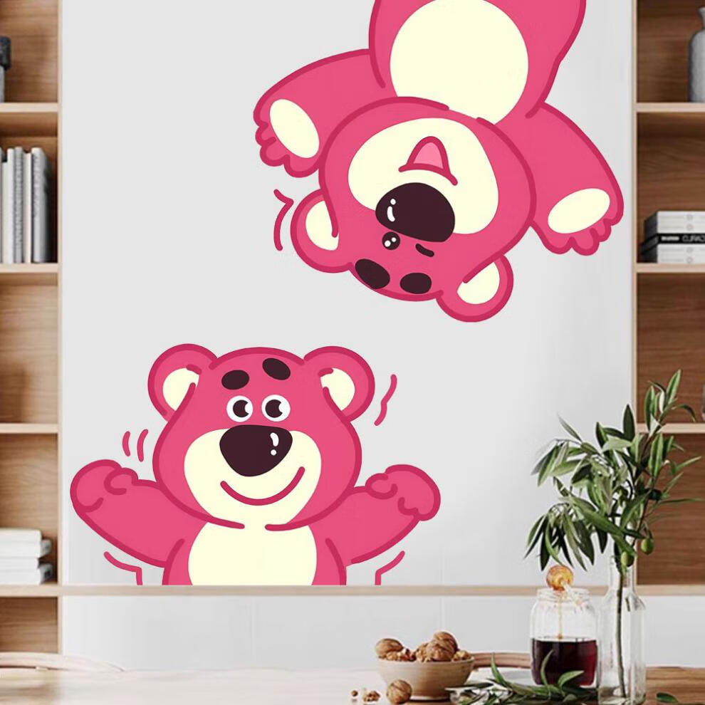 草莓熊卡通门贴儿童房间布置卧室装饰墙纸自粘墙贴画墙面衣柜贴纸 草莓熊门贴-左边 D795 中号-40x60