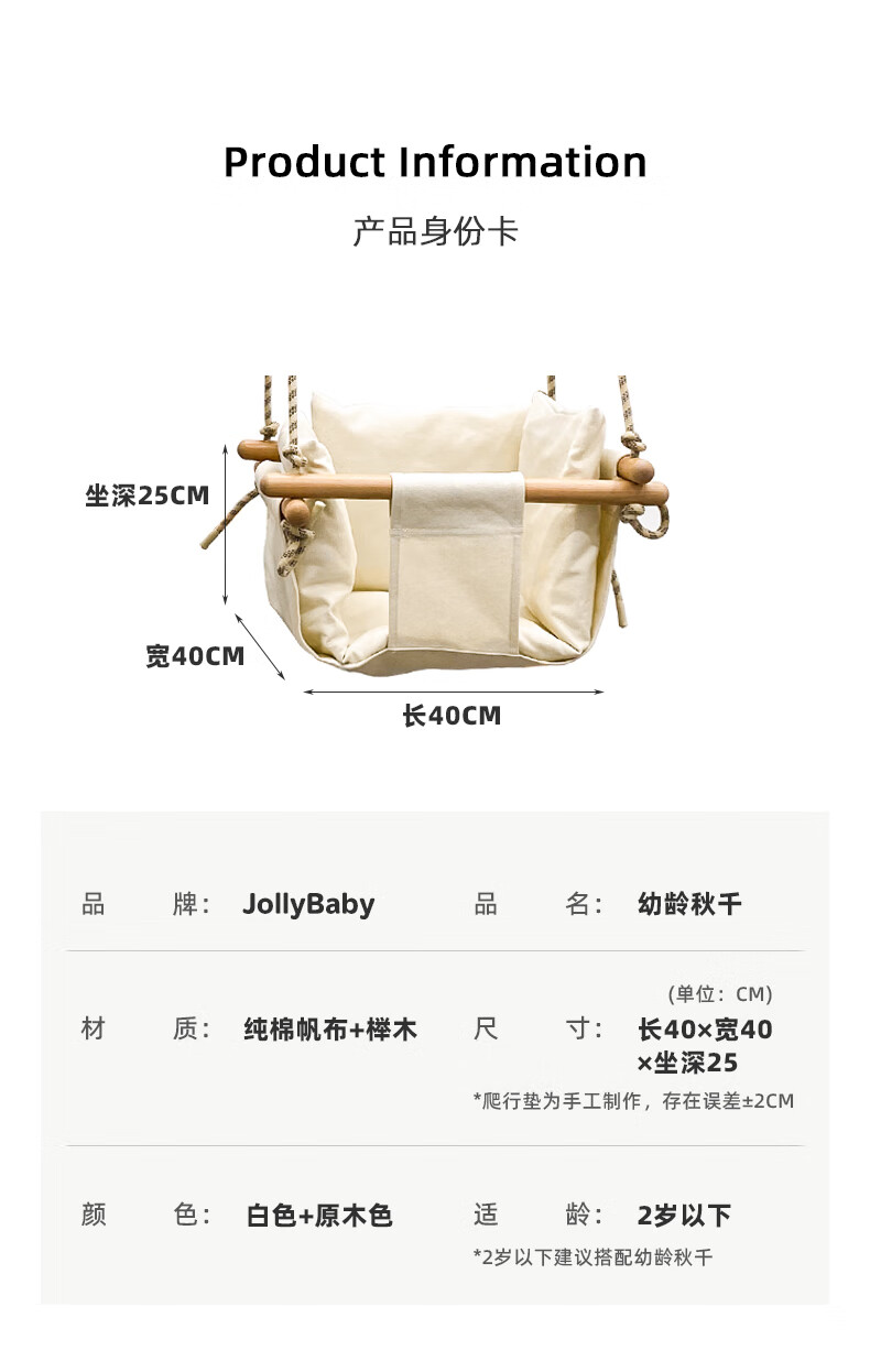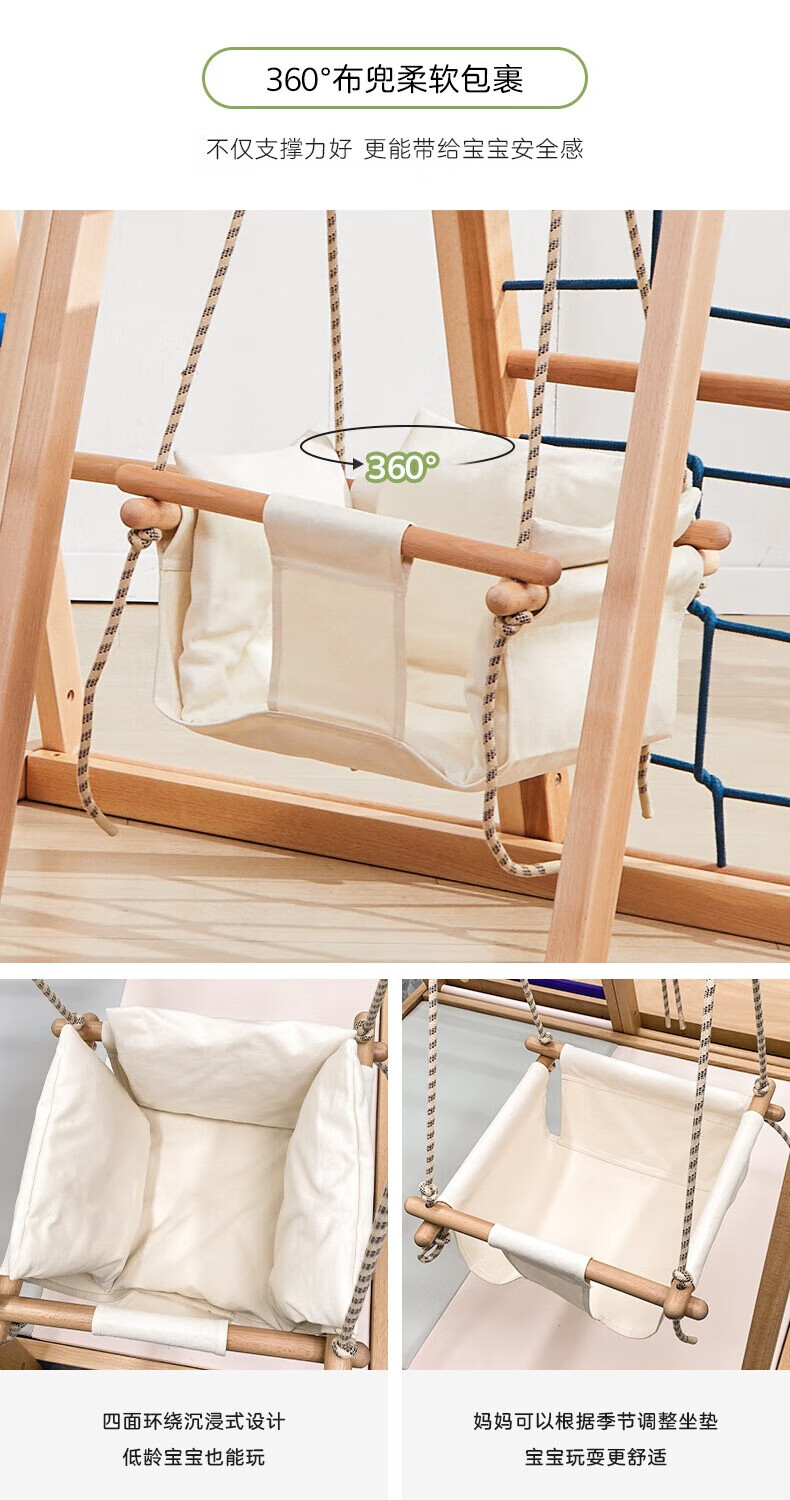 Jolly Baby婴儿秋千吊椅宝宝摇椅儿童布艺秋千室内小型吊篮荡秋千攀爬架专用 【常规款】幼龄秋千
