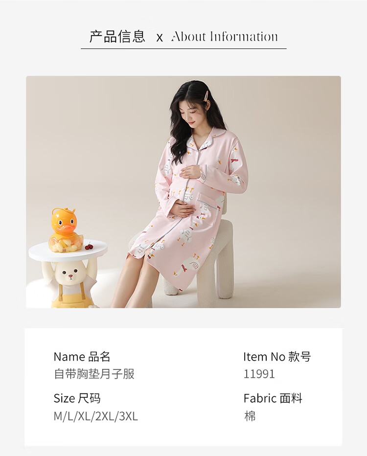 LangSha Confinement Clothes Pajamas with Breast Pads for Women Spring and Autumn Long Sleeve Cotton Nursing Postpartum Nursing Pajamas for Maternity AM-11991-DK1008 M