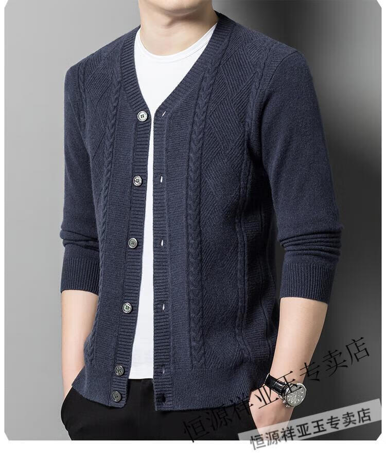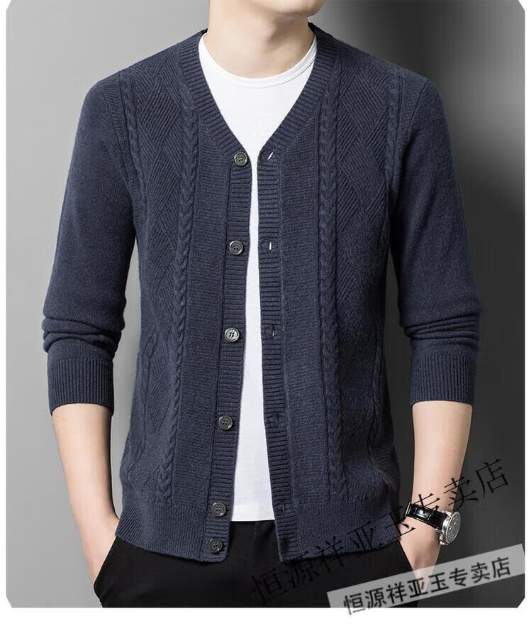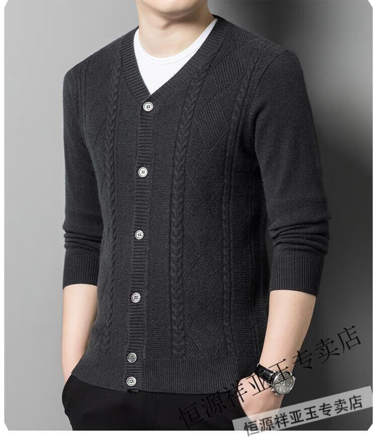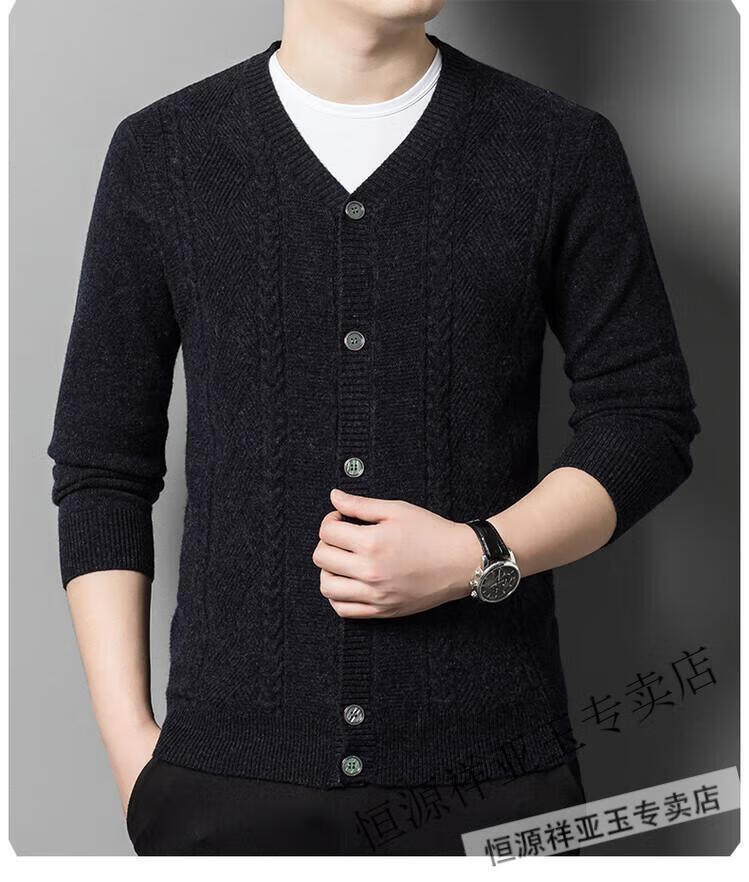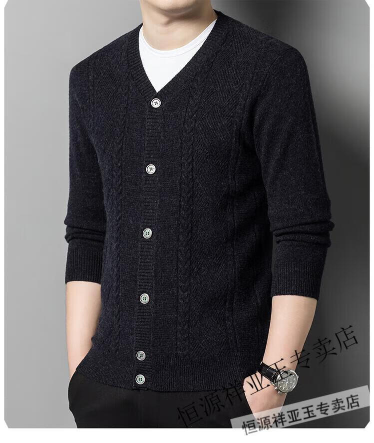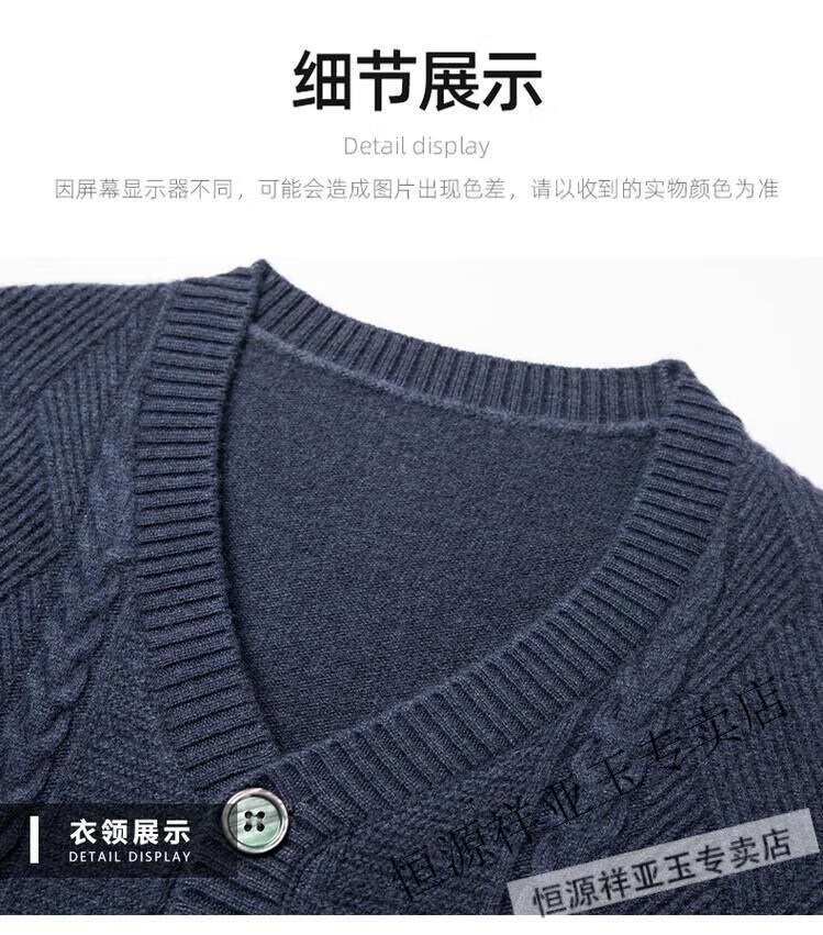 Hengyuanxiang Ordos Herren-Pullover aus reiner Wolle, lässig, V-Ausschnitt, Winter, warm, Strickjacke, Trend, Dunkelgrau, M 170