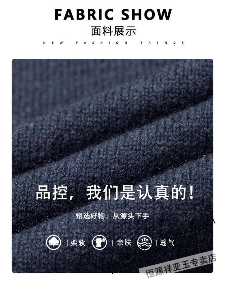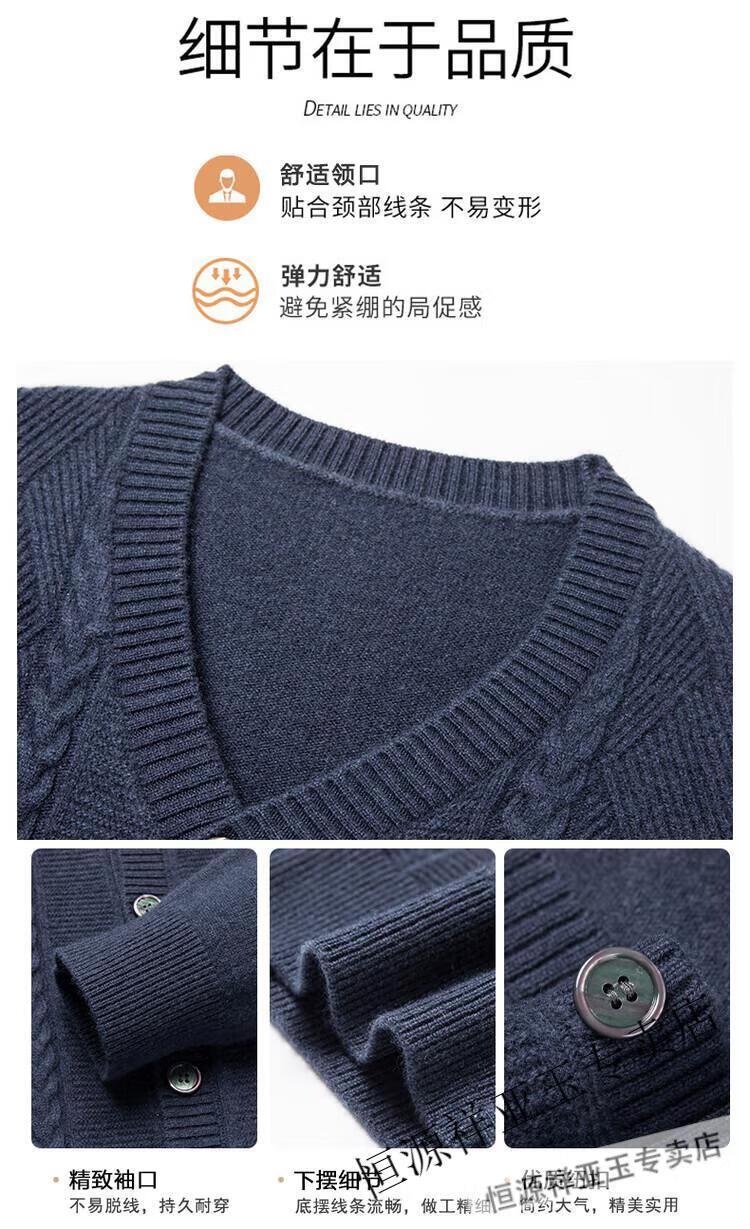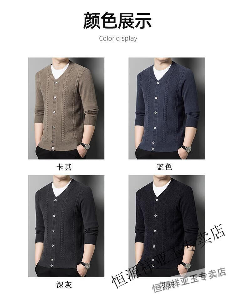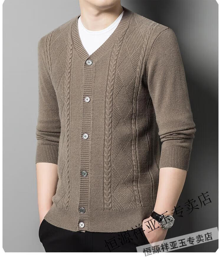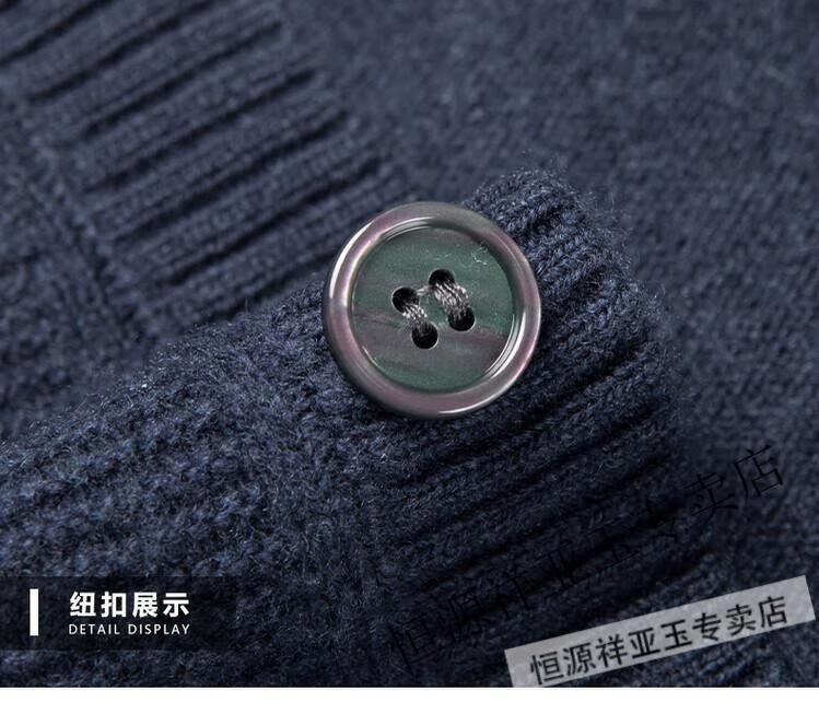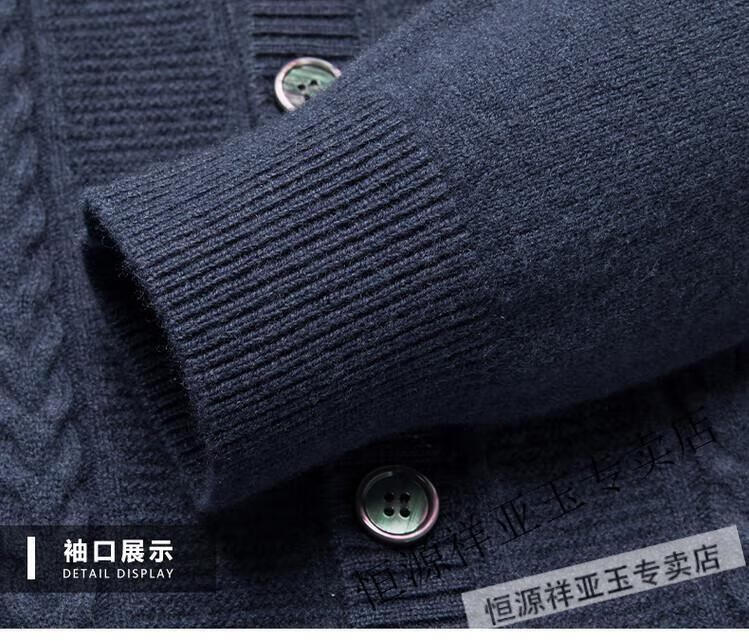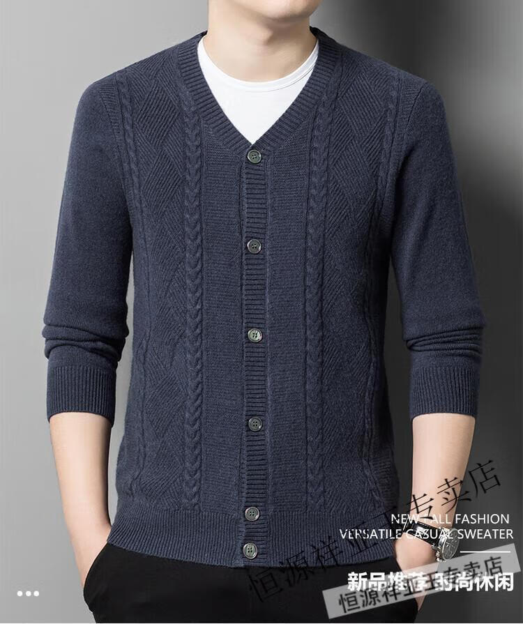 Hengyuanxiang Ordos Herren-Pullover aus reiner Wolle, lässig, V-Ausschnitt, Winter, warm, Strickjacke, Trend, Dunkelgrau, M 170
