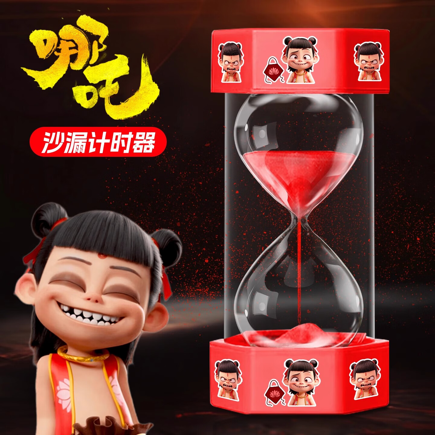 Nezha Aobing Temporizador de Reloj de Arena Plástico anticaída para niños Estudiantes de Escuela Primaria Botella de Arena Movediza de Escritorio Adorno Creativo Regalo para Mujer Reloj de Arena Nezha-5 Minutos-Rojo