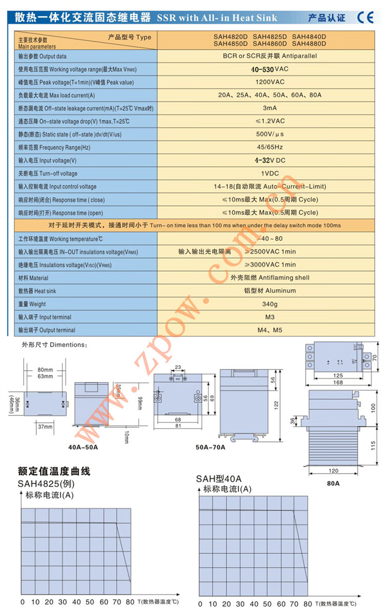 Huili De GOLD single-phase AC solid state relay SAH (G3PA) 4840D 4850D 4860D 4880D SAH (G3PA) 4840D 40A/40-530