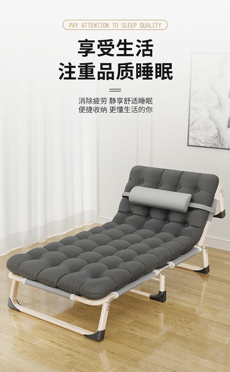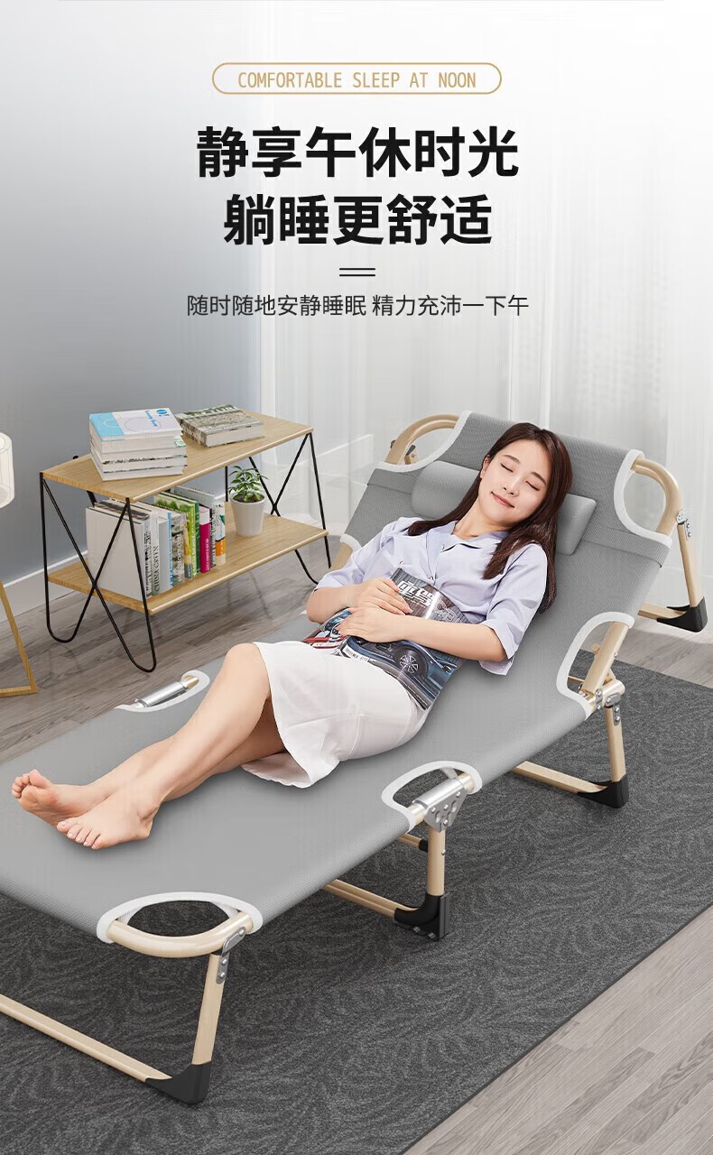 Qingjue Folding Sheet Single Nap Bed Folding Recliner Home Office Nap Bed Simple Camp Bed Accompanying Bed Hot Sale Round Tube Reinforcement-170*56