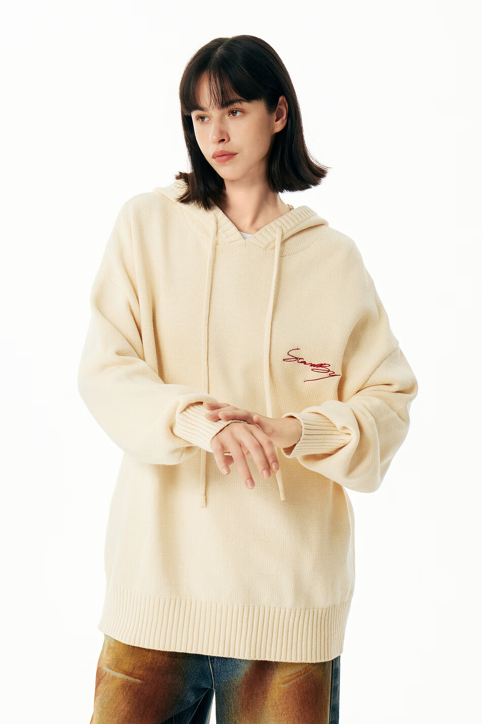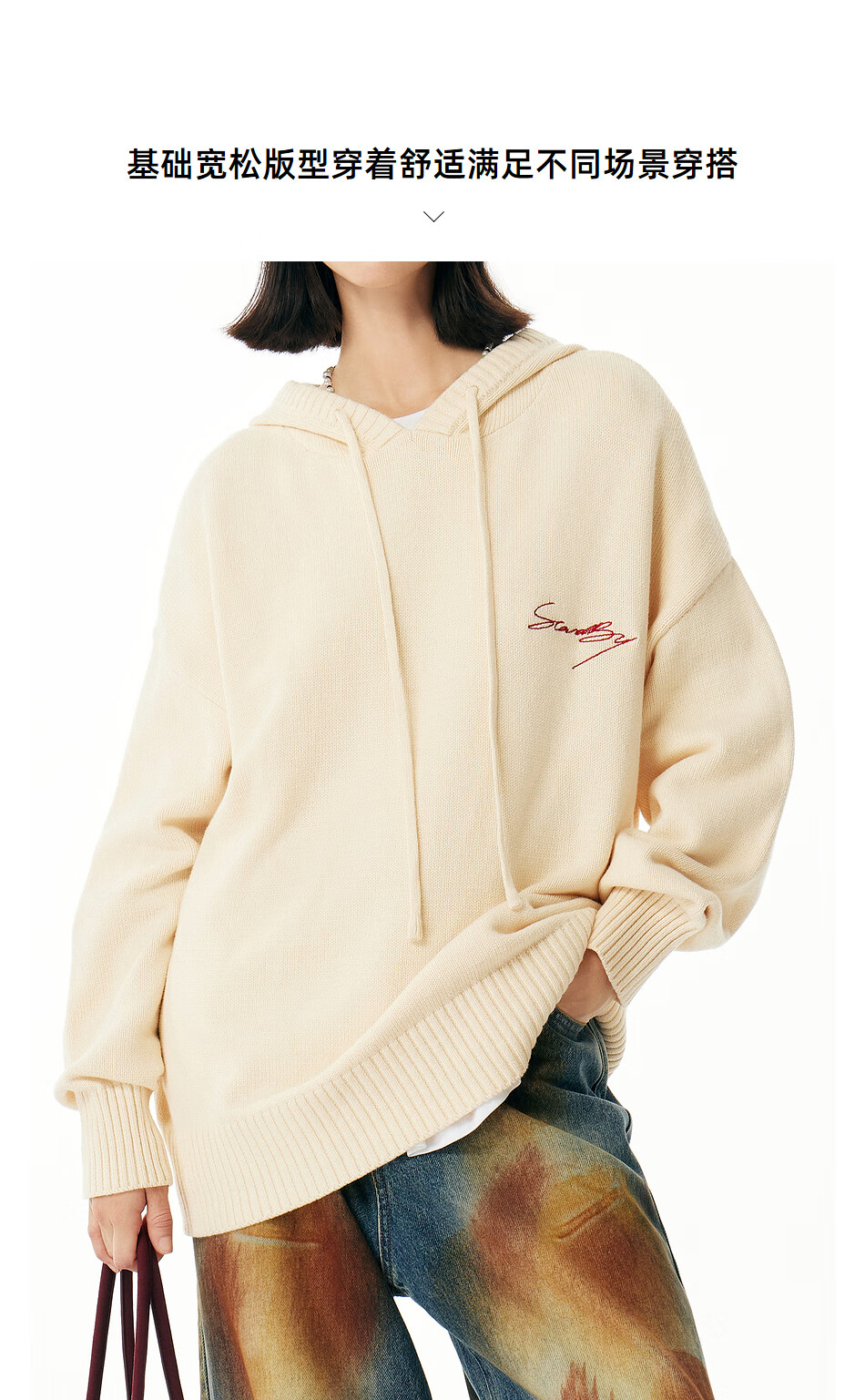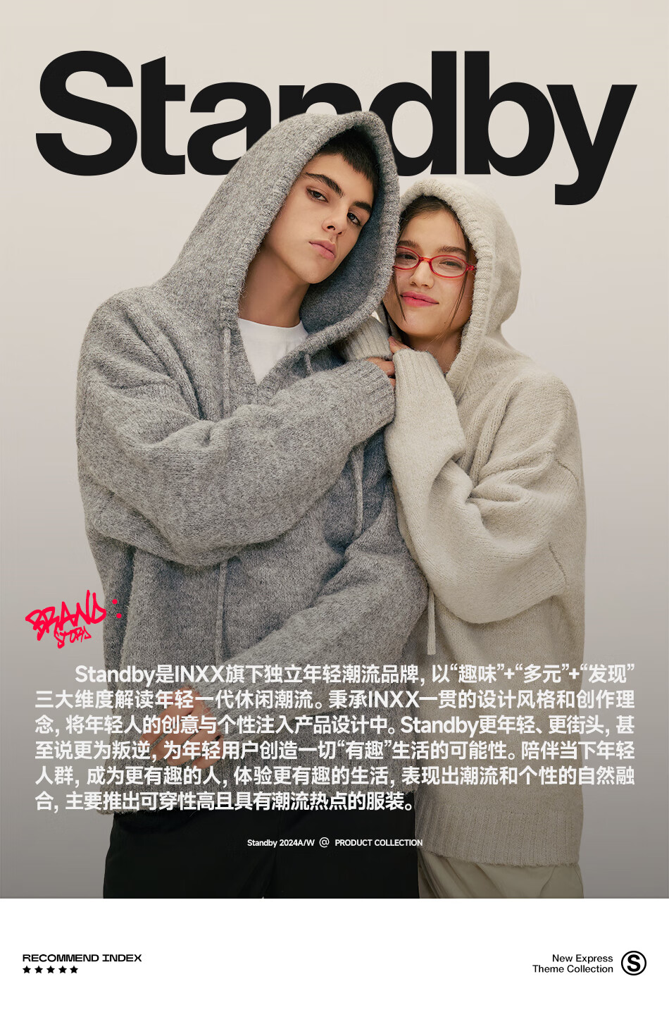 英克斯(inxx)Standby 潮牌连帽花体LOGO刺绣连帽针织衫男复古宽松套头毛衣情侣 米白色 L