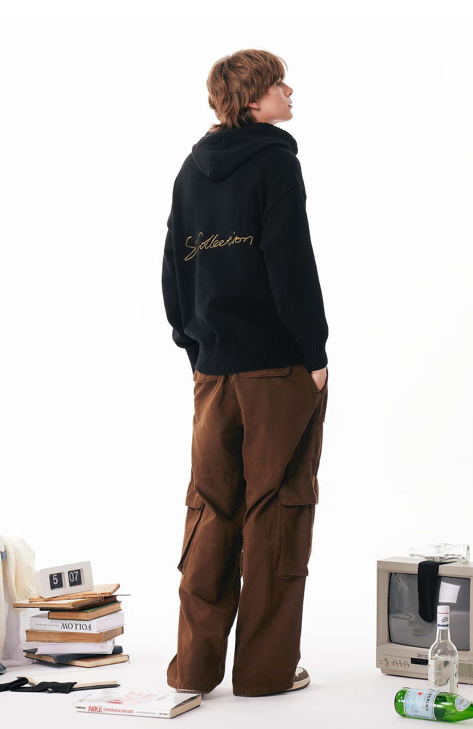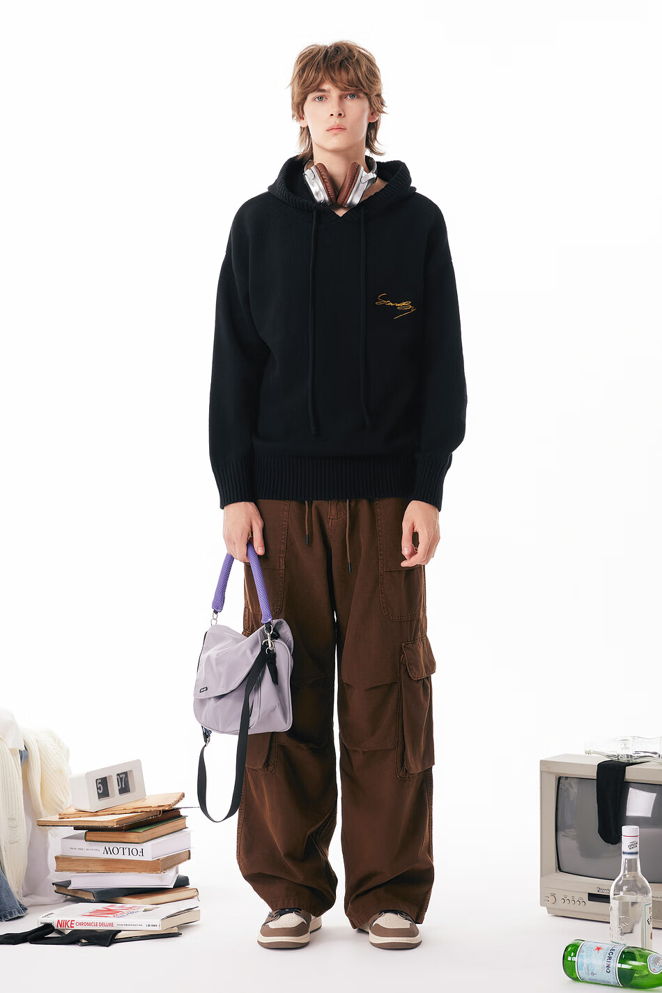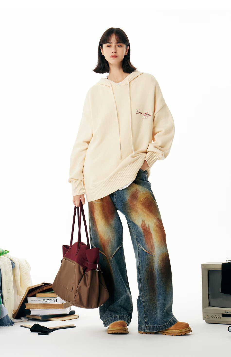 英克斯(inxx)Standby 潮牌连帽花体LOGO刺绣连帽针织衫男复古宽松套头毛衣情侣 米白色 L