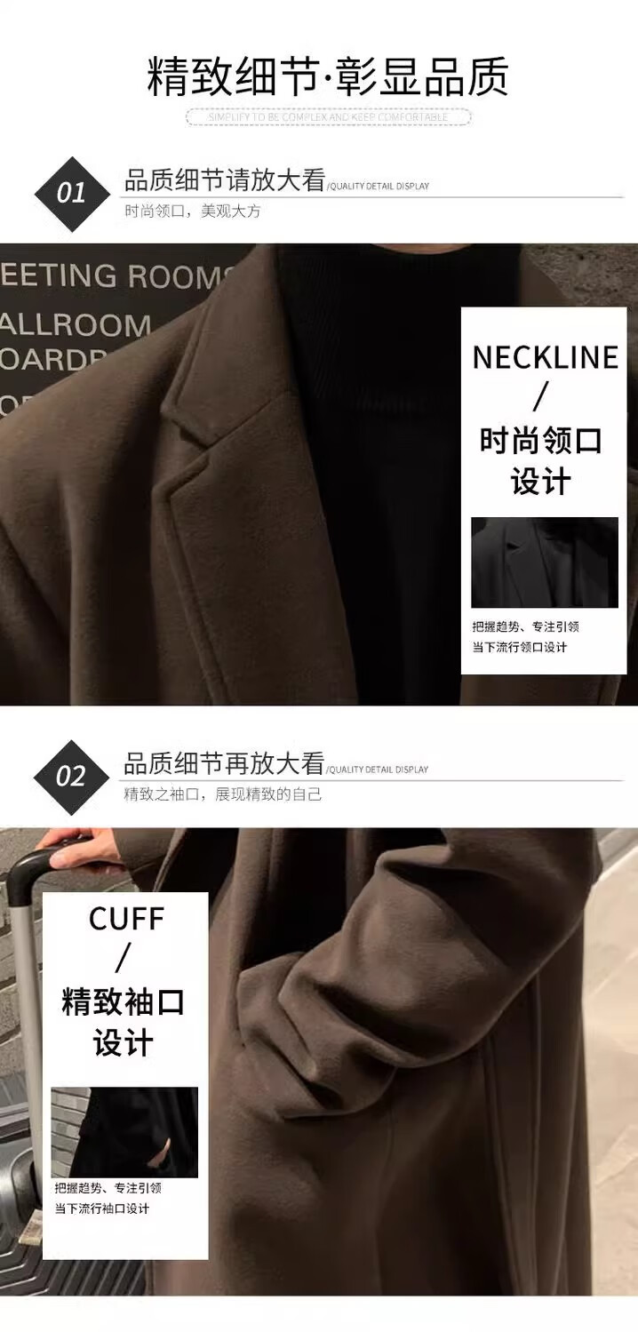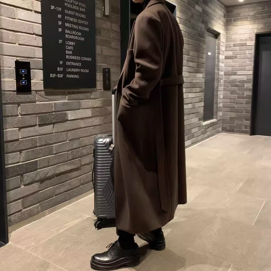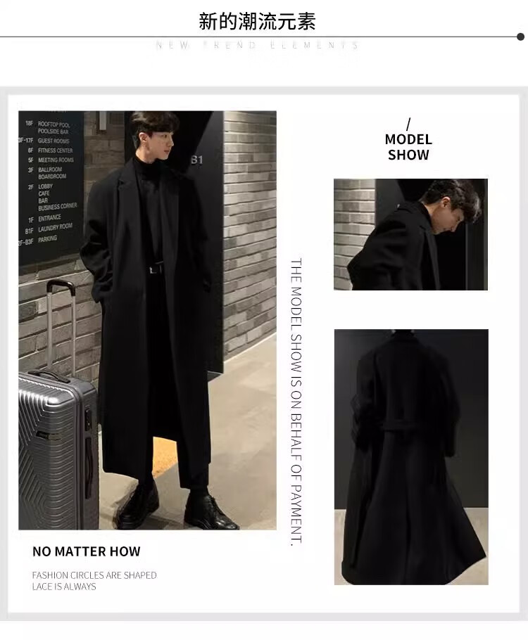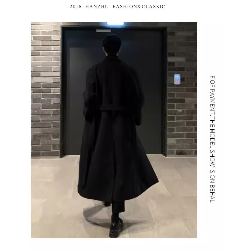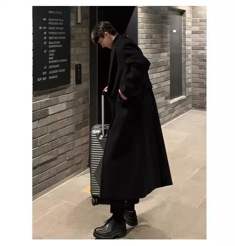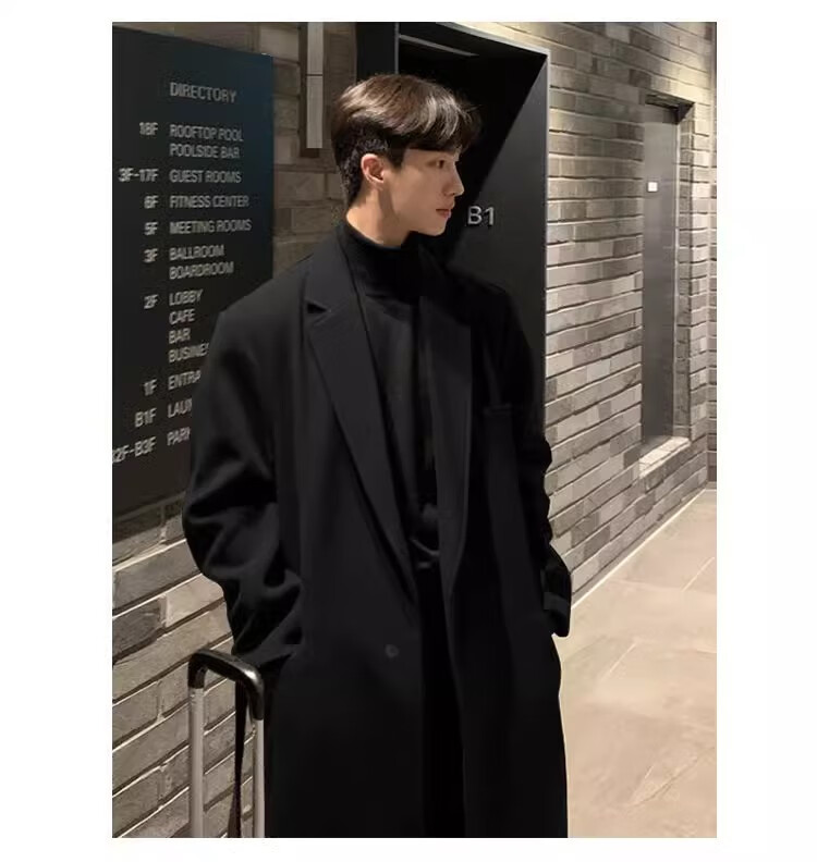 仓石一树轻奢潮牌100%高支双面羊毛大衣男中长款2026秋冬新款韩版毛呢外套 黑色 L