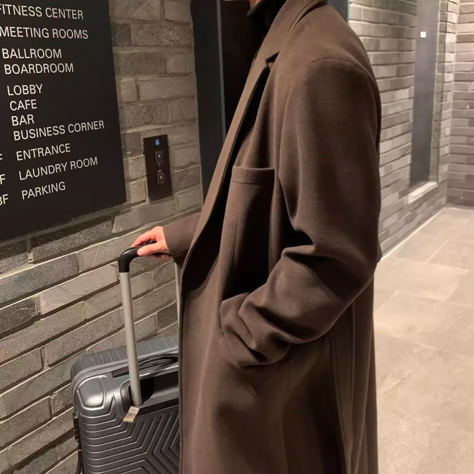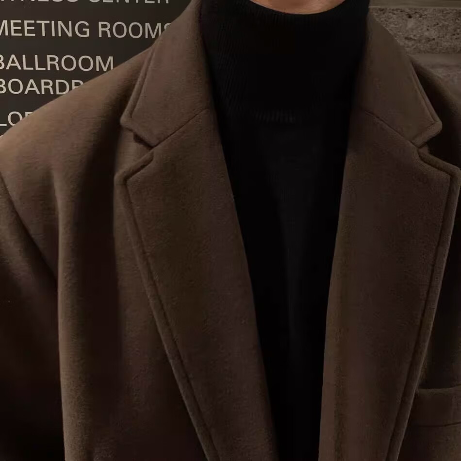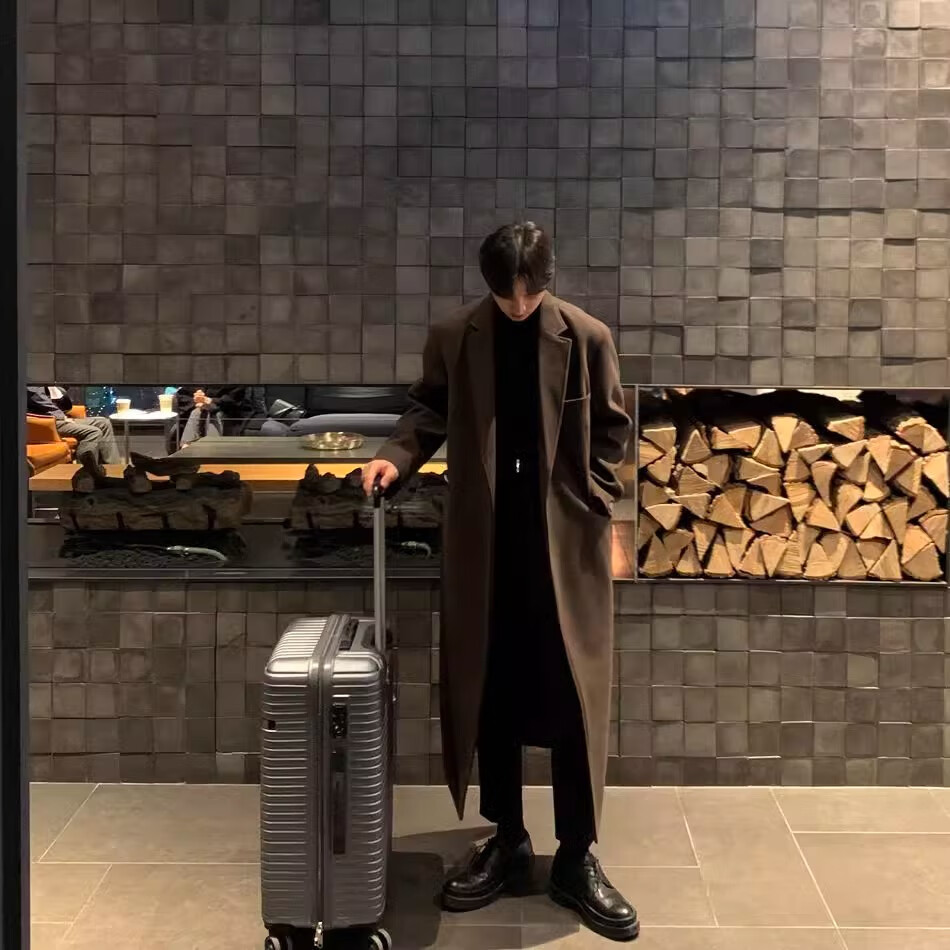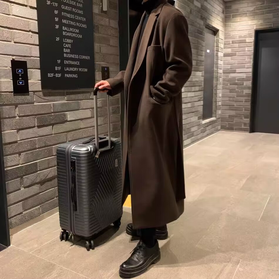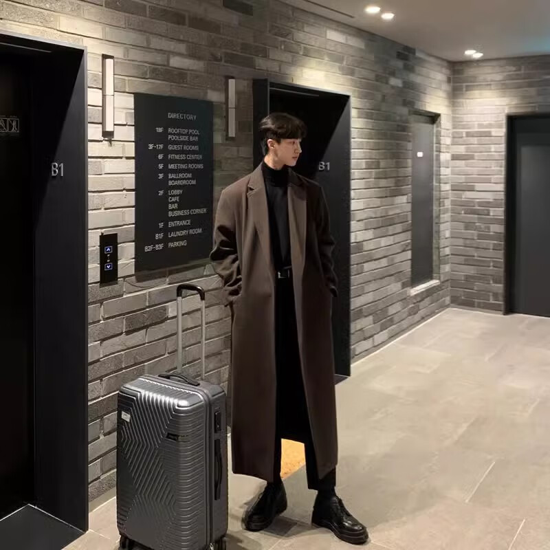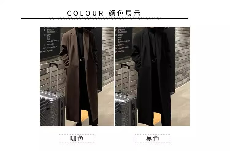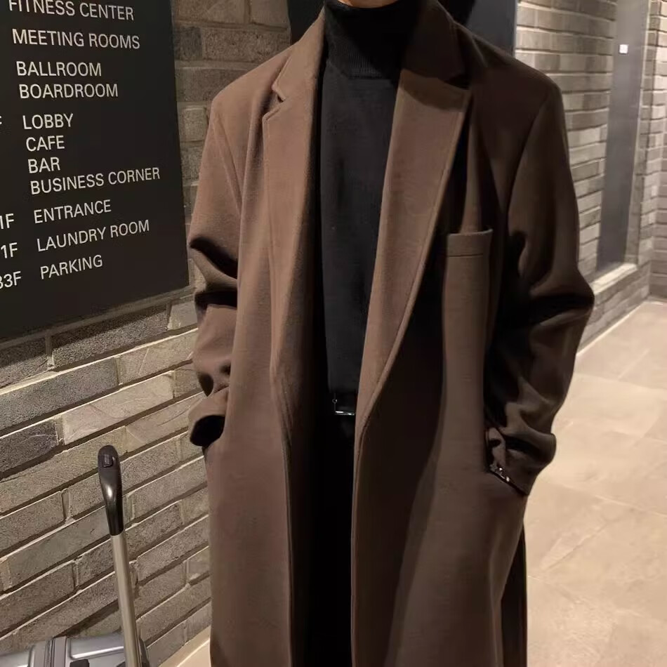 仓石一树轻奢潮牌100%高支双面羊毛大衣男中长款2026秋冬新款韩版毛呢外套 黑色 L