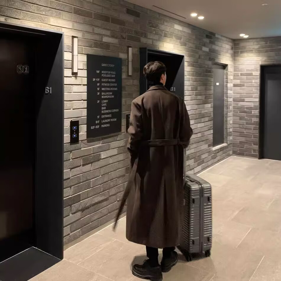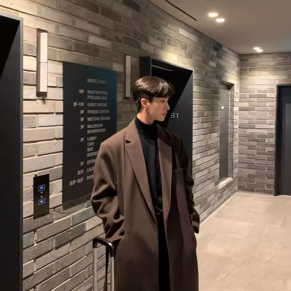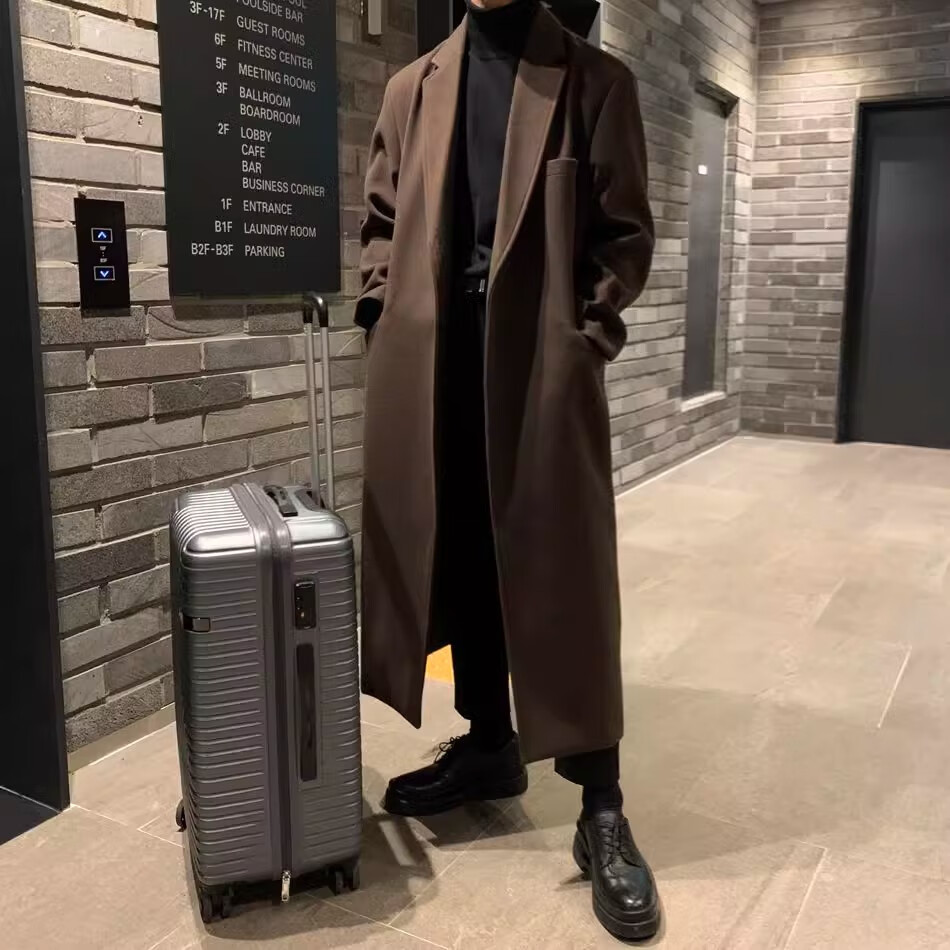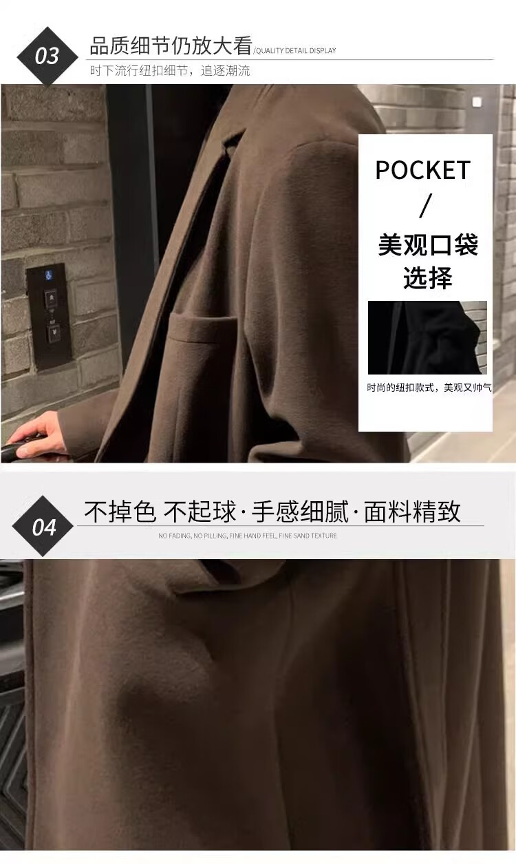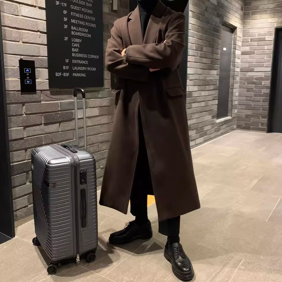 仓石一树轻奢潮牌100%高支双面羊毛大衣男中长款2026秋冬新款韩版毛呢外套 黑色 L