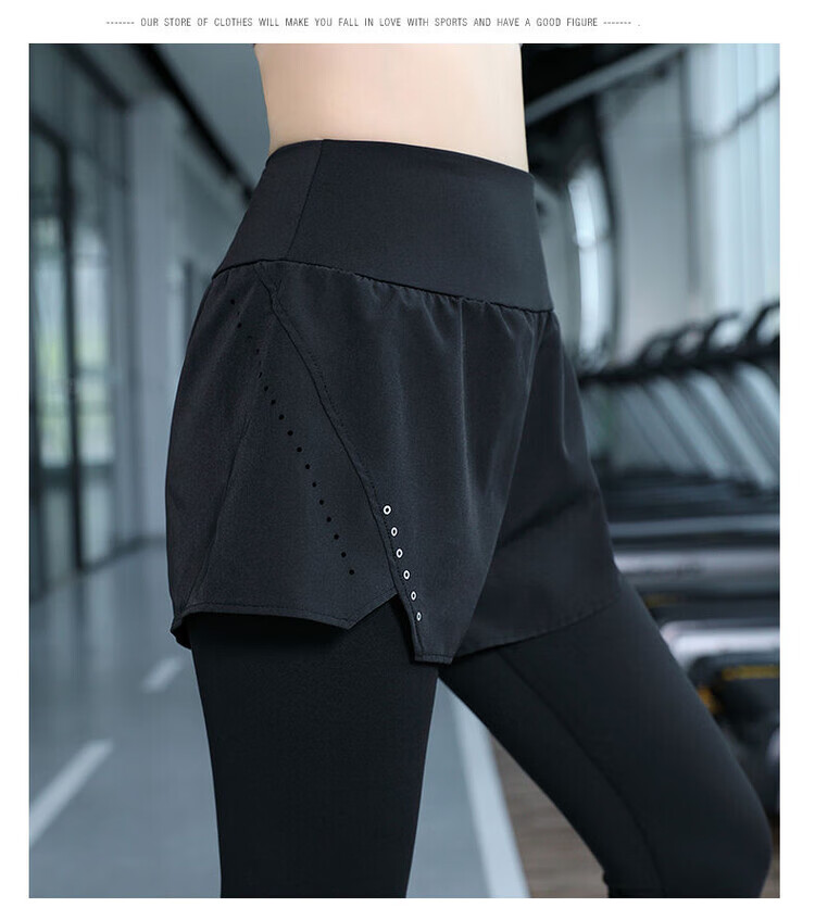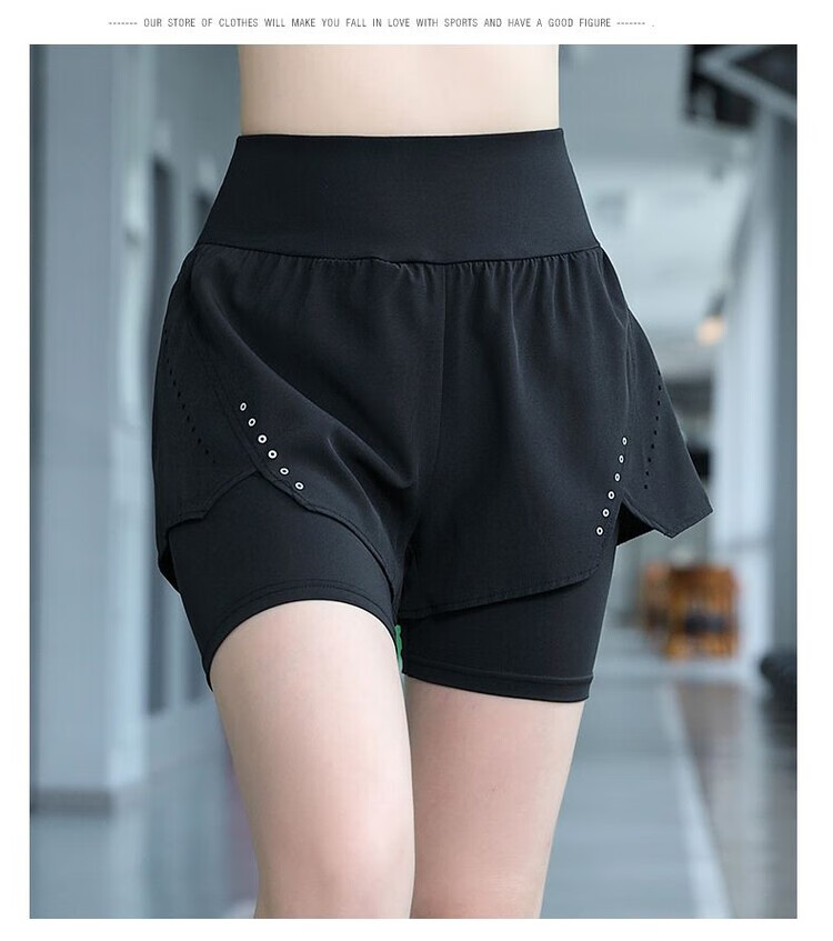 仙僖俫女士骑行裤假两件高腰大码防走光瑜伽短裤宽松薄款健身跑步运动 黑色 五·分裤 L