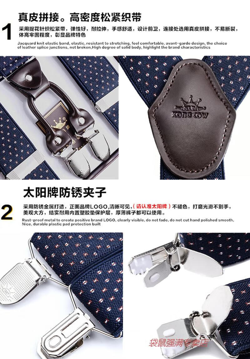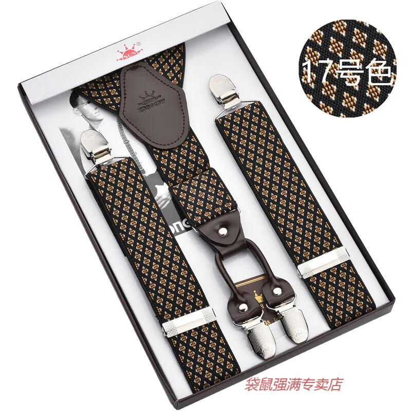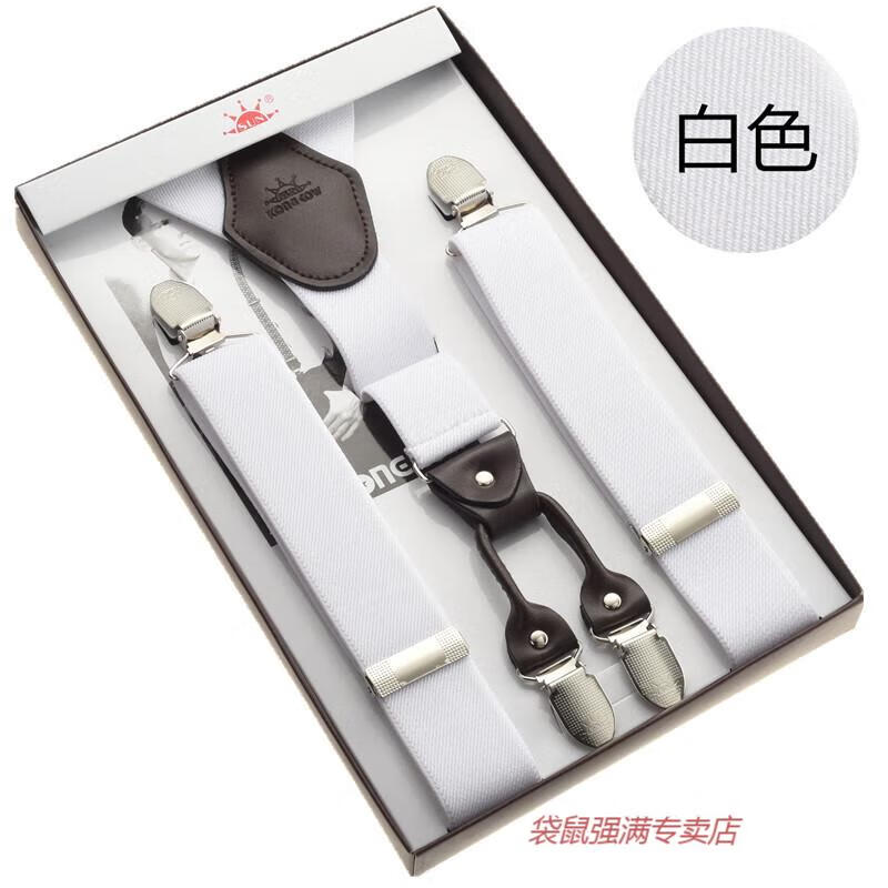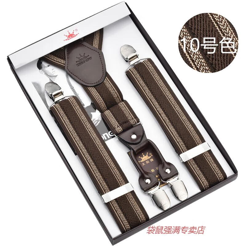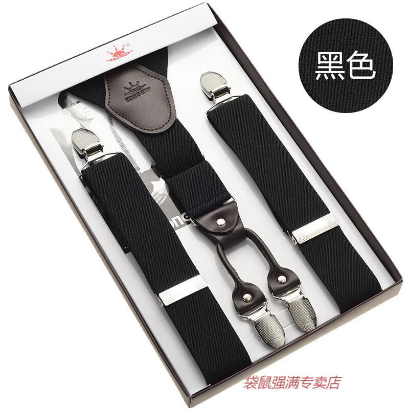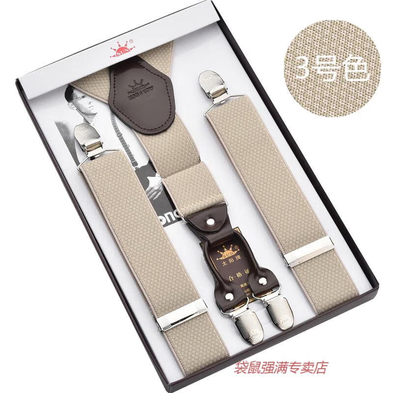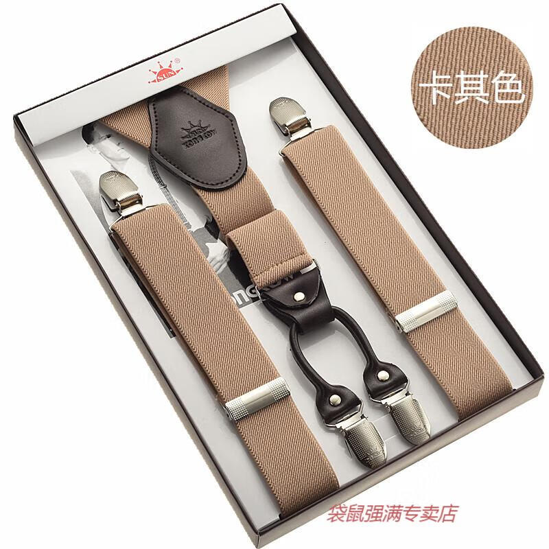 袋鼠男士成人背带男款西裤吊带西装衬衫背带夹吊裤带男式胖人松紧防滑 四夹3号色