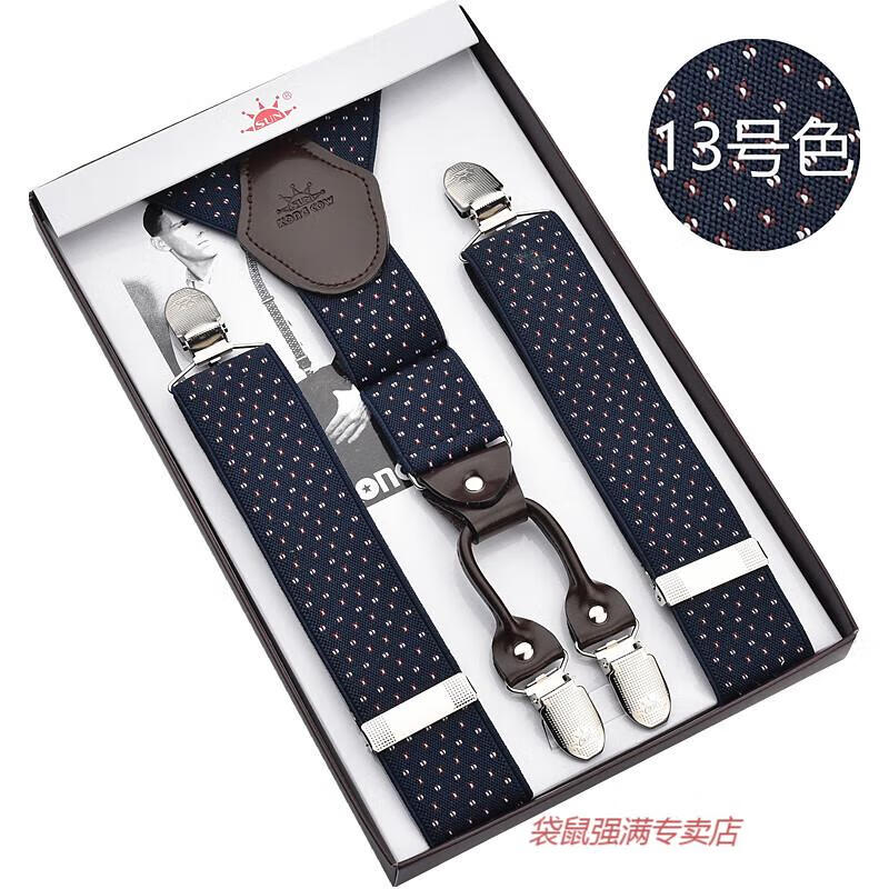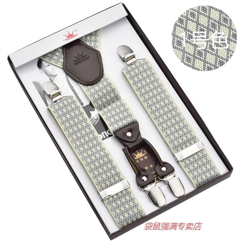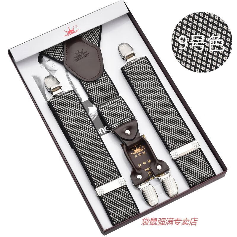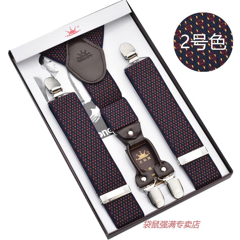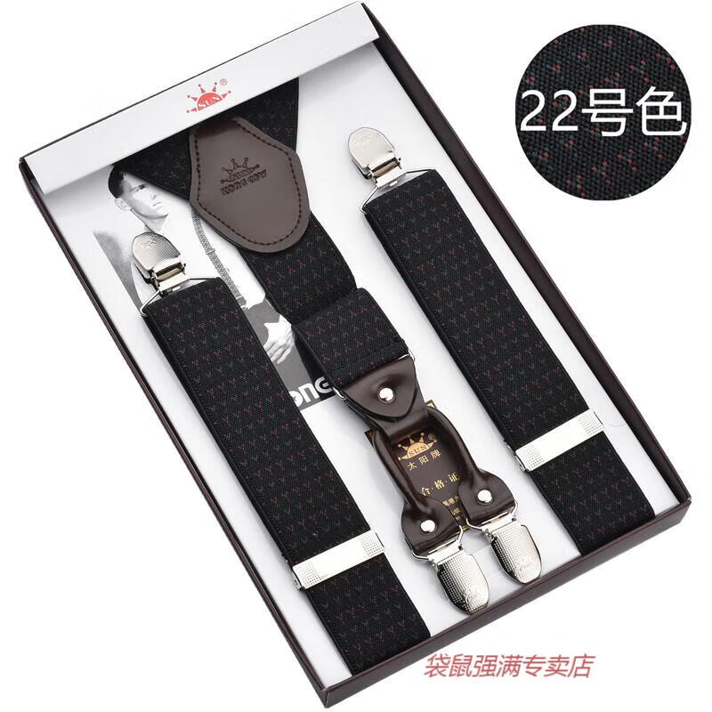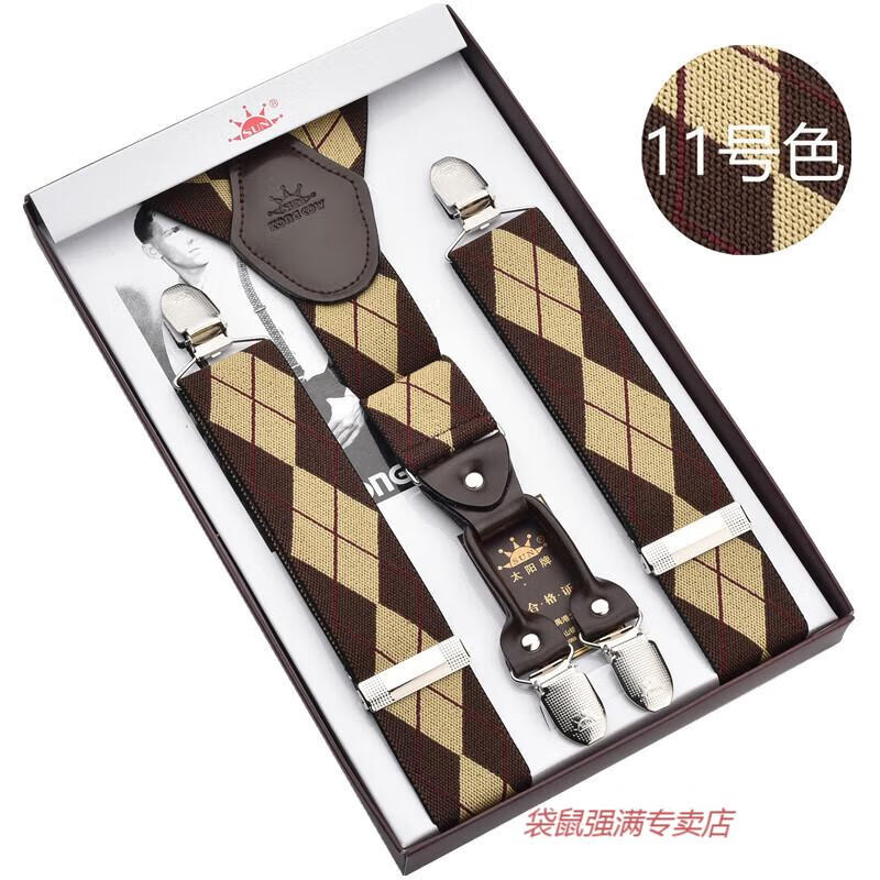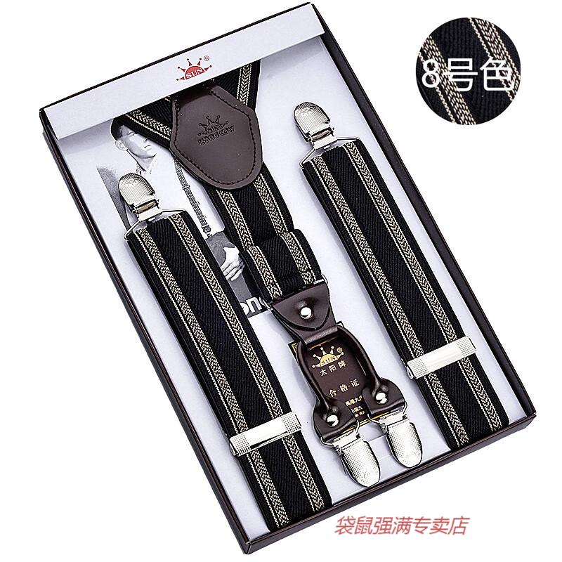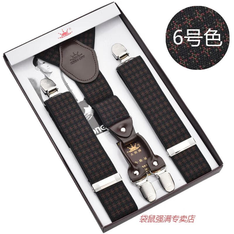 袋鼠男士成人背带男款西裤吊带西装衬衫背带夹吊裤带男式胖人松紧防滑 四夹3号色