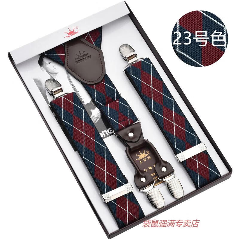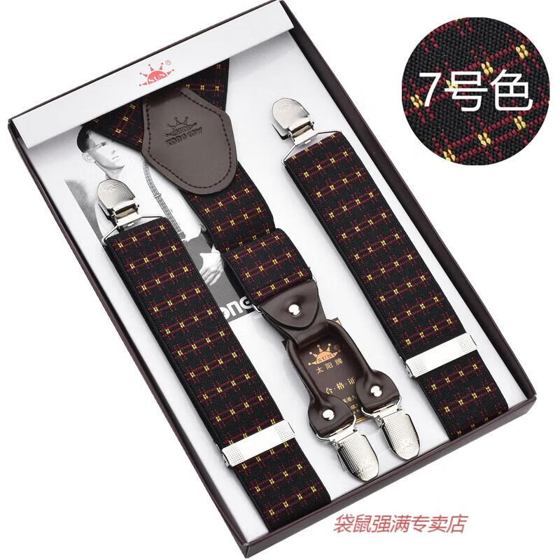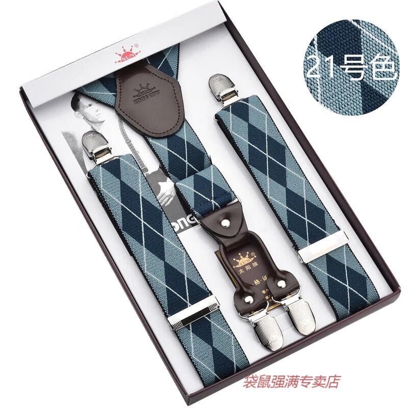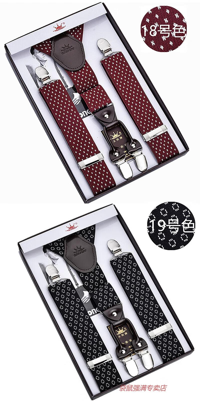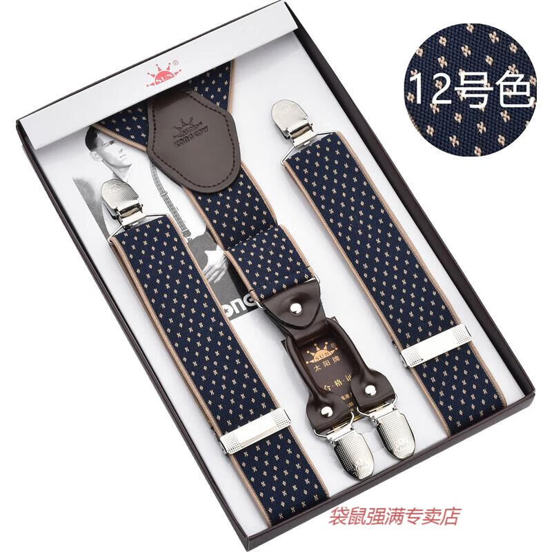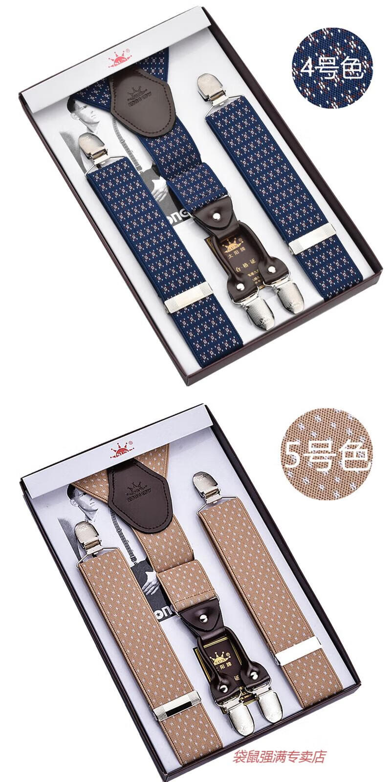 袋鼠男士成人背带男款西裤吊带西装衬衫背带夹吊裤带男式胖人松紧防滑 四夹3号色