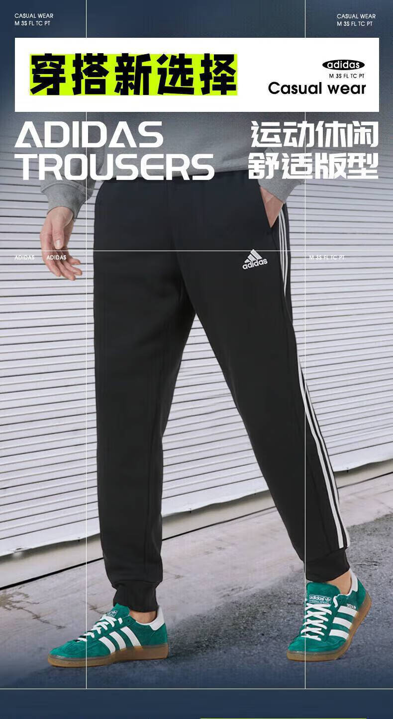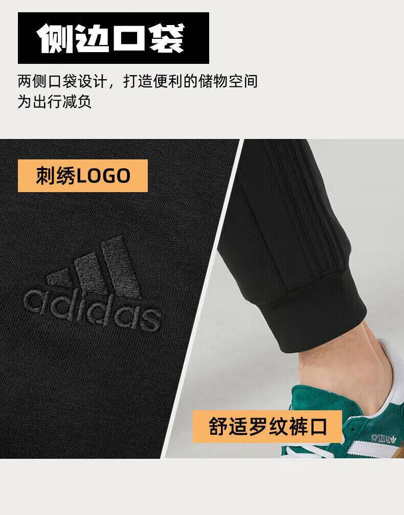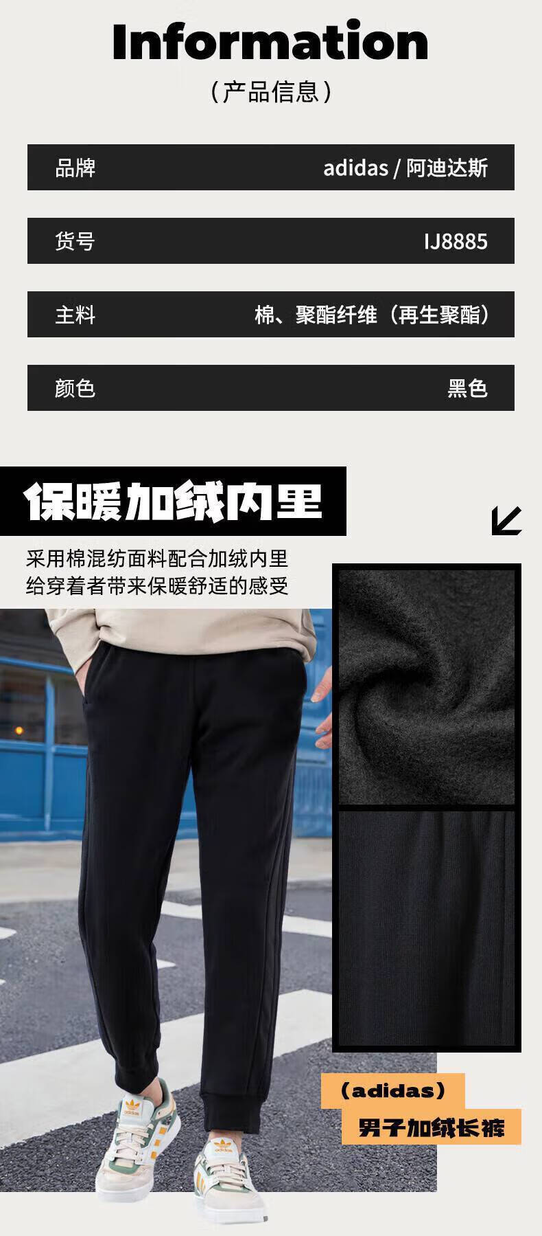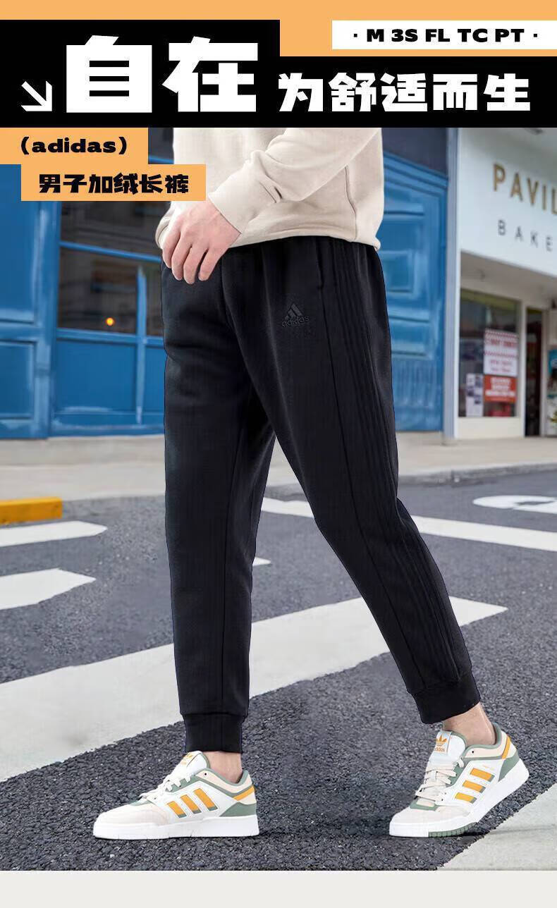阿迪达斯(adidas)男裤运动裤子男 2025冬季新款休闲裤加绒保暖耐磨透气 GK9273/针织直筒/白标 2XL
