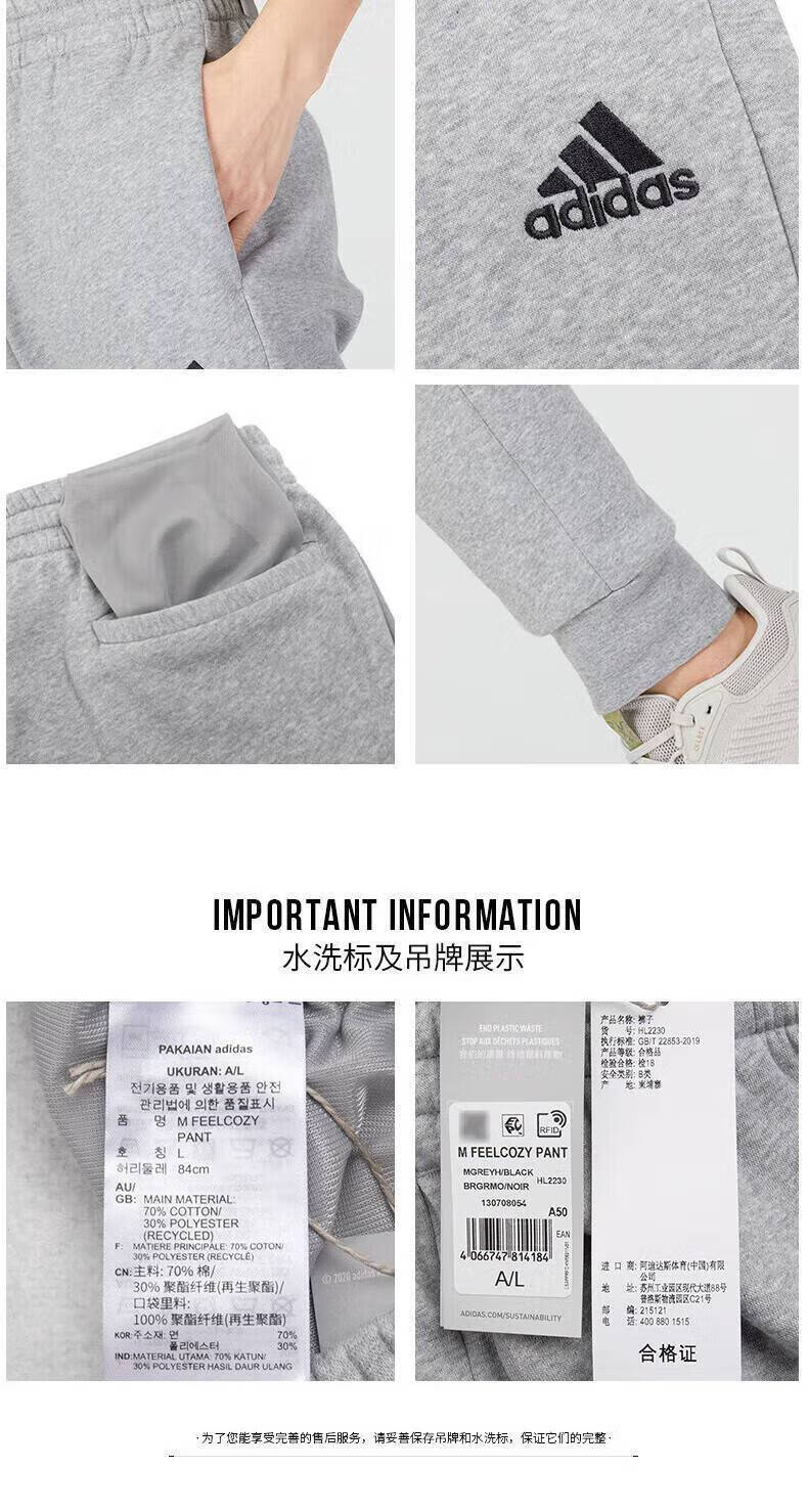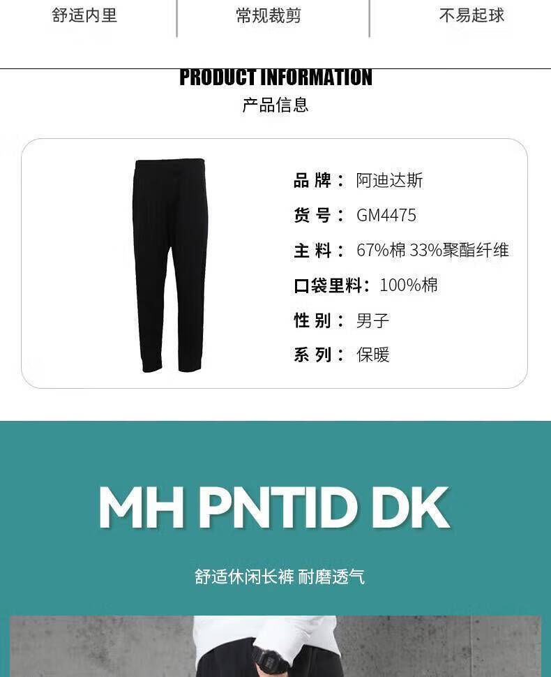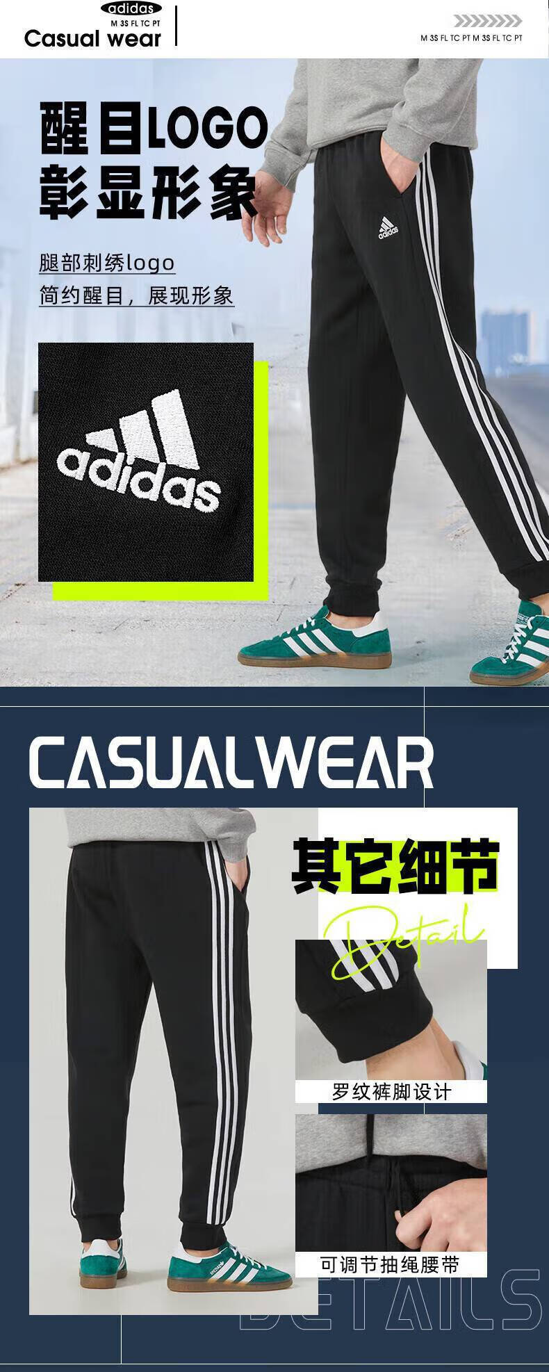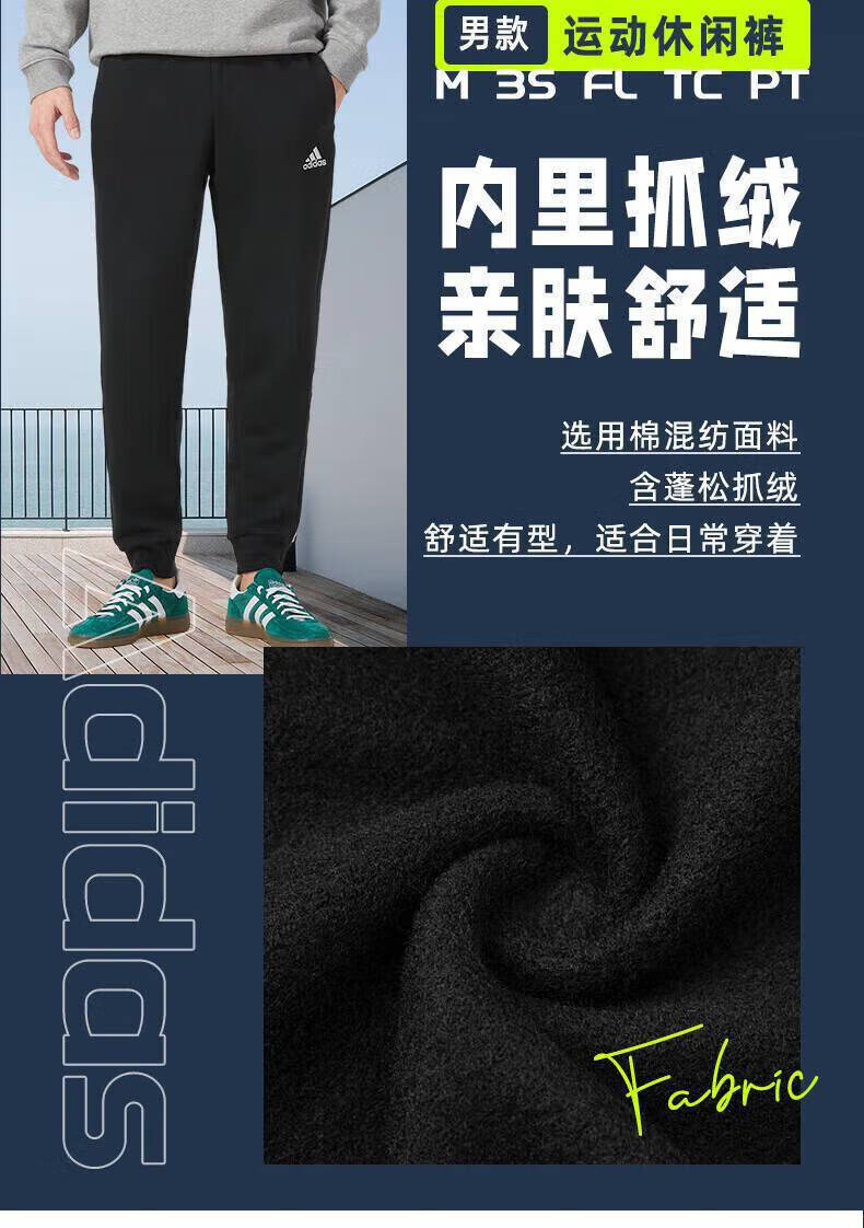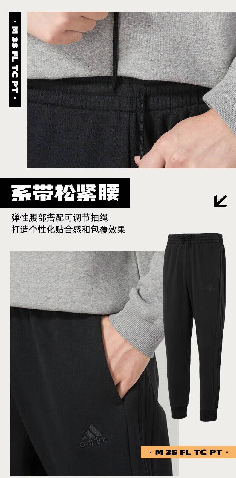 阿迪达斯(adidas)男裤运动裤子男 2025冬季新款休闲裤加绒保暖耐磨透气 GK9273/针织直筒/白标 2XL