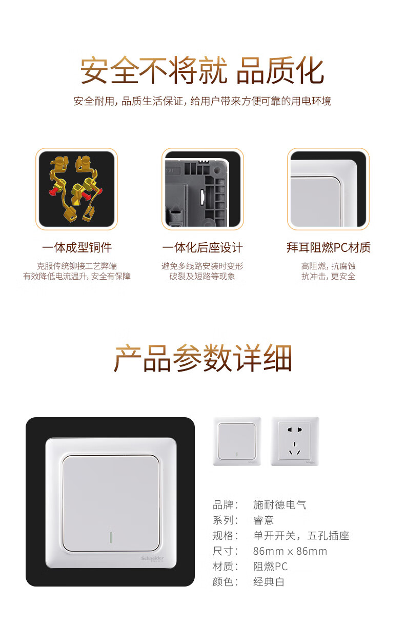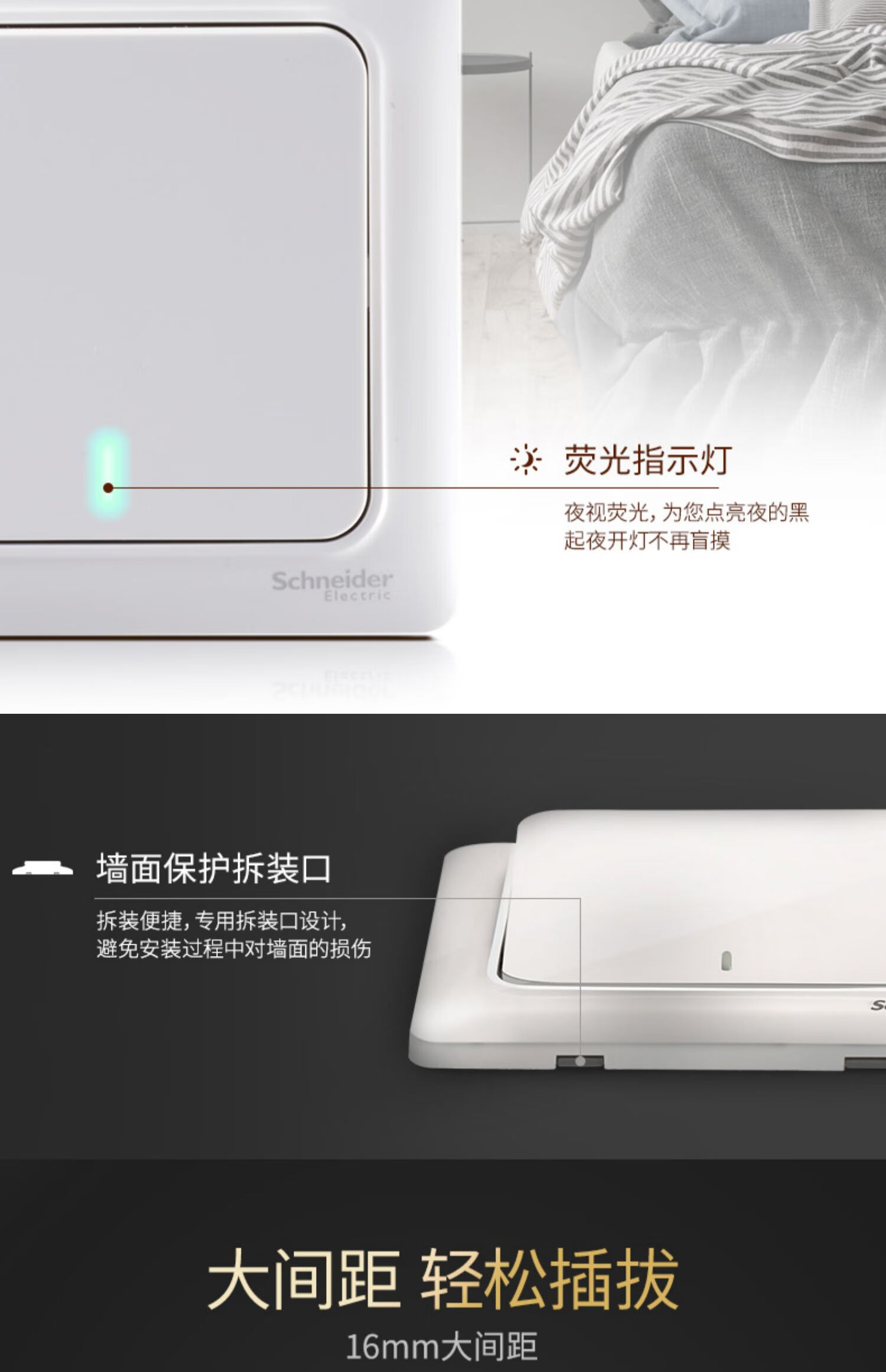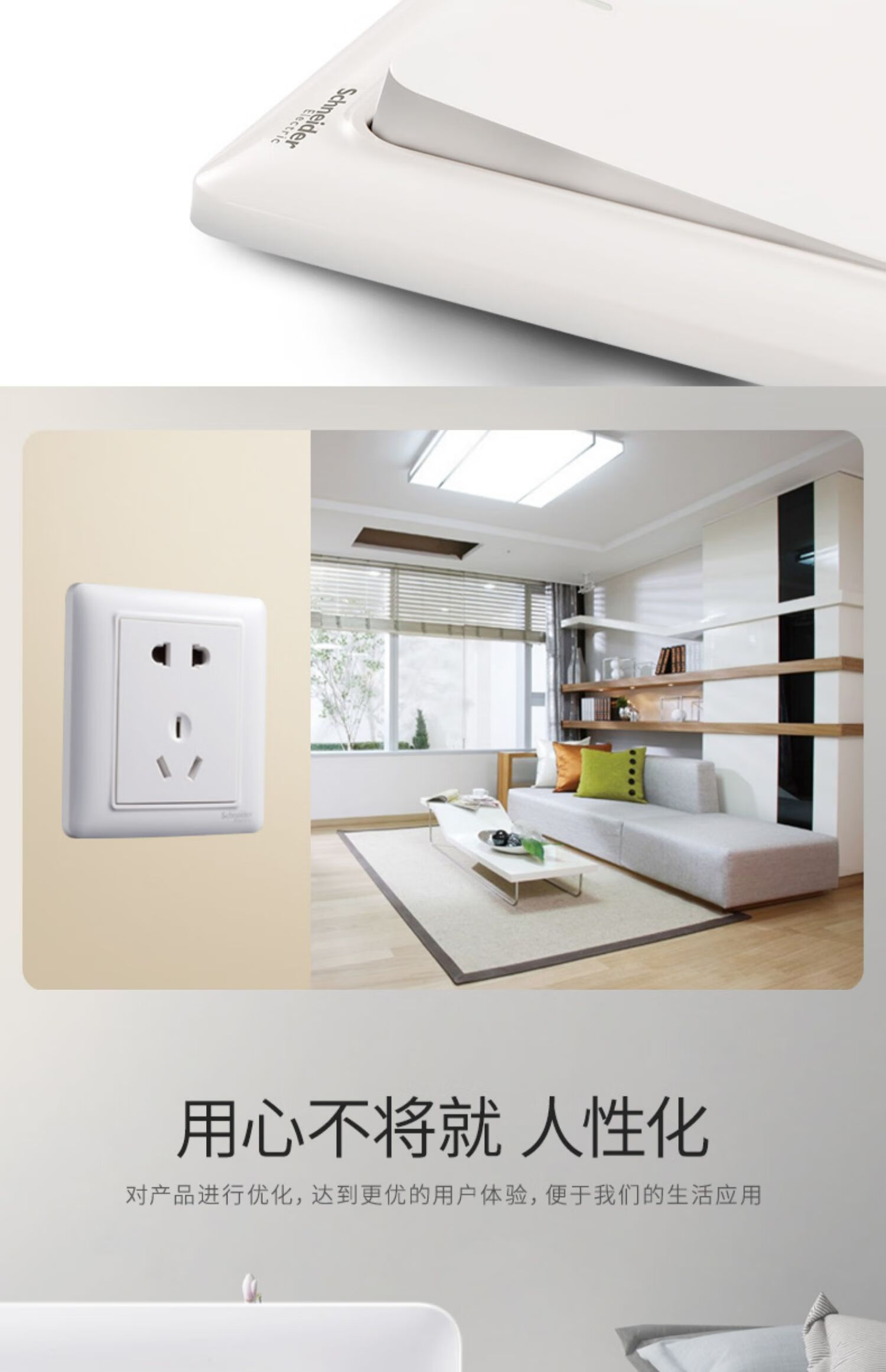 施耐德施耐德开关插座面板家用错位5五孔插座带开关一开斜五孔86型睿意 一开五孔